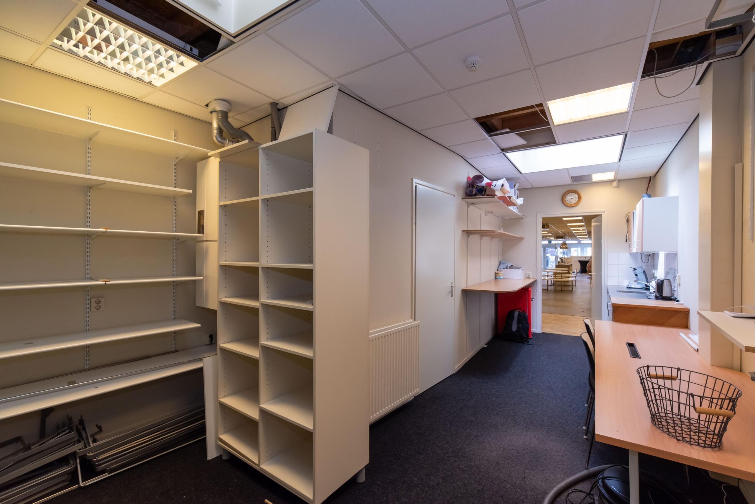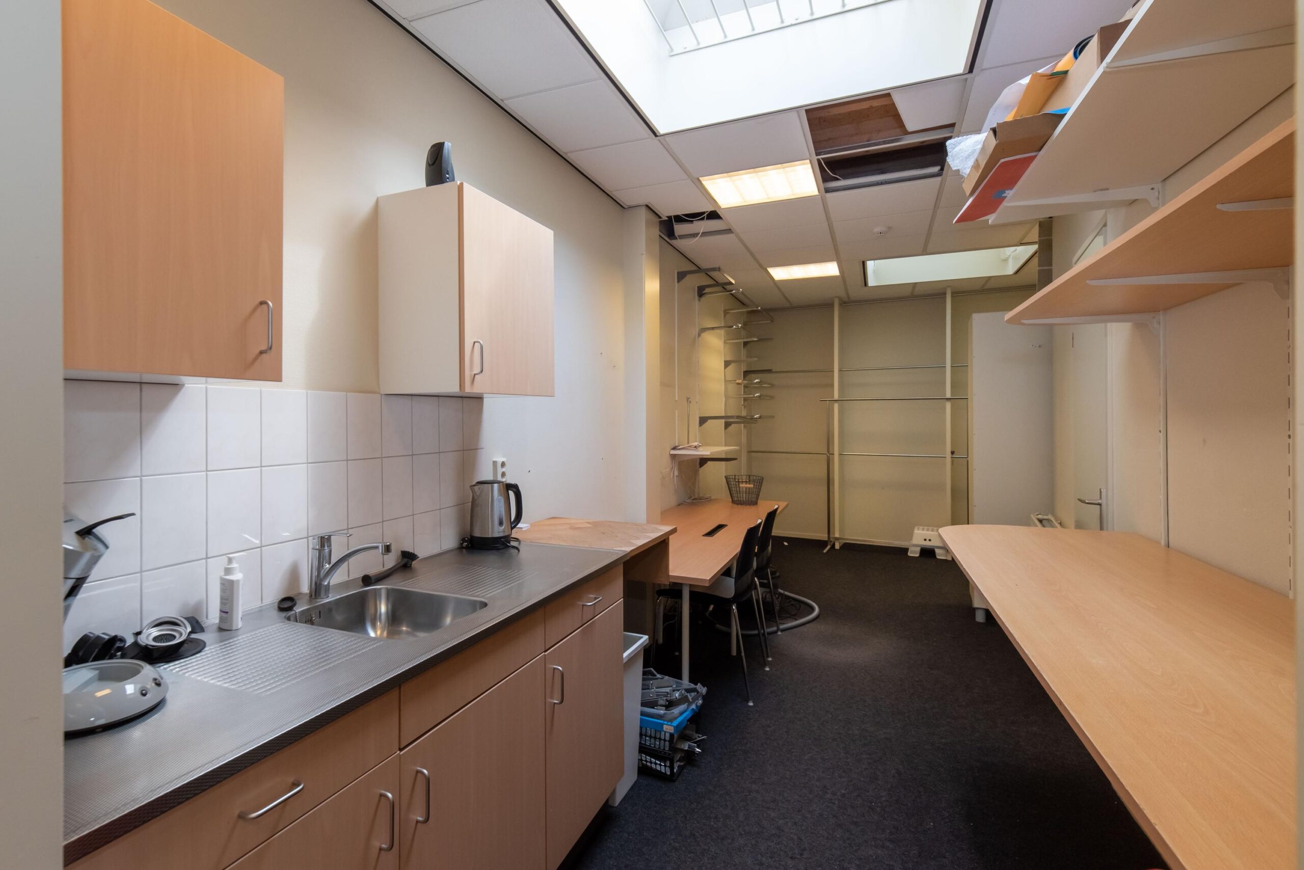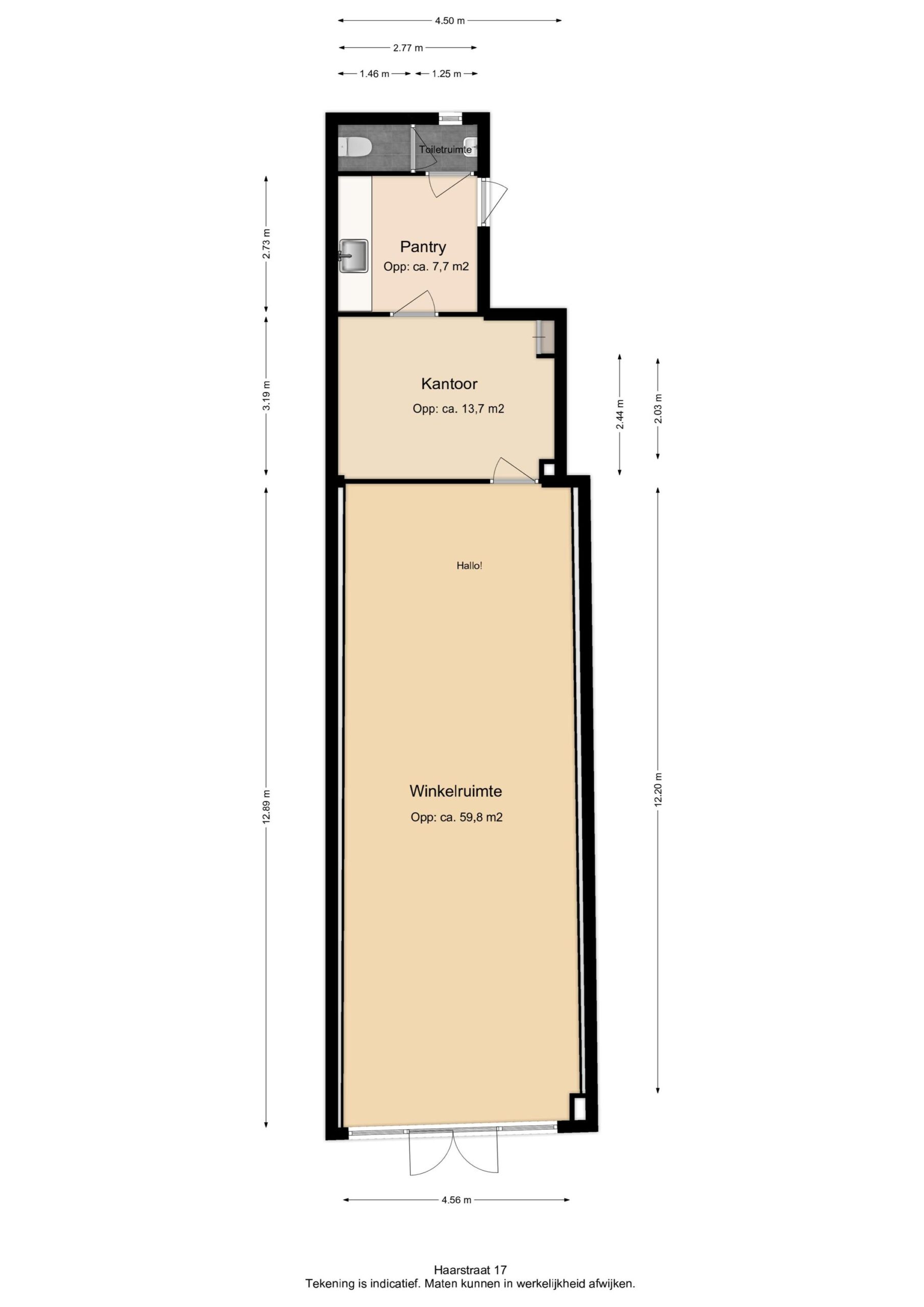 Winkelruimte met circa. 73 m2 winkeloppervlakte, 10 m2 pantry en een magazijn van circa. 34 m2.