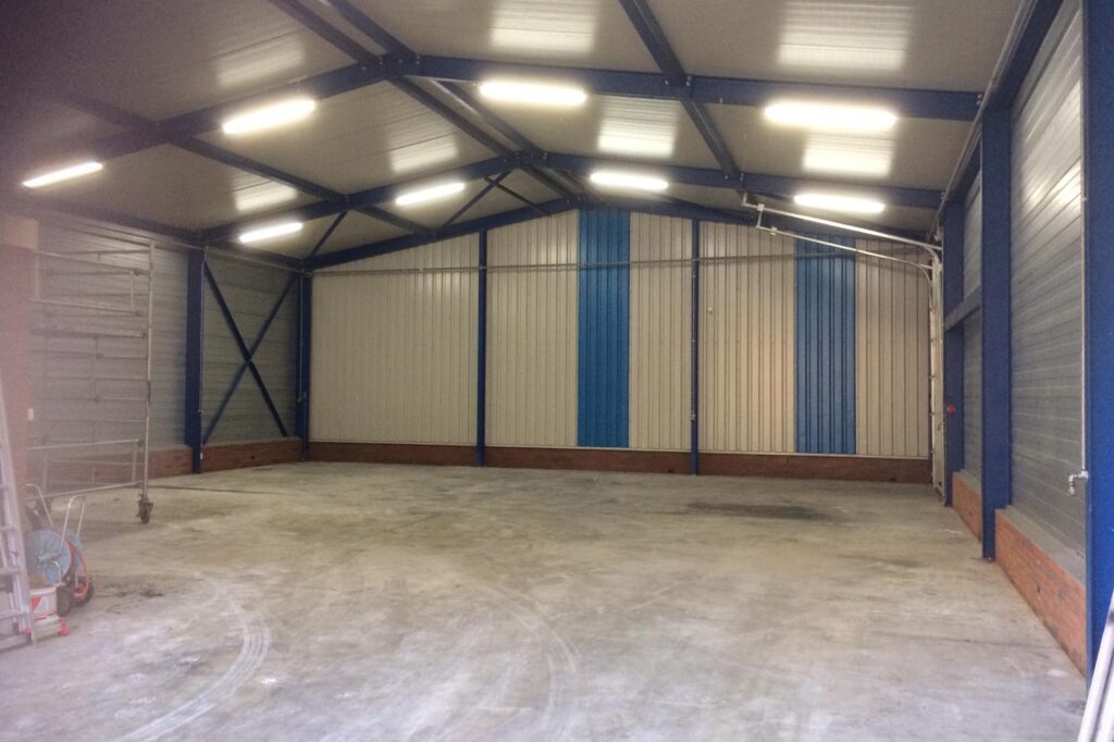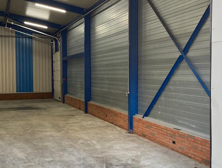 De hal is voorzien van een roldeur en is geschikt voor diverse doeleinden. Aan de zijkant van de hal is nog een loopdeur aanwezig. Het pand wordt omringd door diverse bedrijfspanden.