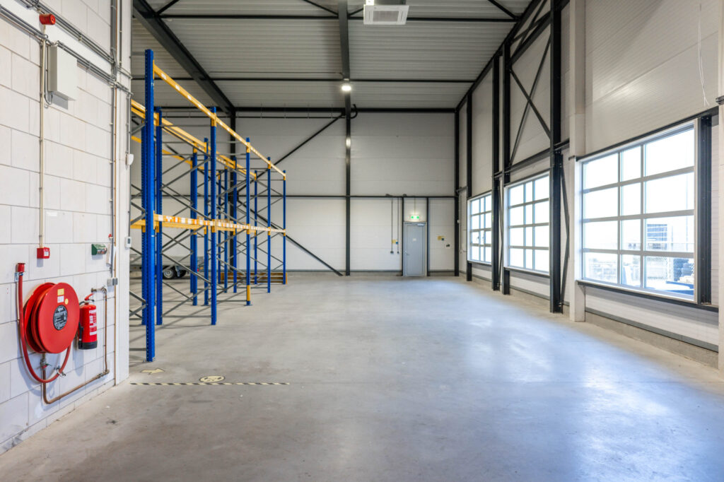 In de huidige staat. De bedrijfsruimte is standaard opgeleverd en voorzien van een eigen meterkast met elektra- en wateraansluiting en een elektrisch bedienbare overheaddeur.