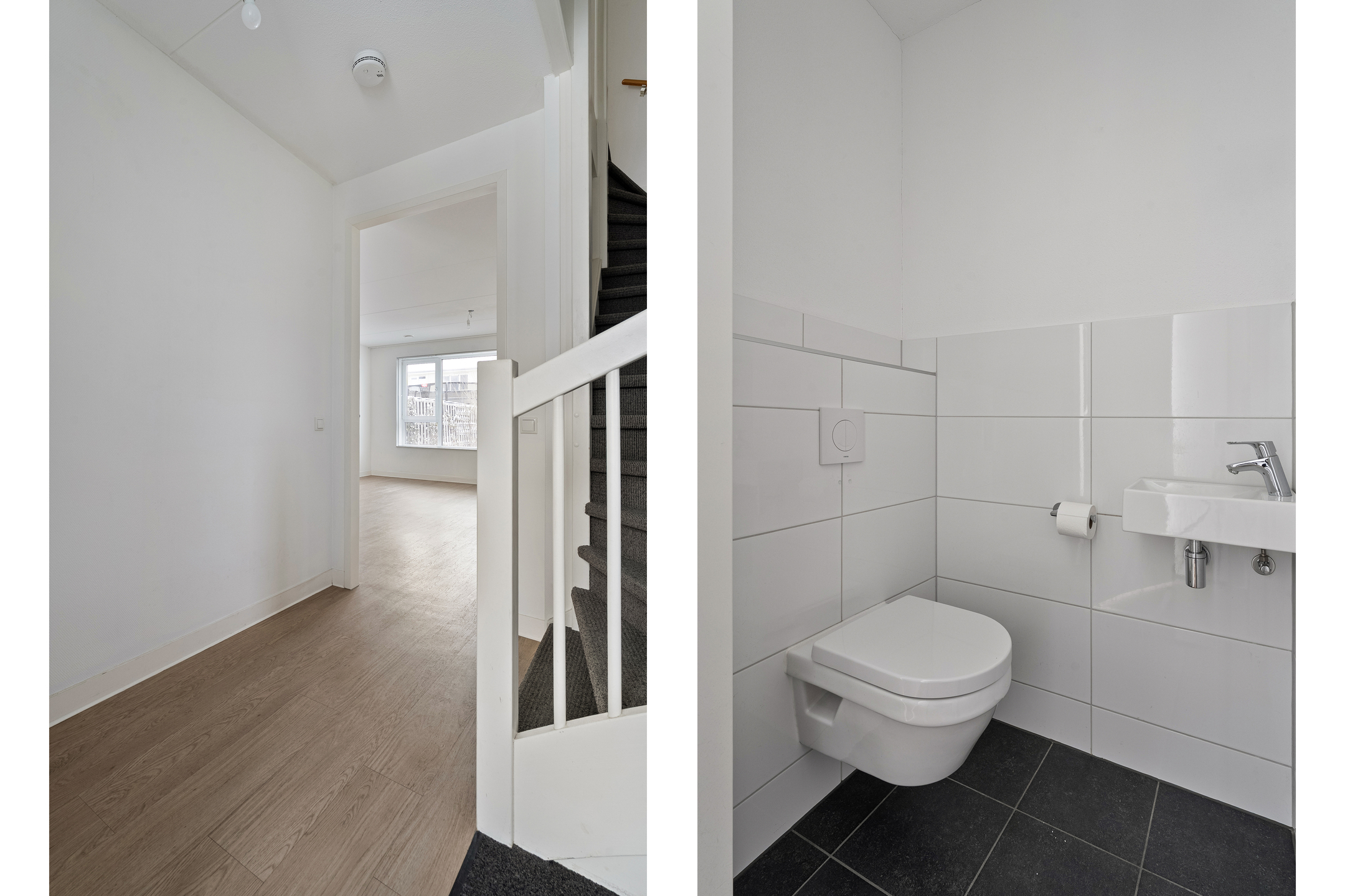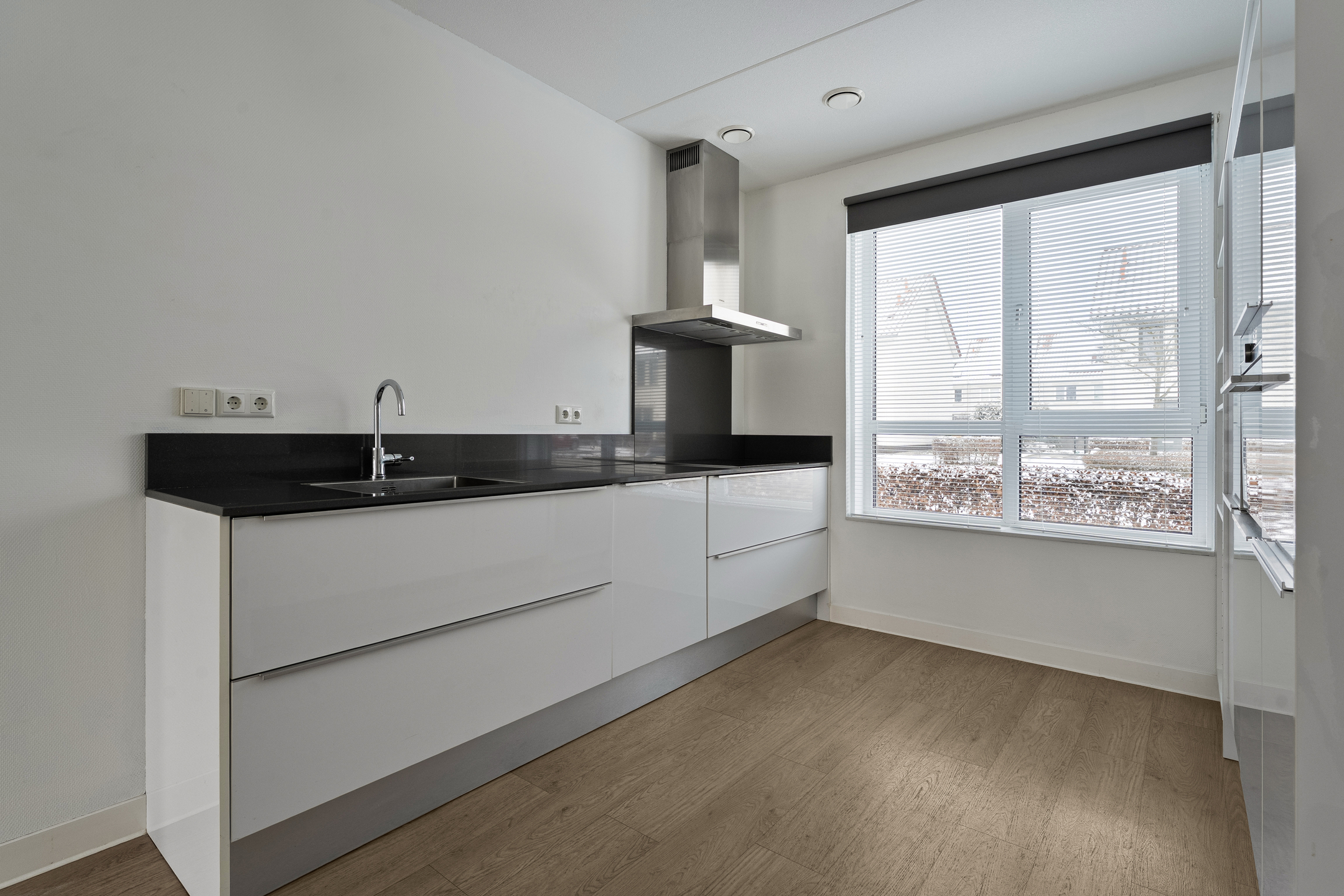 Op je eigen oprit parkeer je de auto. Via de voordeur betreed je de woning en kom je in de hal terecht. Hier vind je het toilet, de trap naar de eerste verdieping en de deur naar de woonkamer. De lichte woonkamer is ruim opgezet en hier vind je een deur naar de trapkast en de zonnige tuin. Vanuit de woonkamer kan je zo de keuken in lopen. Deze is voorzien van een luxe inbouwkeuken met apparatuur zoals een inductiekookplaat, koel/vriescombinatie, vaatwasser en een combimagnetron.