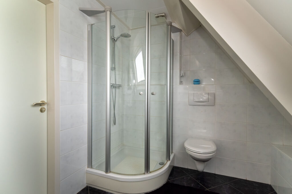Op de eerste verdieping bevinden zich maar liefst vijf slaapkamers – ideaal voor een groot gezin, werken vanuit huis of een extra hobbyruimte. Vanaf de overloop heb je toegang tot de badkamer, die is uitgerust met een toilet, wastafel, douche en een dakraam voor natuurlijke ventilatie en daglicht.
