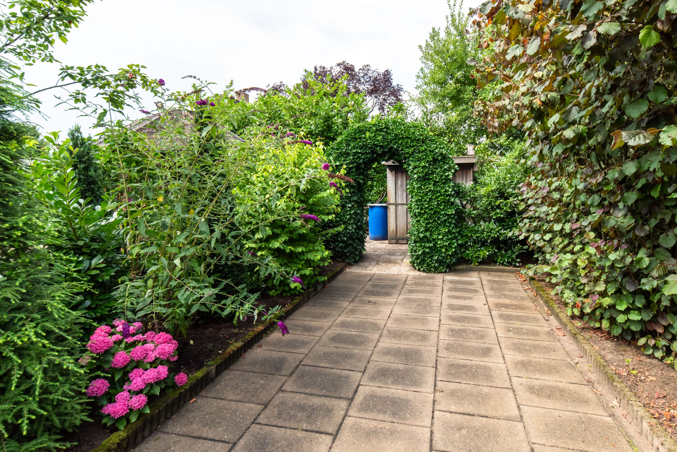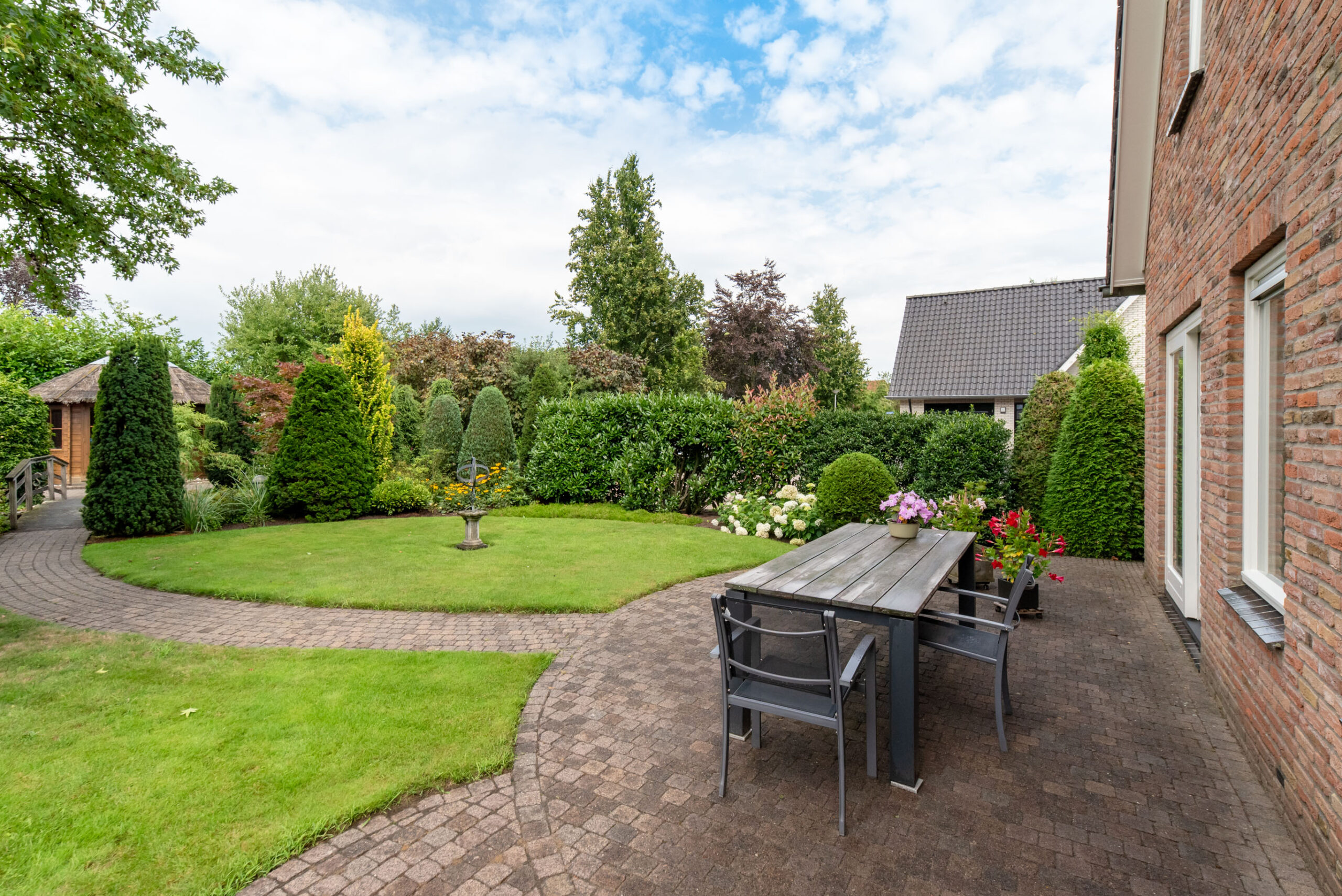 Heb je groene vingers of droom je van een sfeervolle tuin? Dan zit je hier goed! De tuin is verzorgd aangelegd met een betegeld terras, een fraai gazon, gevarieerde beplanting en een visvijver. Via een charmant bruggetje bereik je de houten berging achter in de tuin – een idyllisch plekje om even tot rust te komen.