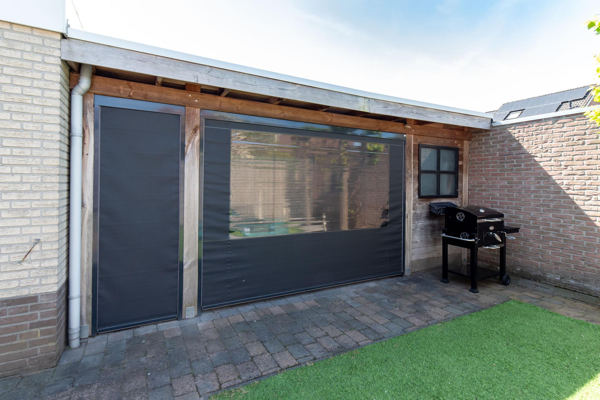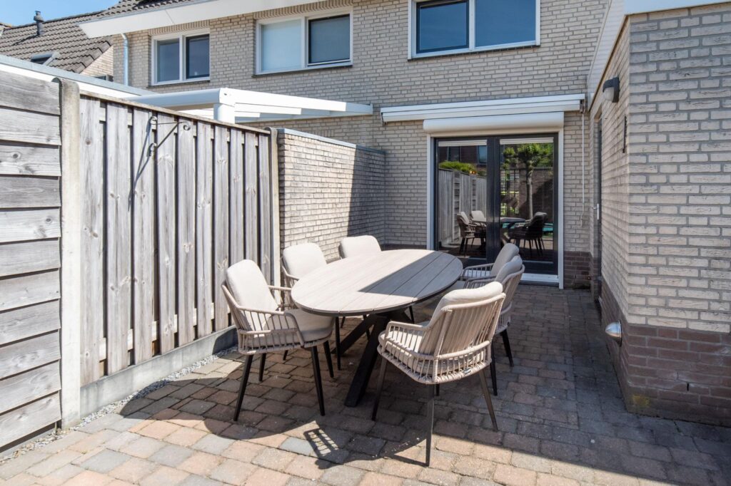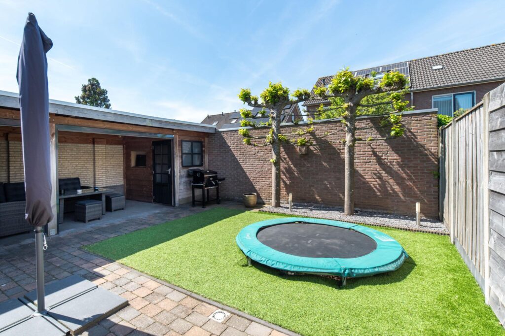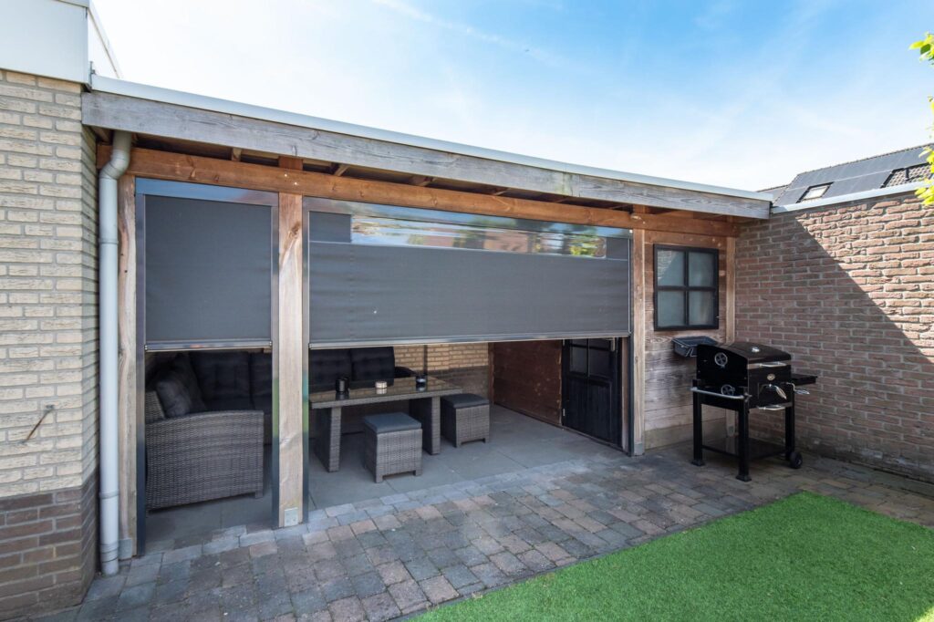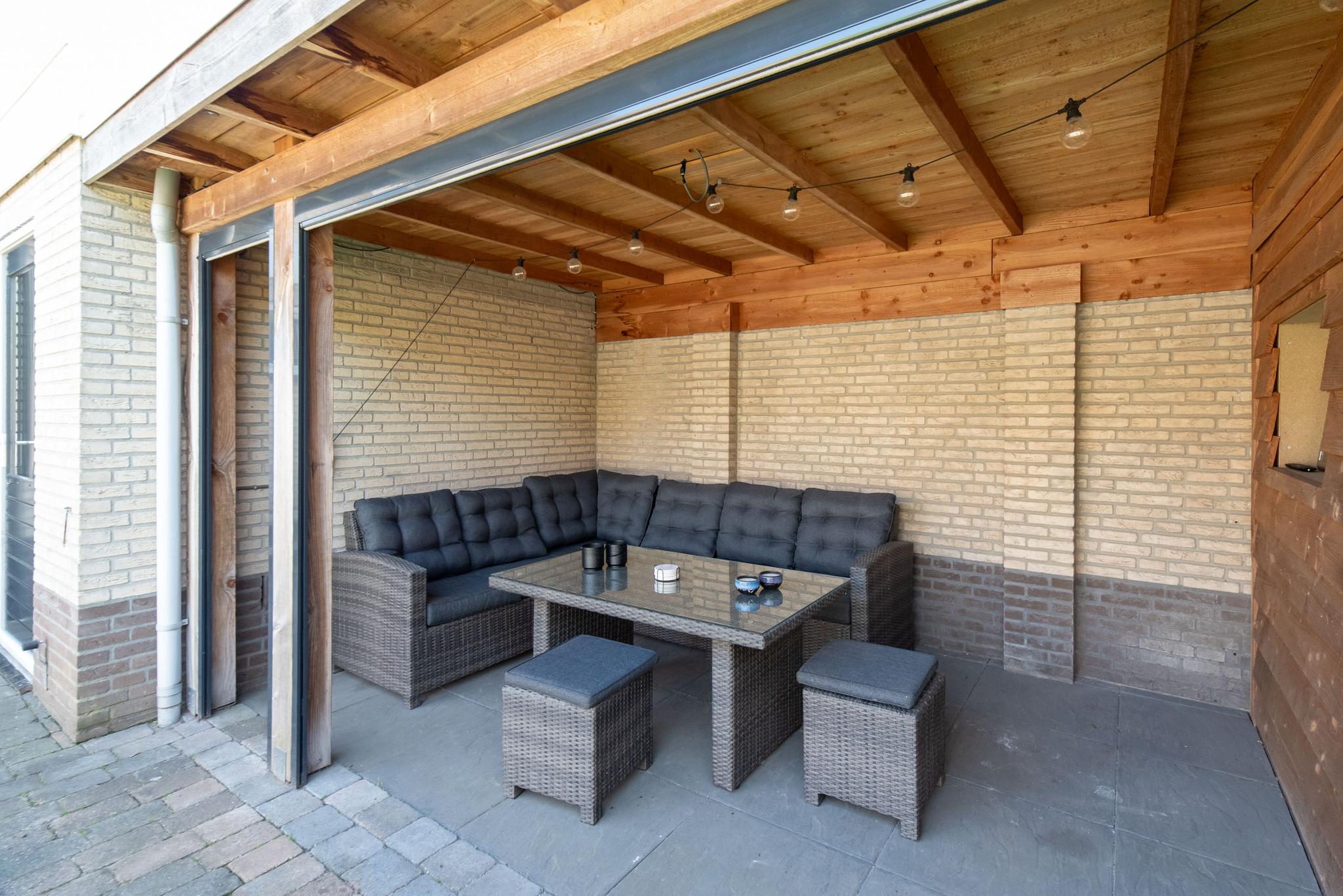 De hoofdtuin is gelegen op het westen en is door de fraaie overkapping een verlengstuk van de woning.