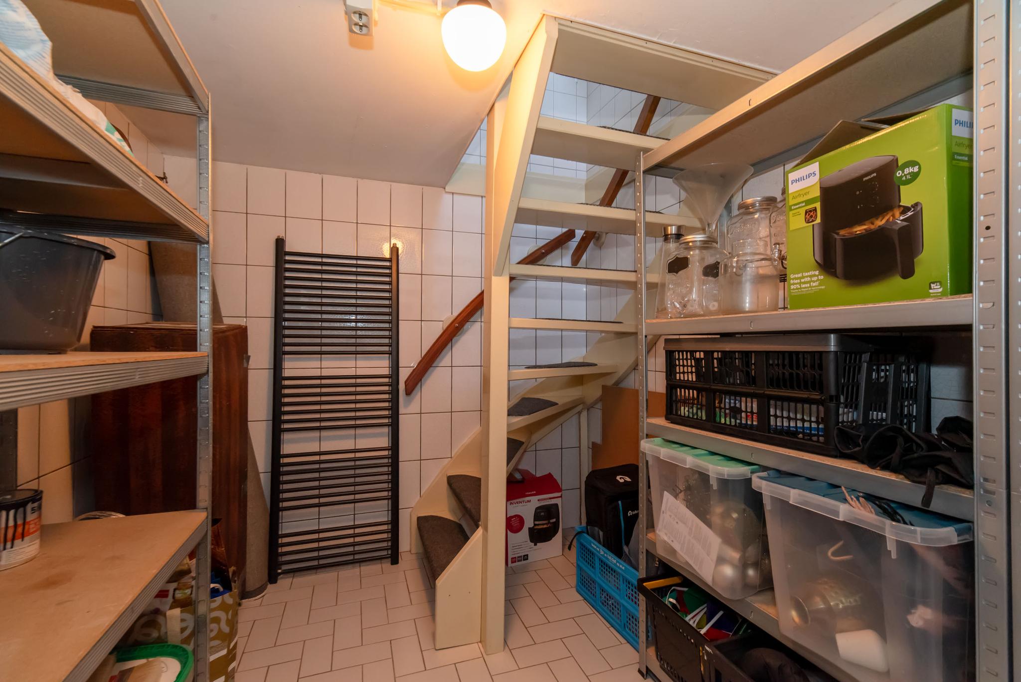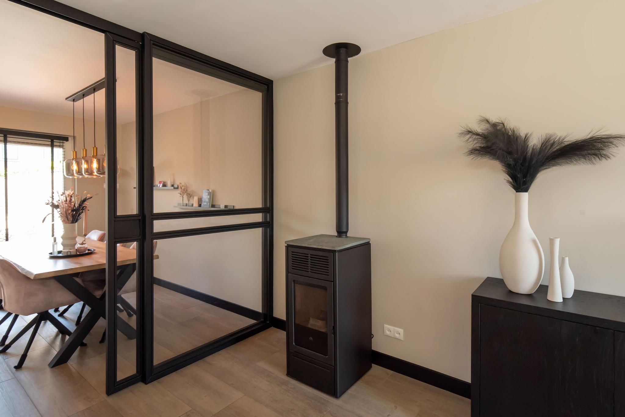 Bij binnenkomst in de hal vind je de meterkast, het toilet, de trap naar de eerste verdieping en de deur naar de woonkamer. De woonkamer is ruim en beschikt over een gezellige palletkachel die tijdens de koude dagen zorgt voor sfeer en warmte. Via prachtige schuifdeuren komen we in de woonkeuken. Deze is voorzien van een half vrijstaand keukeneiland en biedt uitzicht op de eethoek, waar openslaande deuren toegang geven tot de fraai aangelegde tuin. Vanuit de keuken loop je zo de bijkeuken in, met toegang tot de berging/hobbyruimte, de tuin en de kelder met een verrassend ruime plek, ideaal voor het opbergen van je voorraad!