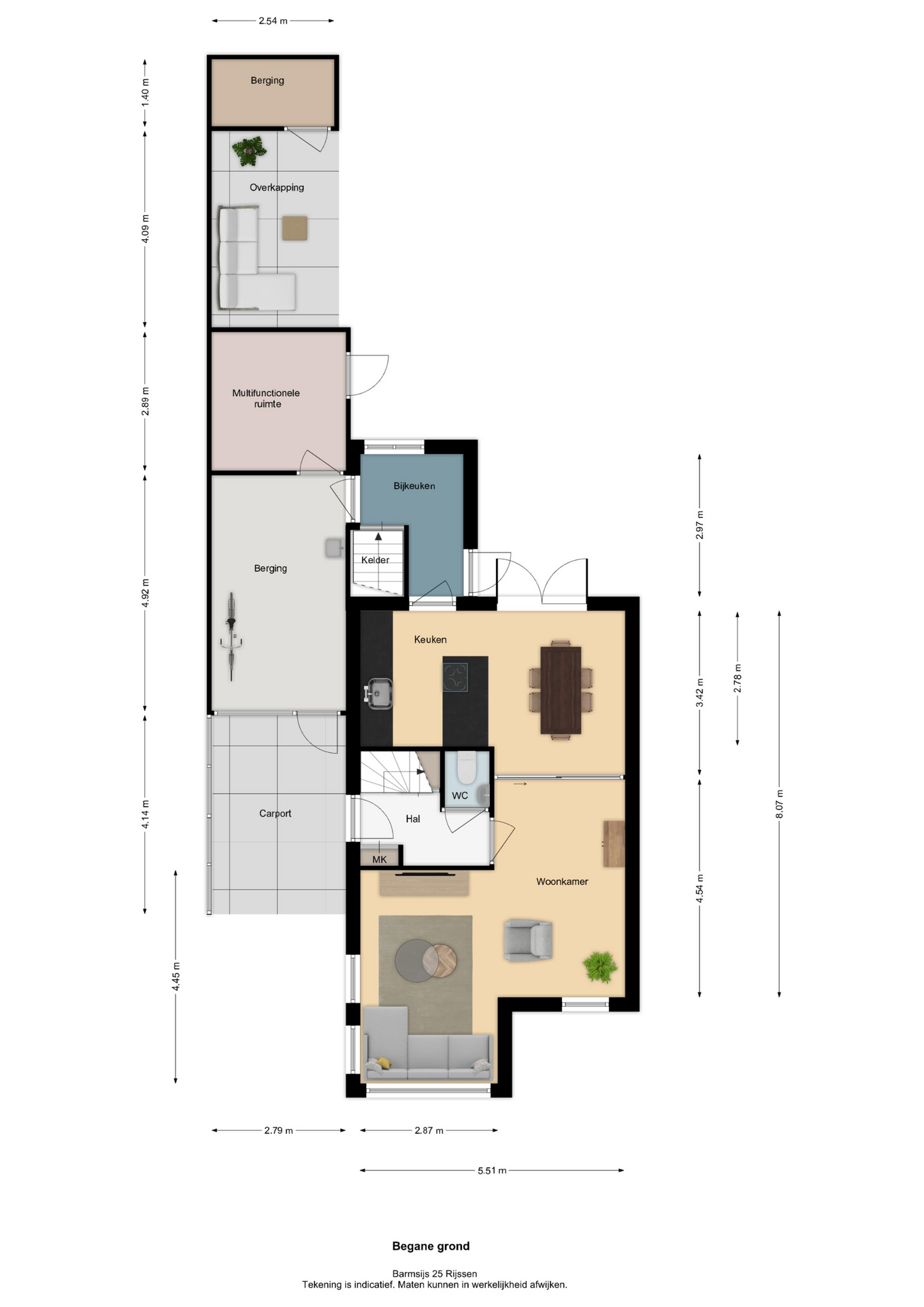 Vermelde maatvoeringen en gepubliceerde plattegronden zijn opgesteld binnen de kaders van de Branche Brede Meetinstructie; gebaseerd op NEN2580, met een onderverdeling in verschillende gebruiksoppervlakten. Omdat de publicatie ingevoerde gegevens via diverse, externe kanalen geschiedt, kan Daan Makelaars BV geen aansprakelijkheid aanvaarden voor onjuiste weergave van informatie.