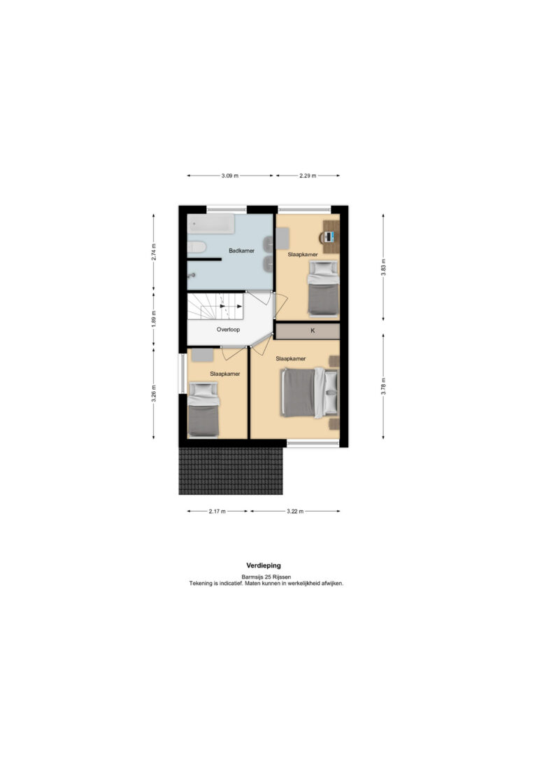 Op de eerste verdieping vinden we drie slaapkamers, een badkamer, overloop en vaste trap naar de tweede verdieping. De badkamer is in 2022 vernieuwd door de huidige eigenaren en is van alle gemakken voorzien.