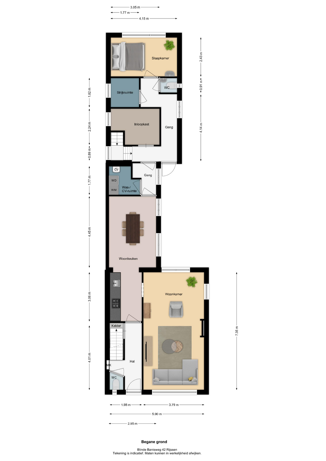 Vermelde maatvoeringen en gepubliceerde plattegronden zijn opgesteld binnen de kaders van de Branche Brede Meetinstructie; gebaseerd op NEN2580, met een onderverdeling in verschillende gebruiksoppervlakten. Omdat de publicatie ingevoerde gegevens via diverse, externe kanalen geschiedt, kan Daan Makelaars BV geen aansprakelijkheid aanvaarden voor onjuiste weergave van informatie.