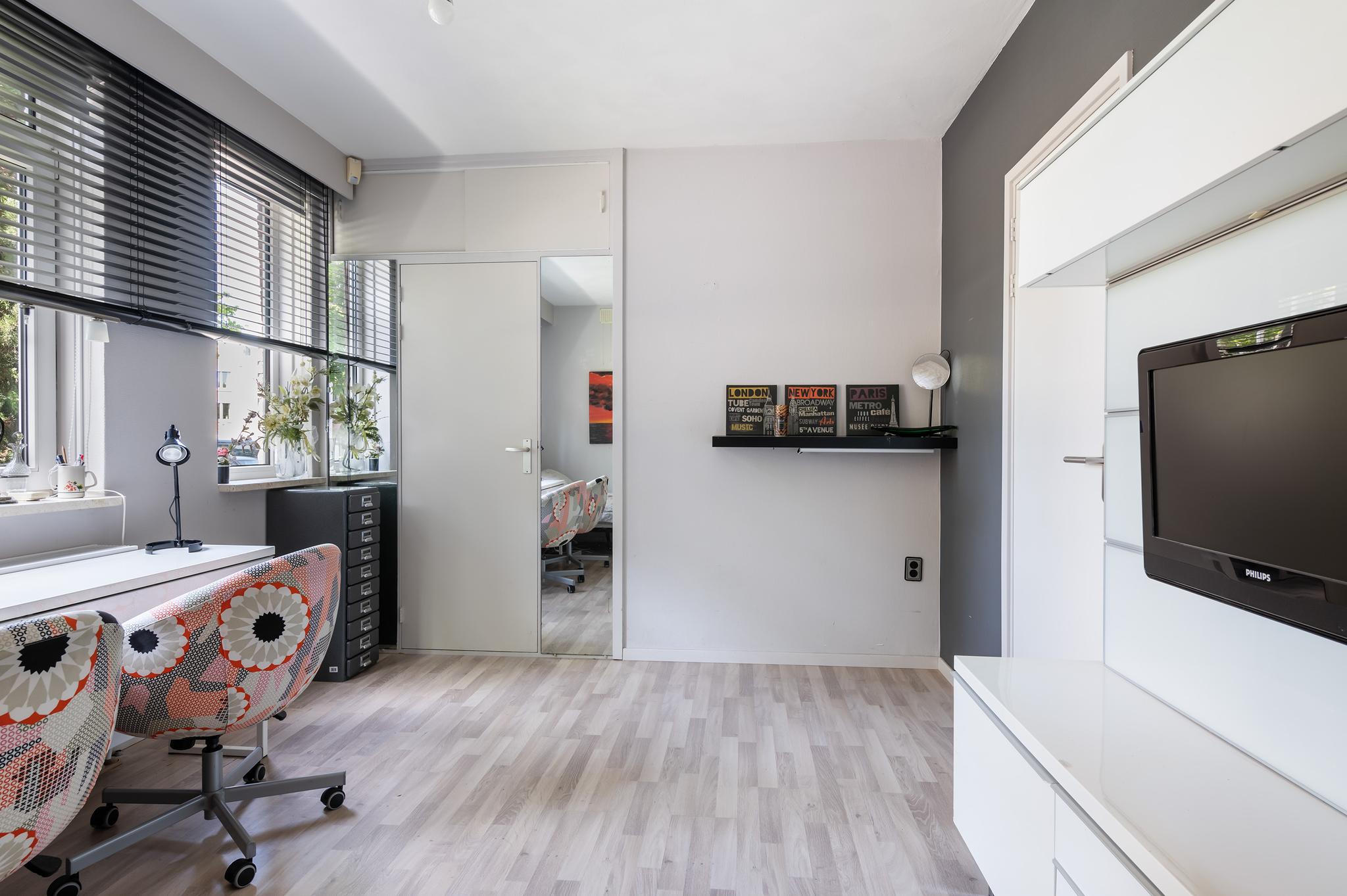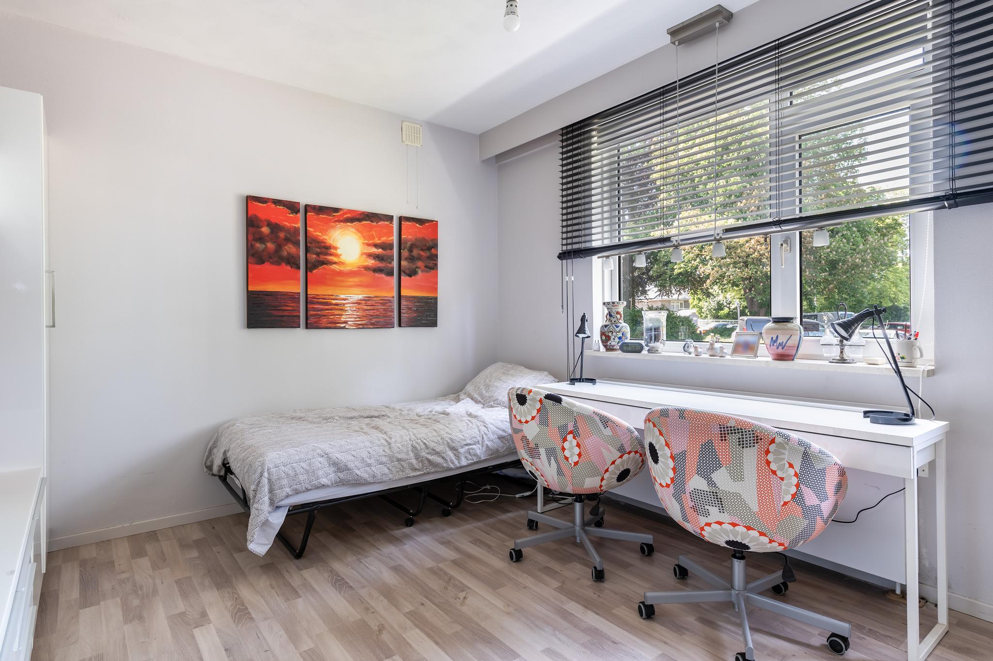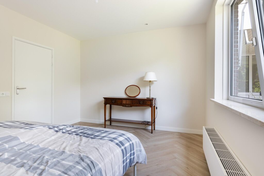 beschikt over drie slaapkamer, waarvan één voorzien is van een vaste kastenwanden. De badkamer is in 2013 vernieuwd en beschikt over vloerverwarming, een toilet, wastafel, en ruime inloopdouche.