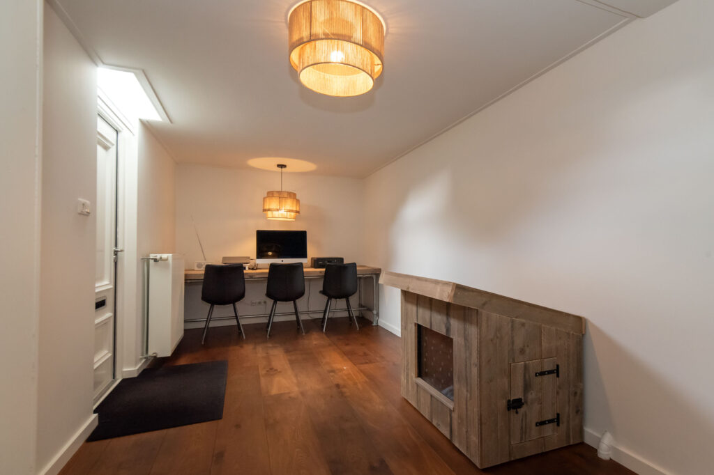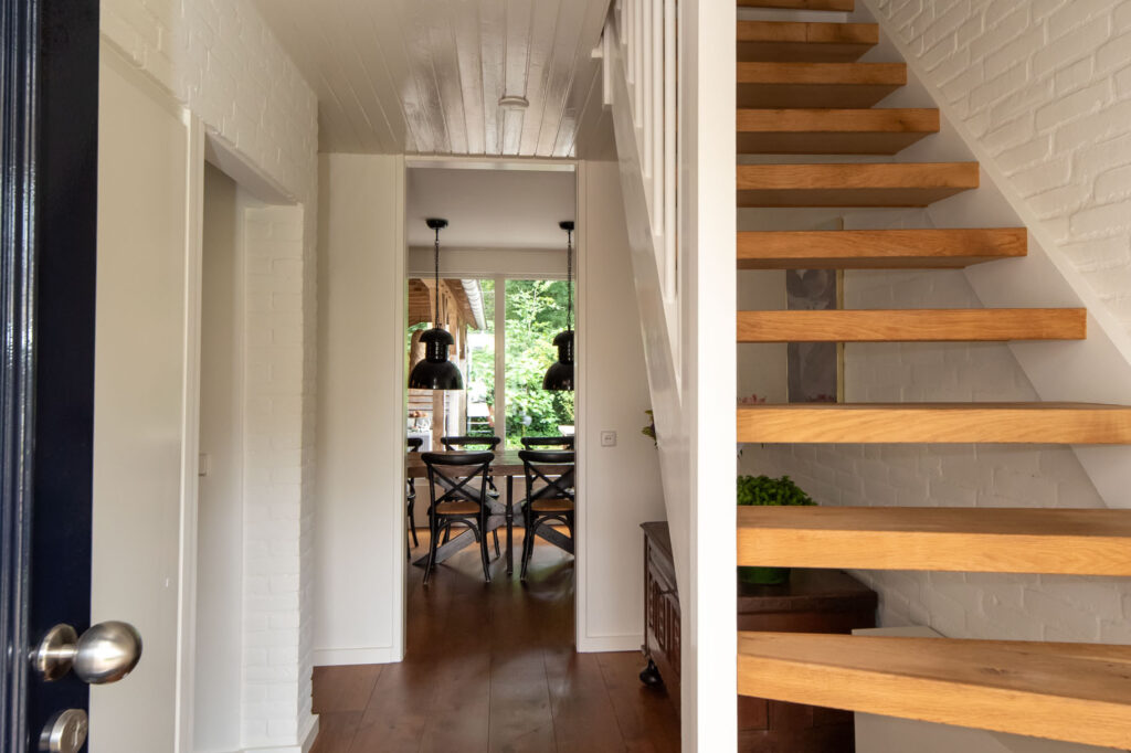 Je komt binnen via de ruime hal met modern toilet en toegang tot een multifunctionele ruimte: ideaal als kantoor aan huis, extra slaapkamer of wasruimte. De royale woonkeuken, het kloppend hart van het huis, is in 2023 vernieuwd met luxe apparatuur (Quooker, combi-oven, inductie, koel/vriescombi, allemaal A-merken). De gehele benedenverdieping is voorzien van vloerverwarming in combinatie met een eikenhouten parketvloer. Dankzij de HR++ beglazing geniet je het hele jaar door van rust, comfort en optimale isolatie. Een airco is niet nodig aangezien het achterliggende bos de benedenverdieping in de zomermaanden aangenaam koel houdt.