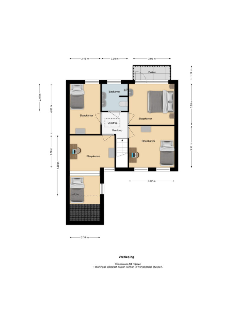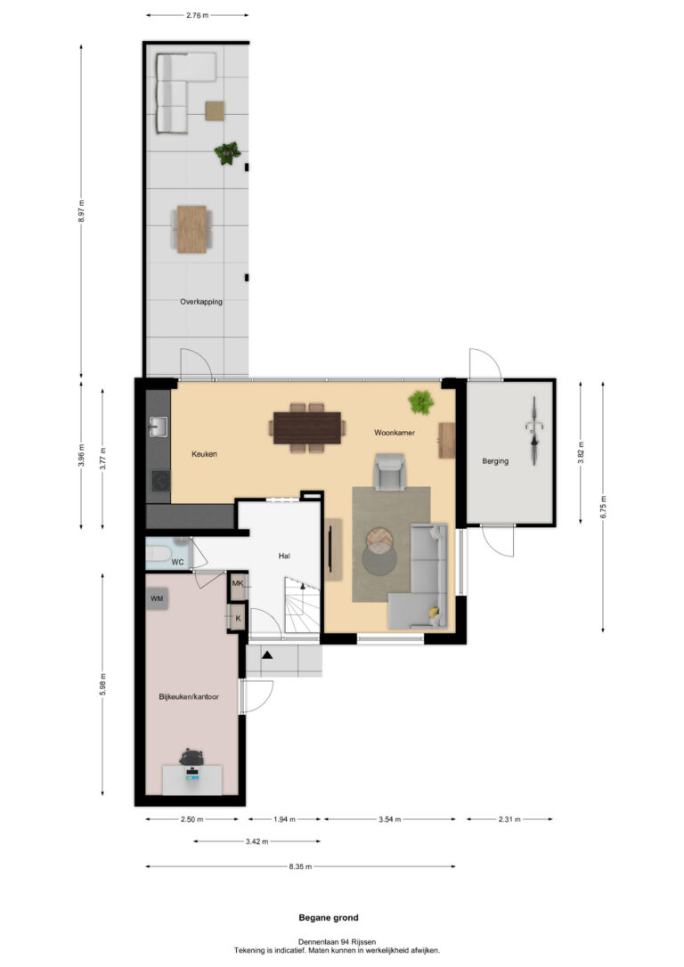 Let op: De vermelde afmetingen en gepubliceerde plattegronden zijn opgesteld volgens de Branche Brede Meetinstructie, gebaseerd op NEN2580, met onderverdeling in verschillende gebruiksoppervlakten. Omdat de publicatie van informatie via diverse externe kanalen verloopt, kan Daan Makelaars BV geen aansprakelijkheid aanvaarden voor onjuiste weergave van informatie.