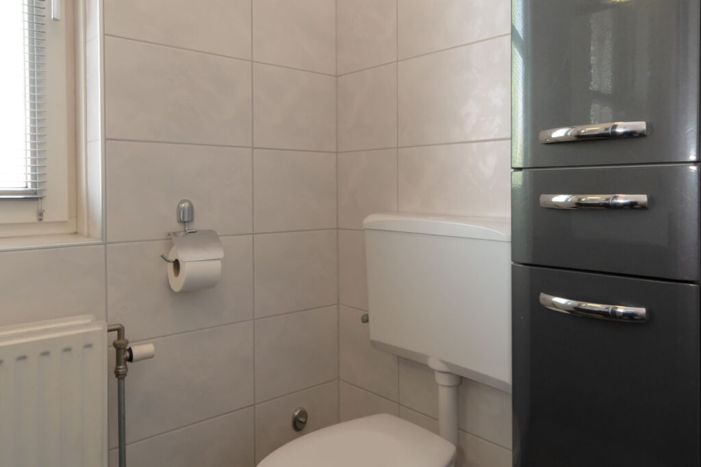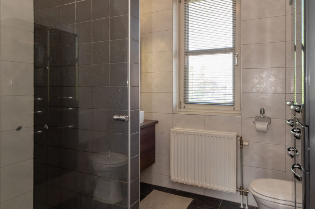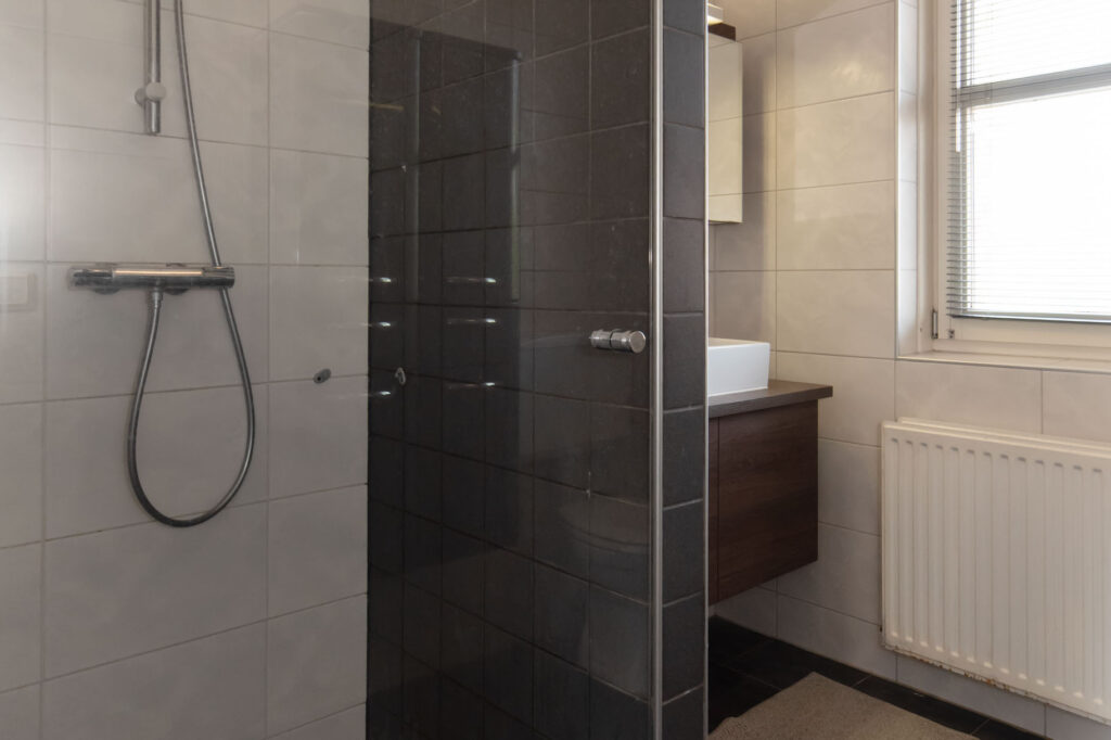 Op de eerste verdieping vind je drie slaapkamers, waarvan één met een vaste kastenwand. Op de overloop is de vaste trap naar de tweede verdieping en de deur naar de badkamer te vinden. De badkamer is voorzien van een inloopdouche, toilet en een wastafel.