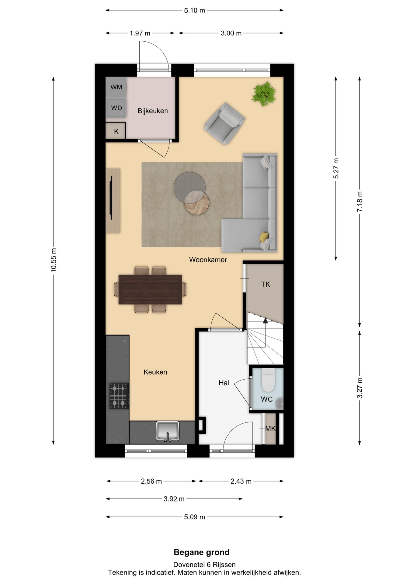 Vermelde maatvoeringen en gepubliceerde plattegronden zijn opgesteld binnen de kaders van de Branche Brede Meetinstructie; gebaseerd op NEN2580, met een onderverdeling in verschillende gebruiksoppervlakten. Omdat de publicatie ingevoerde gegevens via diverse, externe kanalen geschiedt, kan Daan Makelaars BV geen aansprakelijkheid aanvaarden voor onjuiste weergave van informatie.