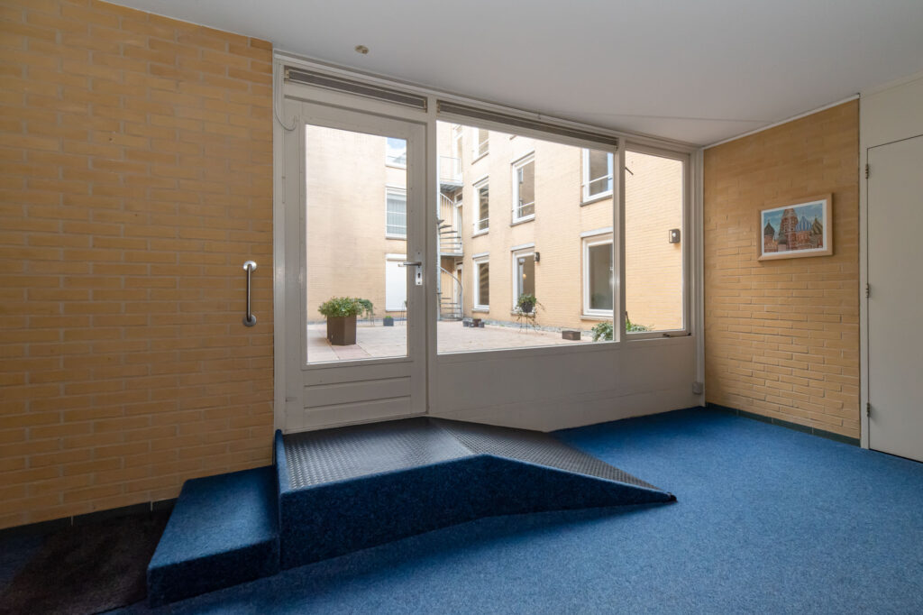 Via het Europaplein betreed je het complex en neem je de trap of lift naar de eerste verdieping. Het appartement ligt aan de Bouwstraat-zijde. De ruime hal geeft toegang tot de tweede slaapkamer (ook ideaal als werk- of hobbyruimte), het toilet, de badkamer, de slaapkamer en de woonkamer. De lichte woonkamer heeft een gezellige serre aan de voorzijde en staat in open verbinding met de moderne keuken (geplaatst in 2018). Daarnaast is er een praktische berging met witgoedaansluitingen en de cv-installatie.