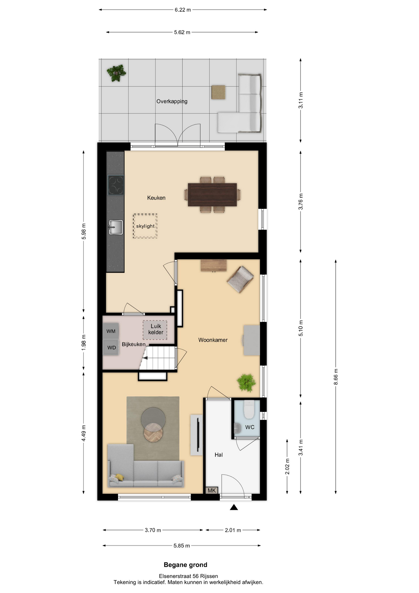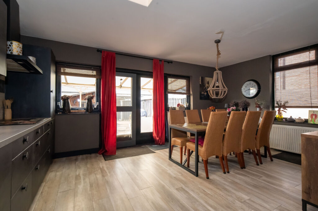 Via de voordeur kom je in de hal van de woning terecht, hier vind je het toilet en de deur naar de woonkamer. De woonkamer is ruim opgezet en beidt ruimte voor een aparte zit en – eethoek. Via de woonkamer kan je met een deur zowel de vaste trap naar de eerste verdieping als de woonkeuken bereiken. In de woonkeuken geniet je volop van de ruimte en het uitzicht over jouw eigen tuin! In 2023 is de nieuwe inbouwkeuken met apparatuur zoals een inductiekookplaat, combi-oven, vaatwasser, koelkast en voldoende kastruimte. In de woonkeuken is een deur te vinden naar de bijkeuken, hier vind je de wasmachine aansluiting en het luik naar de kelder.