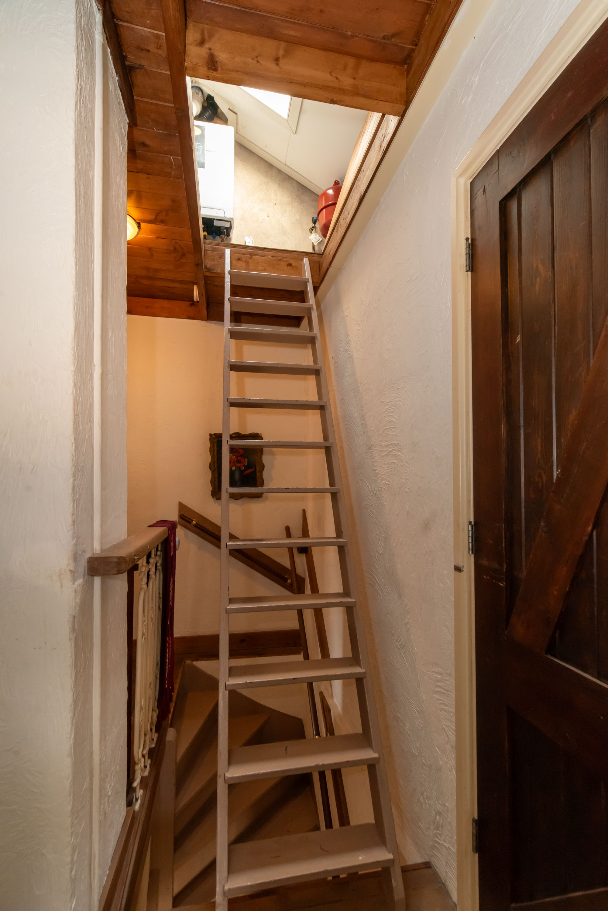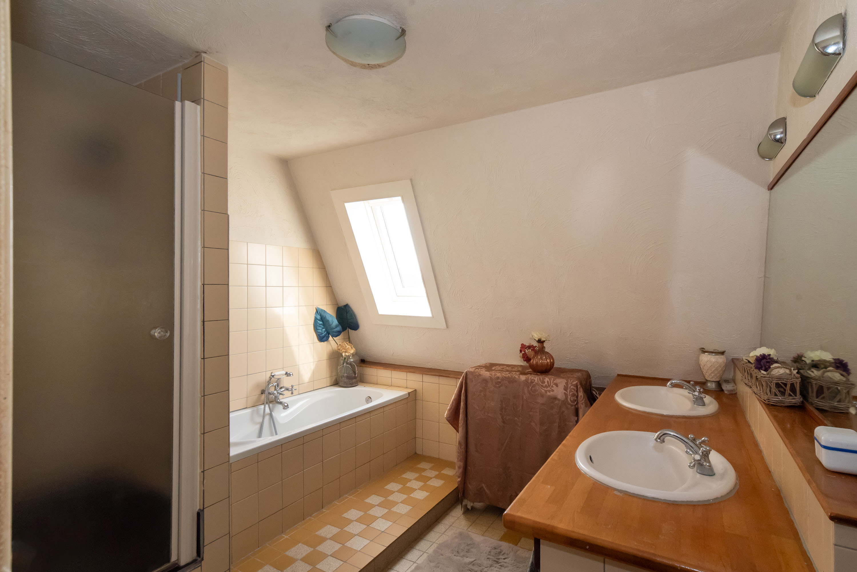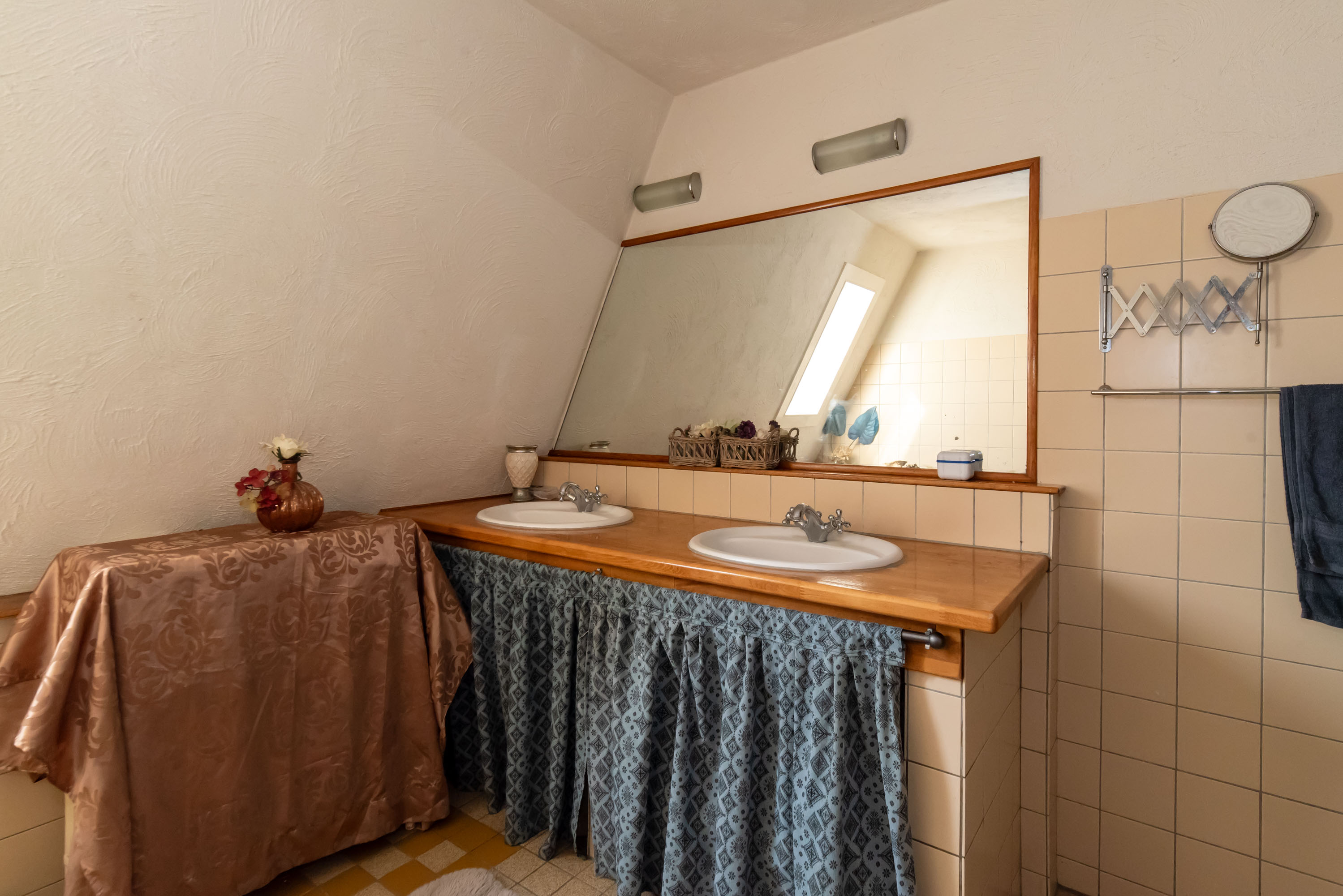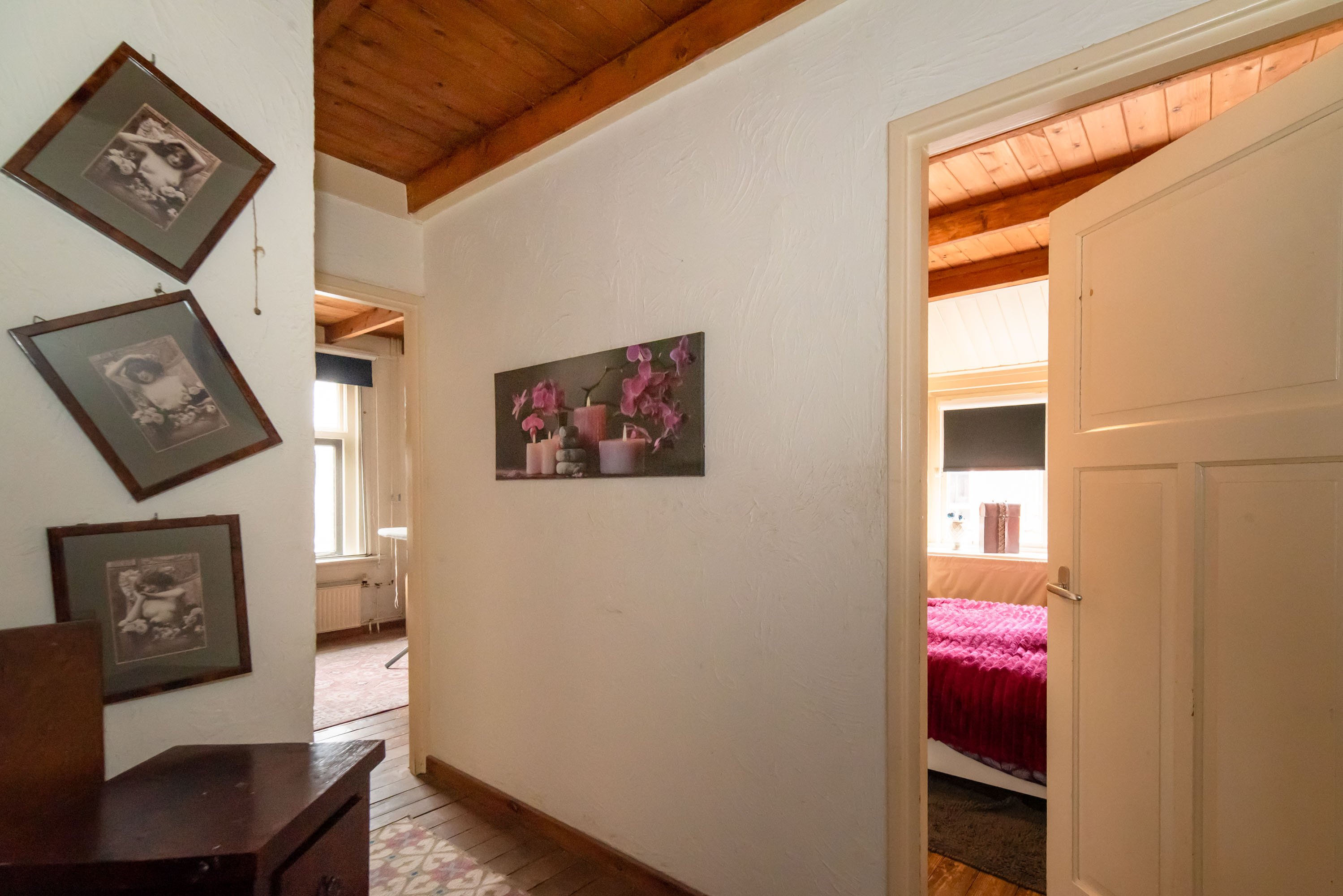 Op de eerste verdieping vind je drie slaapkamers en de badkamer. De badkamer is voorzien van een dubbele wastafel, ligbad en een douche. Op de overloop vind je een vaste trap naar de tweede verdieping. Op deze verdieping vind je de CV ketel en kan je gebruiken als bergruimte.