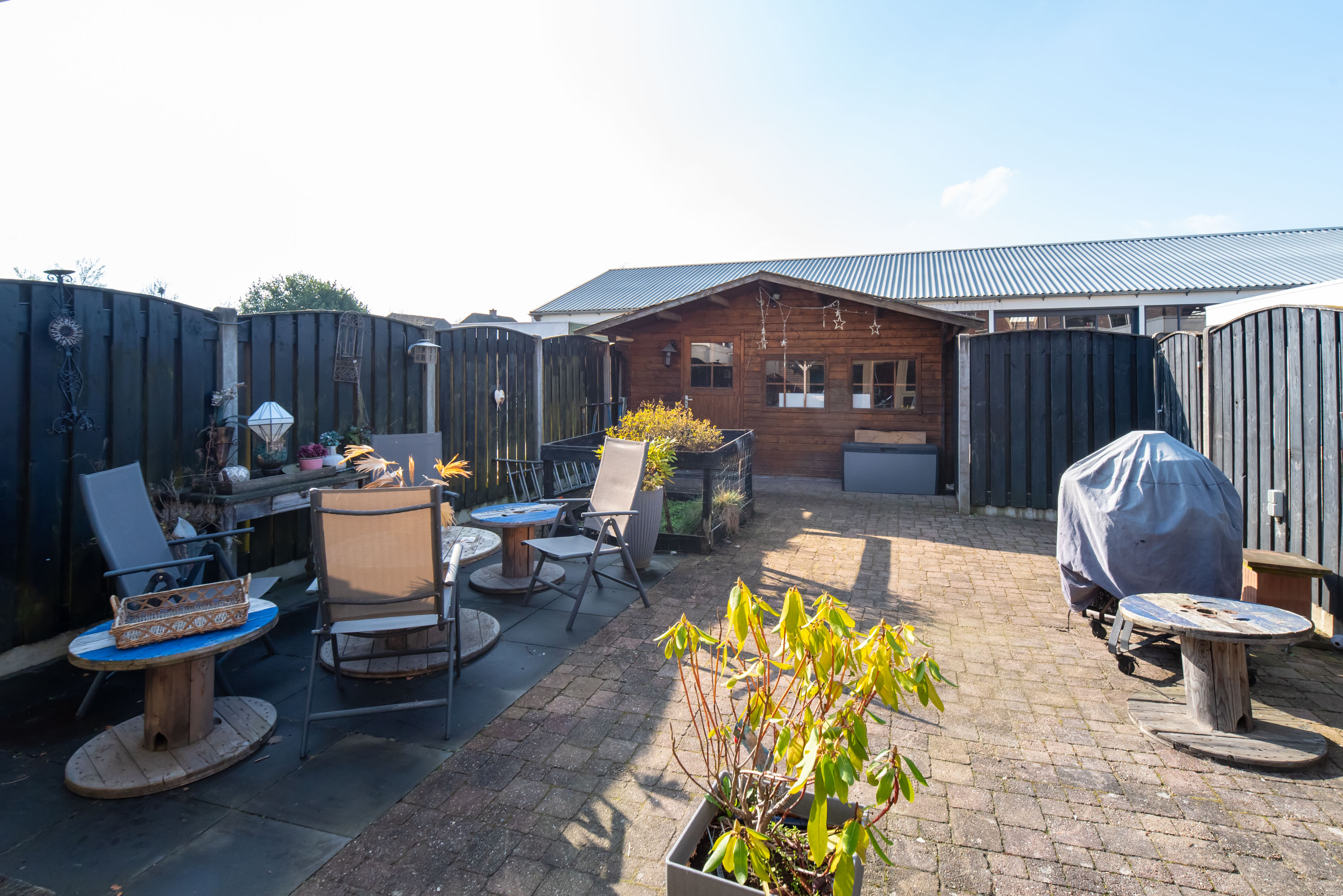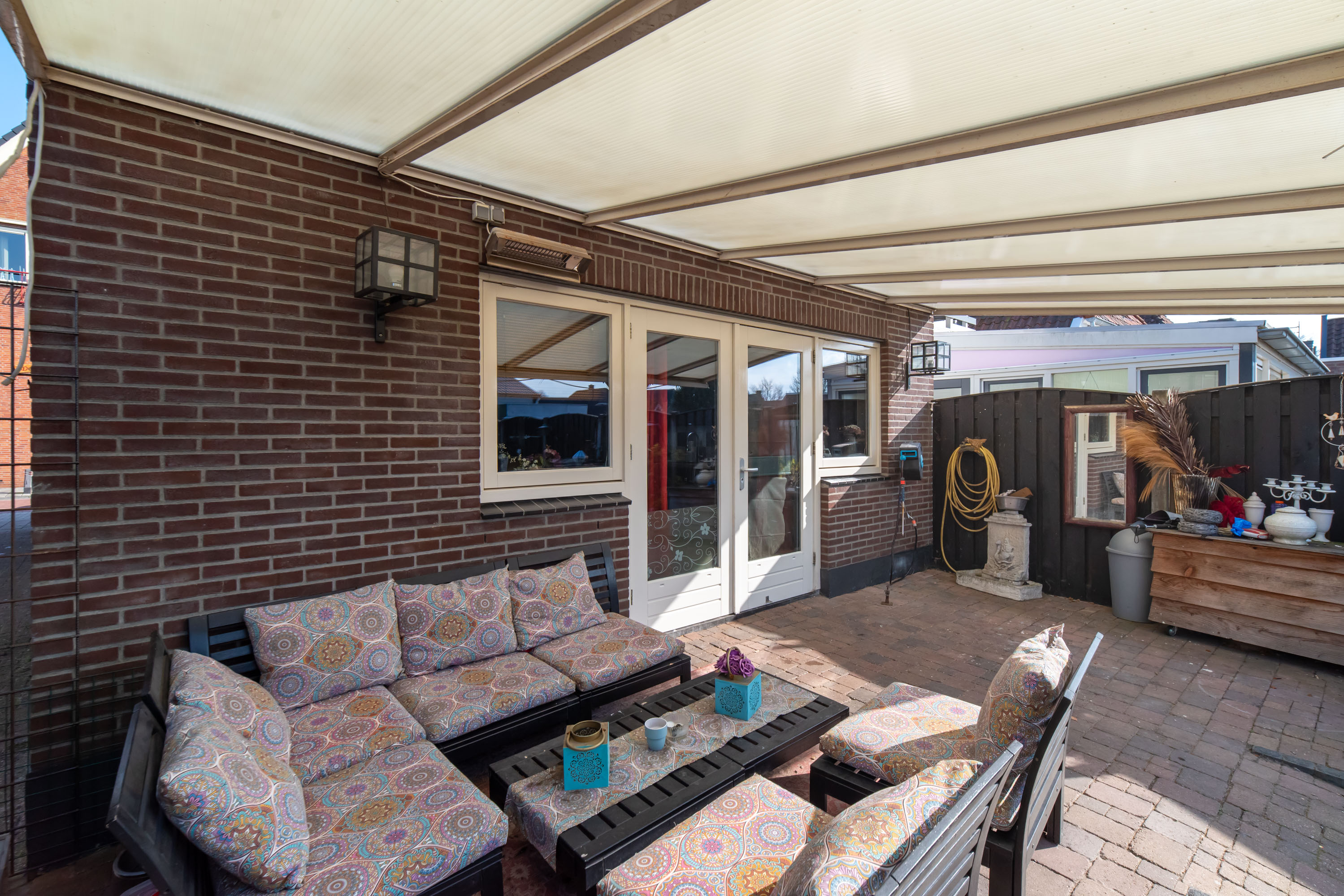 Met de openslaande deuren bereik je de tuin. Deze is gelegen op het westen, onderhoudsvrij ingericht en is gedeeltelijk voorzien van een overkapping waar jij zelfs met minder weer van jouw tuin kan genieten!