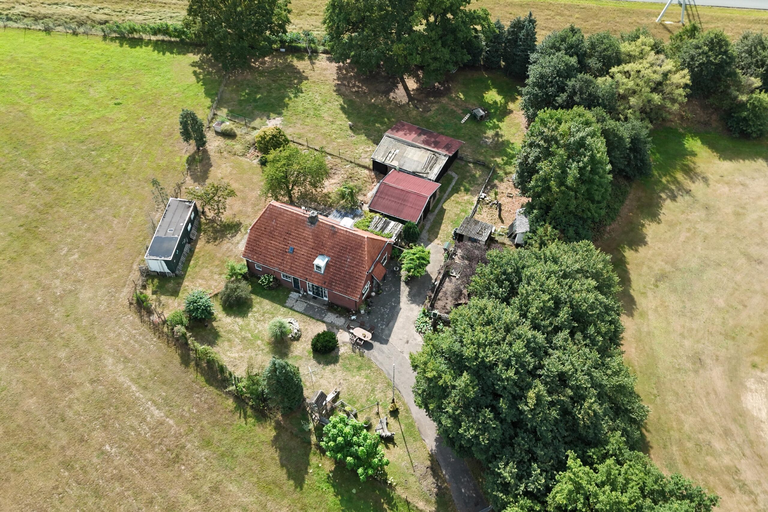 Het perceel van bijna een hectare is absoluut de eyecatcher van deze woning. Met weilanden rondom, drie grote bijgebouwen en meer dan genoeg ruimte voor paardenstallen, dieren of hobby’s, is dit een droomplek voor liefhebbers van het buitenleven. De lange oprijlaan en het royale erf geven direct een gevoel van vrijheid en privacy.