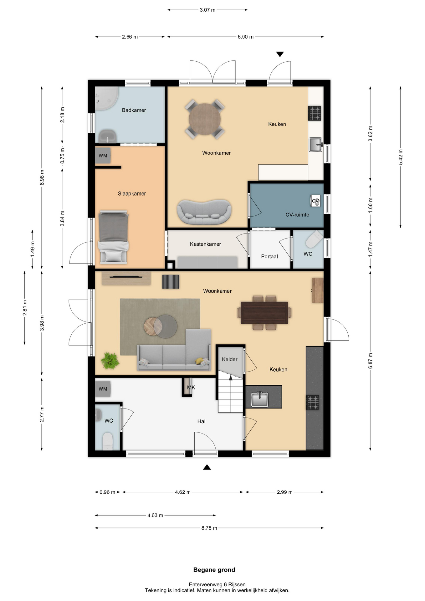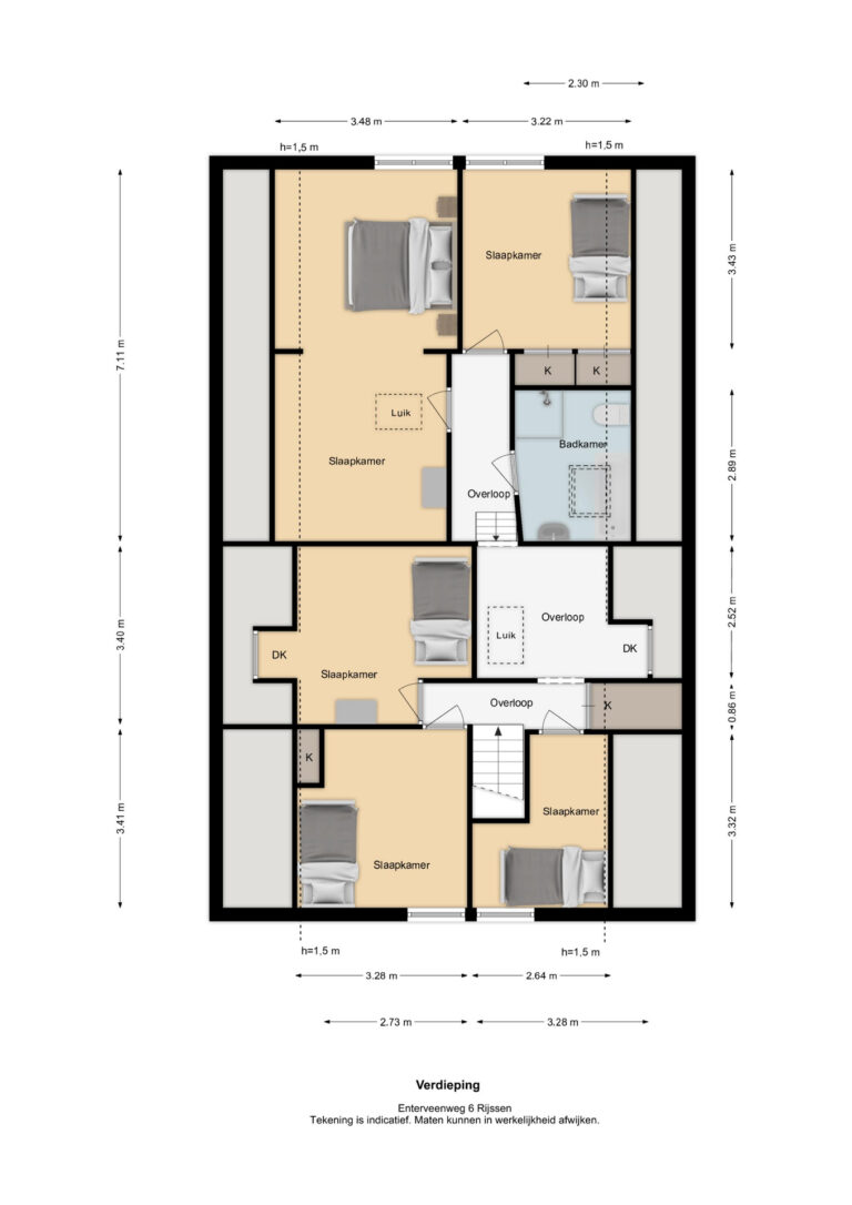Vermelde maatvoeringen en gepubliceerde plattegronden zijn opgesteld binnen de kaders van de Branche Brede Meetinstructie; gebaseerd op NEN2580, met een onderverdeling in verschillende gebruiksoppervlakten. Omdat de publicatie ingevoerde gegevens via diverse, externe kanalen geschiedt, kan Daan Makelaars BV geen aansprakelijkheid aanvaarden voor onjuiste weergave van informatie.