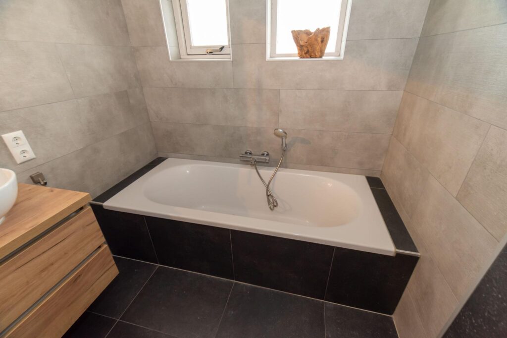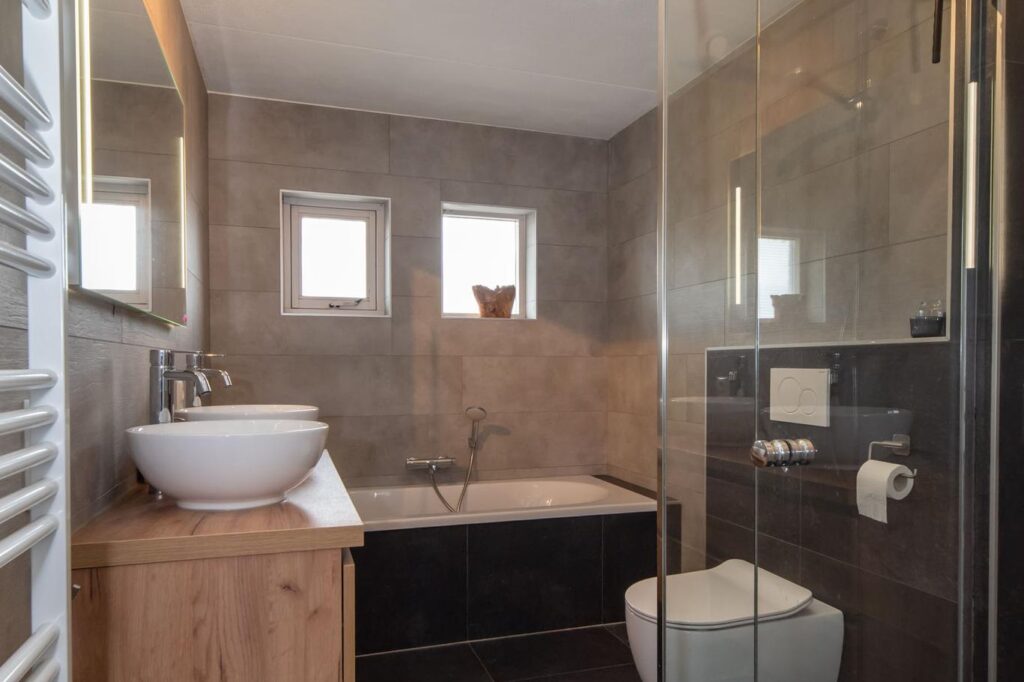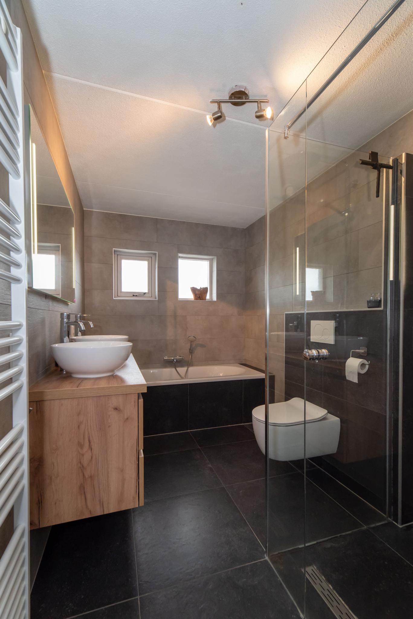 Op de eerste verdieping bevinden zich drie slaapkamers en een badkamer. Deze is uitgerust met een ligbad, inloopdouche, dubbele wastafel, toilet én comfortabele vloerverwarming.