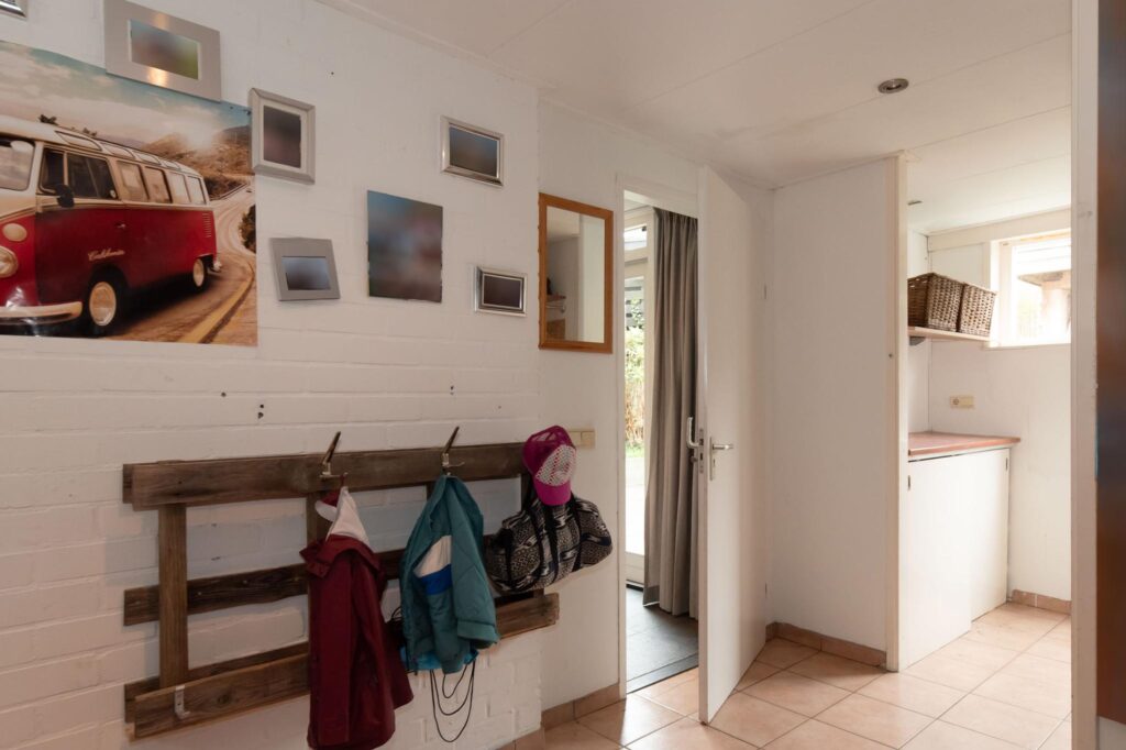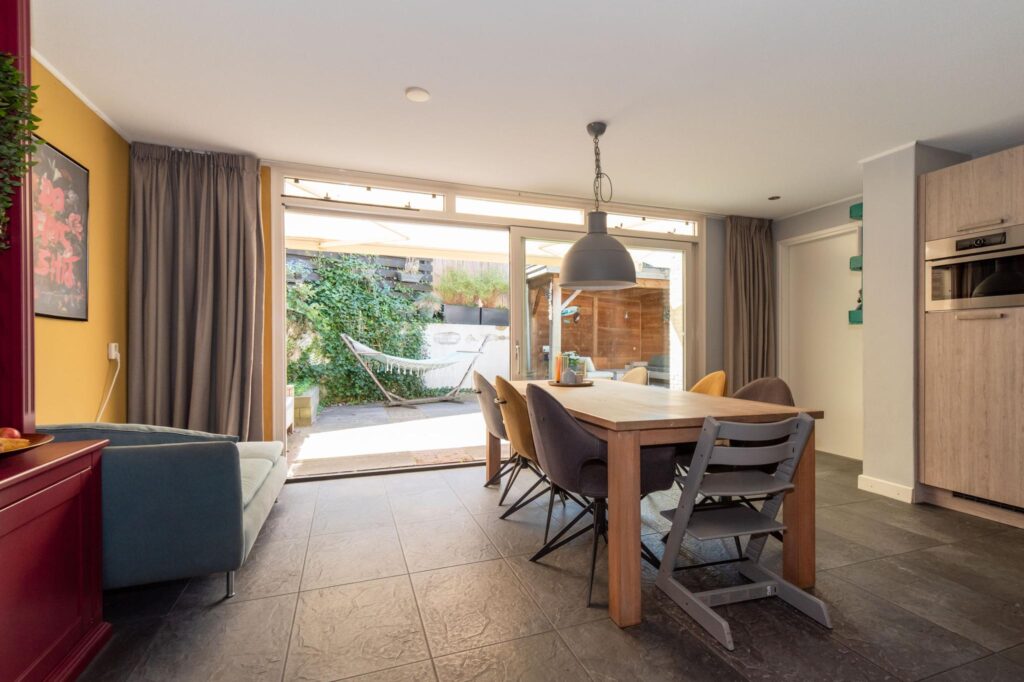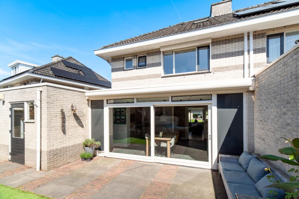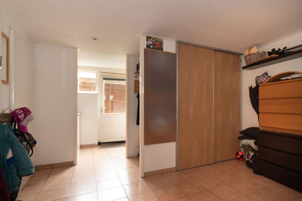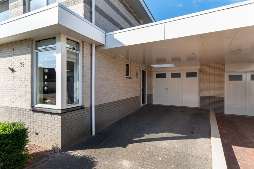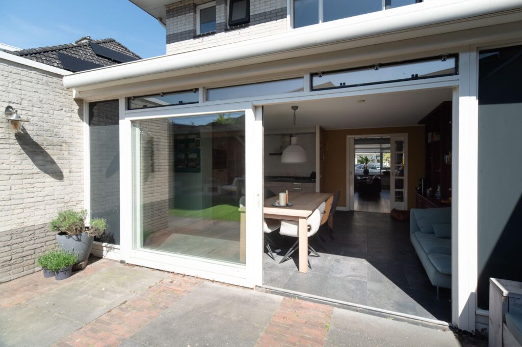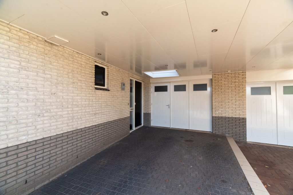 Bij aankomst springt meteen de nette carport in het oog, die zorgt voor een droge entree en plek biedt aan zeker twee auto’s op eigen terrein. De berging naast de woning is ideaal als fietsenstalling of als alternatieve entree – handig bij regen of zware boodschappen. Binnen wacht een ruime, lichte woonkeuken met een grote schuifpui die de tuin en het woongedeelte prachtig met elkaar verbindt – perfect voor binnen- en buitenleven in één.