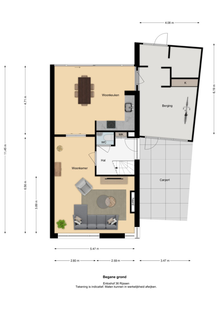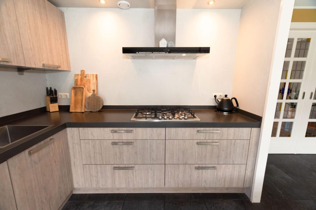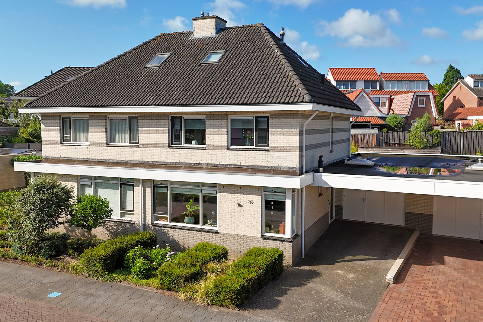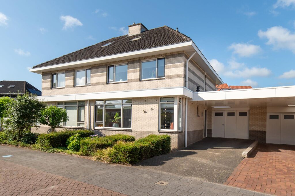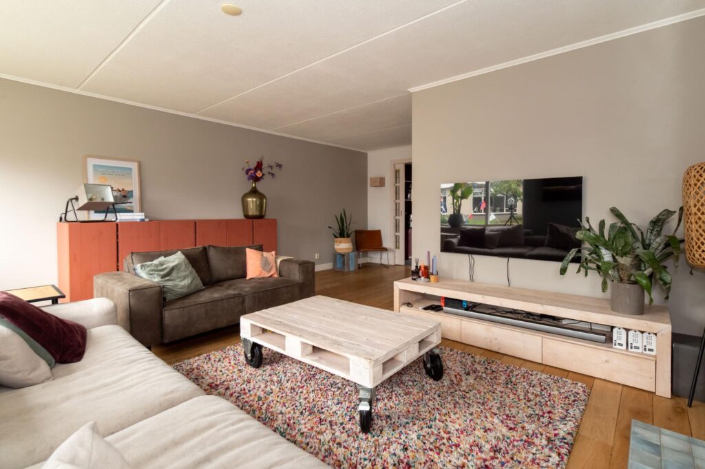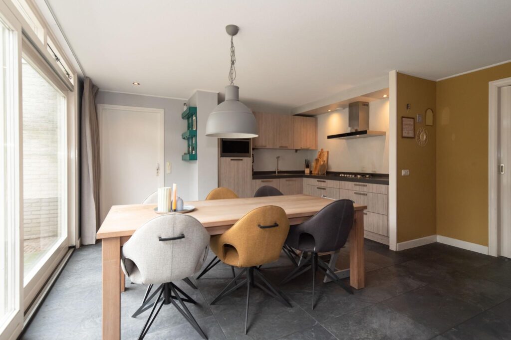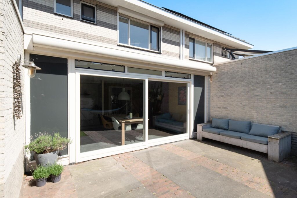 Bij aankomst springt meteen de nette carport in het oog, die zorgt voor een droge entree en plek biedt aan zeker twee auto’s op eigen terrein. De berging naast de woning is ideaal als fietsenstalling of als alternatieve entree – handig bij regen of zware boodschappen. Binnen wacht een ruime, lichte woonkeuken met een grote schuifpui die de tuin en het woongedeelte prachtig met elkaar verbindt – perfect voor binnen- en buitenleven in één.