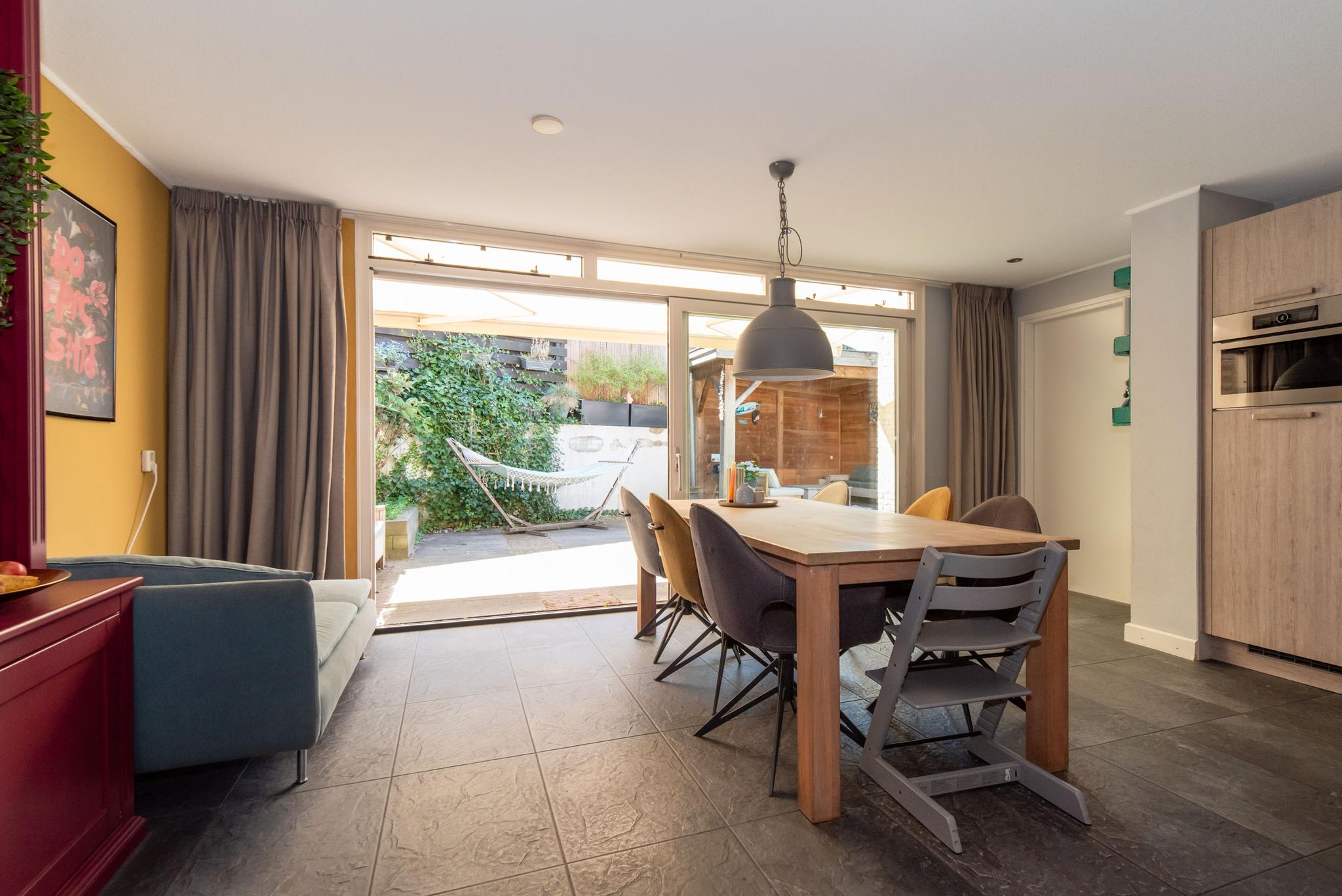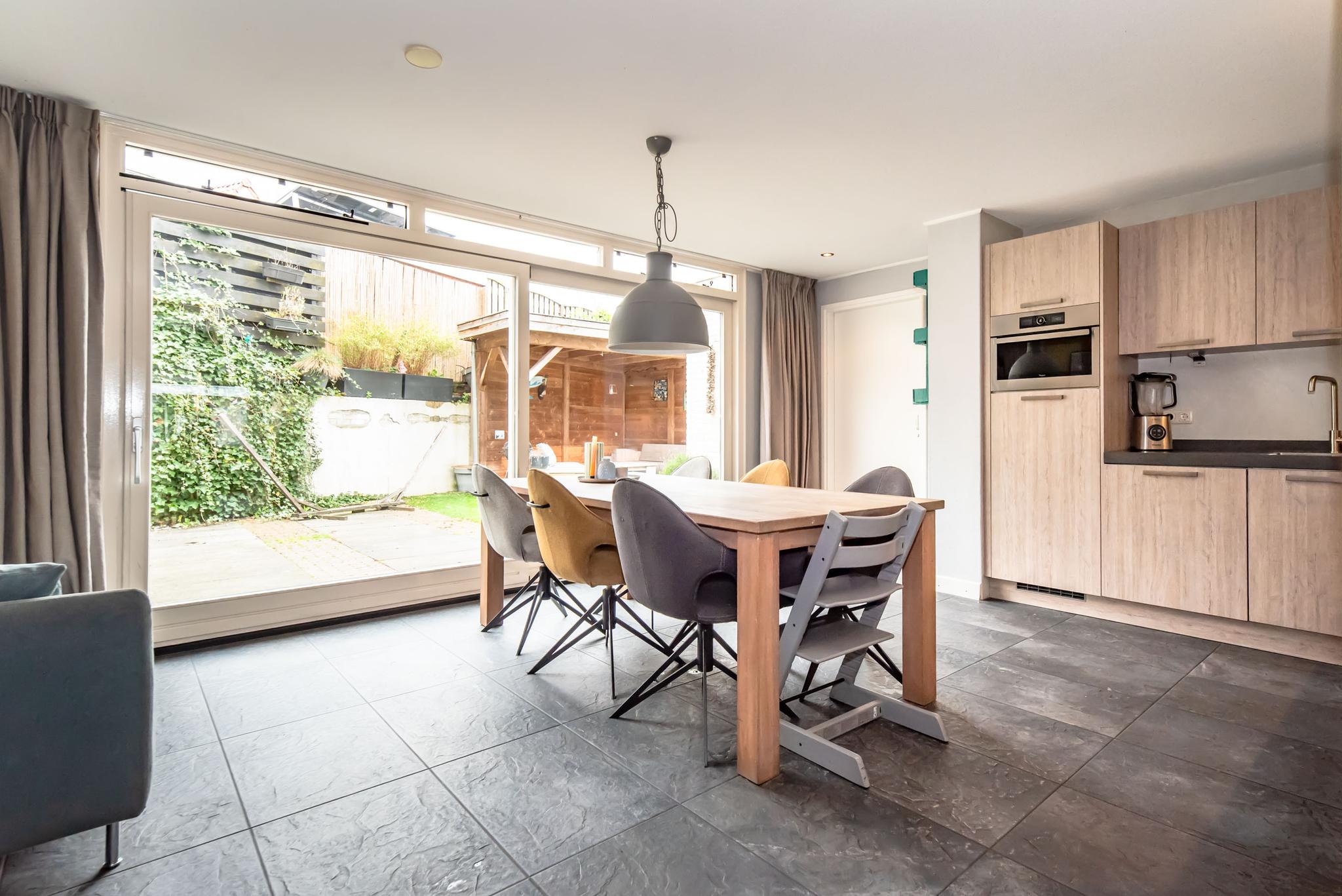 Parkeren kan je op je eigen oprit, met ruimte voor meerdere auto's. Via de voordeur kom je in de hal met de meterkast, het toilet, de trapopgang naar boven en de toegang tot de woonkamer. De woonkamer bevindt zich aan de voorzijde, is ruim en licht, en voorzien van een sfeervolle gashaard. De woonkeuken is met ensuite-deuren afgescheiden van de woonkamer en biedt volop plek voor het hele gezin. De nette keuken is voorzien van veel kastruimte en recent vernieuwde inbouwapparatuur, zoals de vaatwasser en koelkast. Dankzij de grote schuifpui stroomt het daglicht rijkelijk naar binnen en heb je een fijne connectie met de achtertuin.