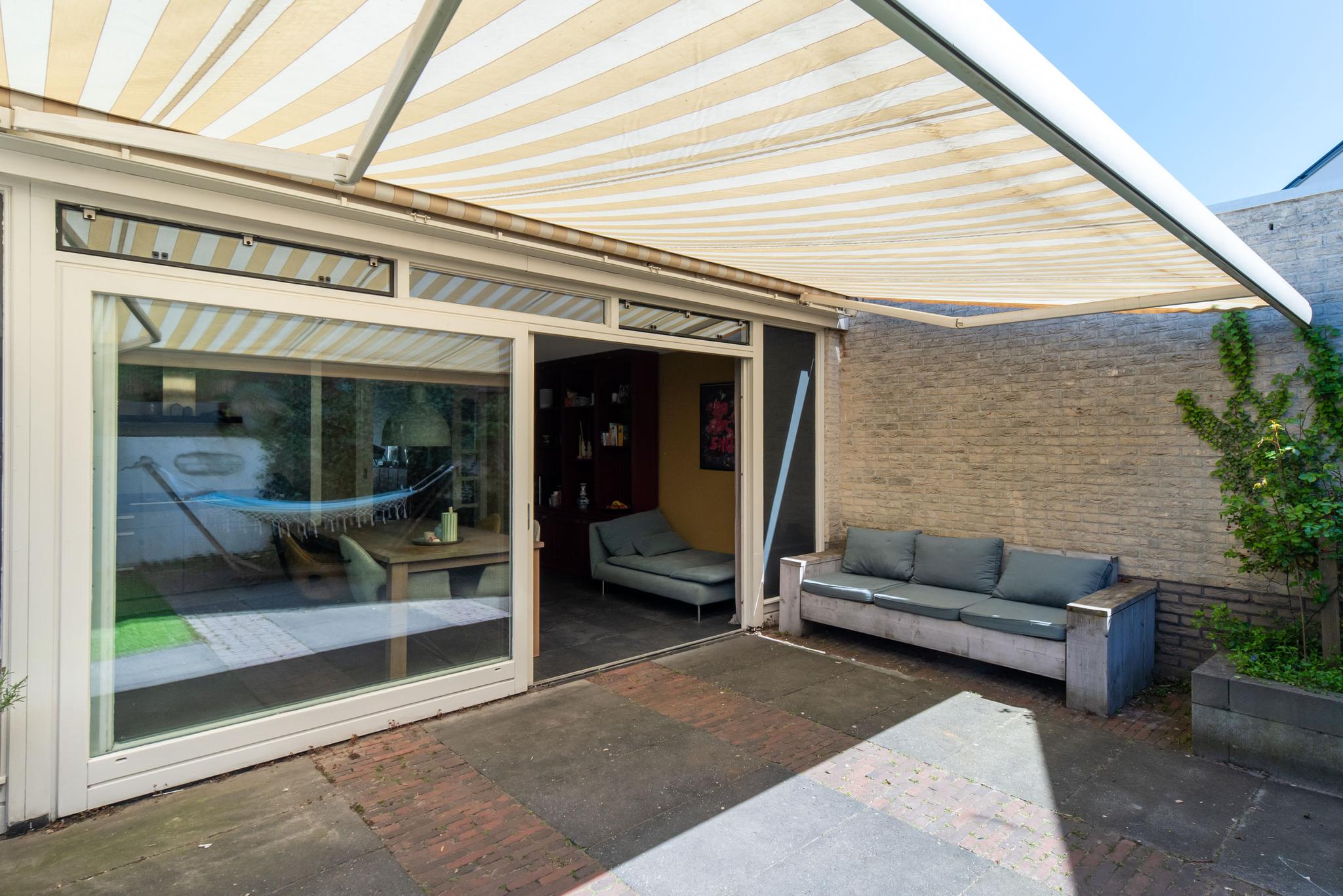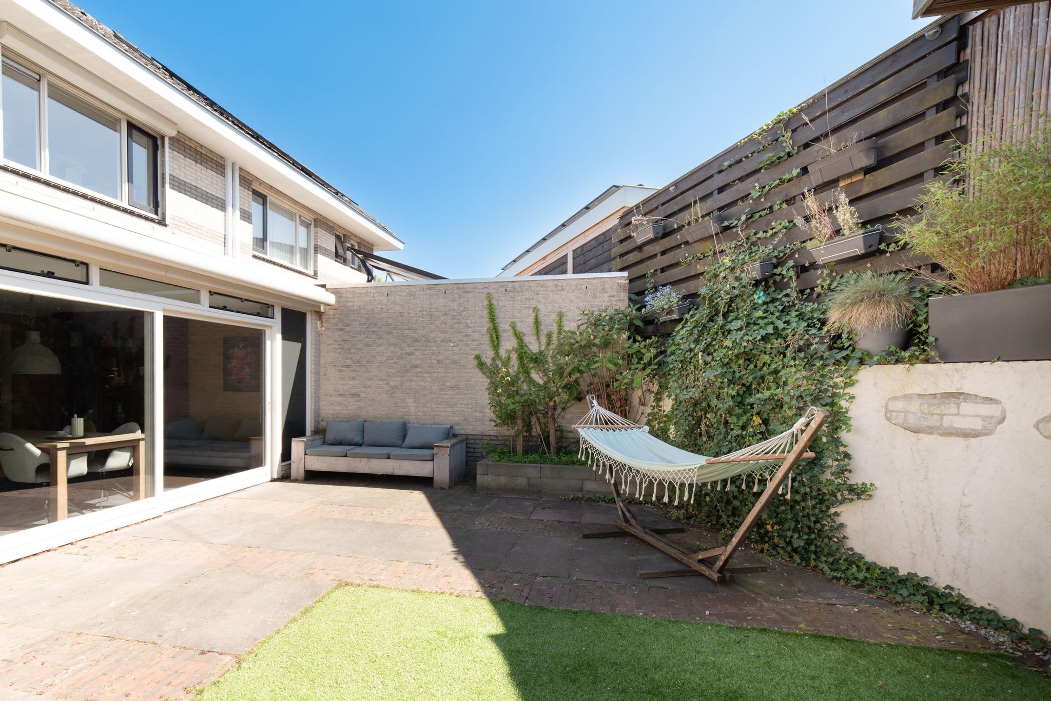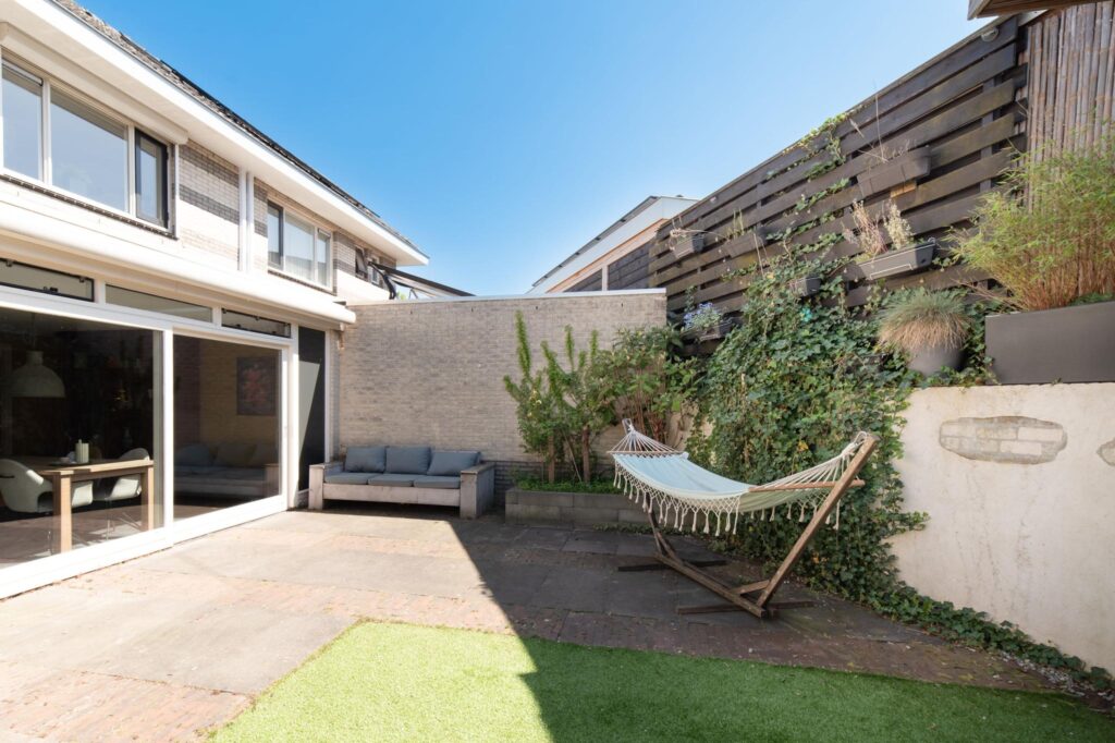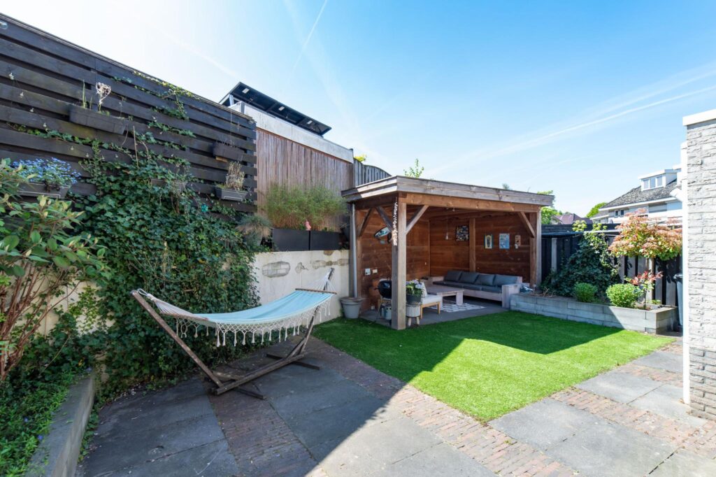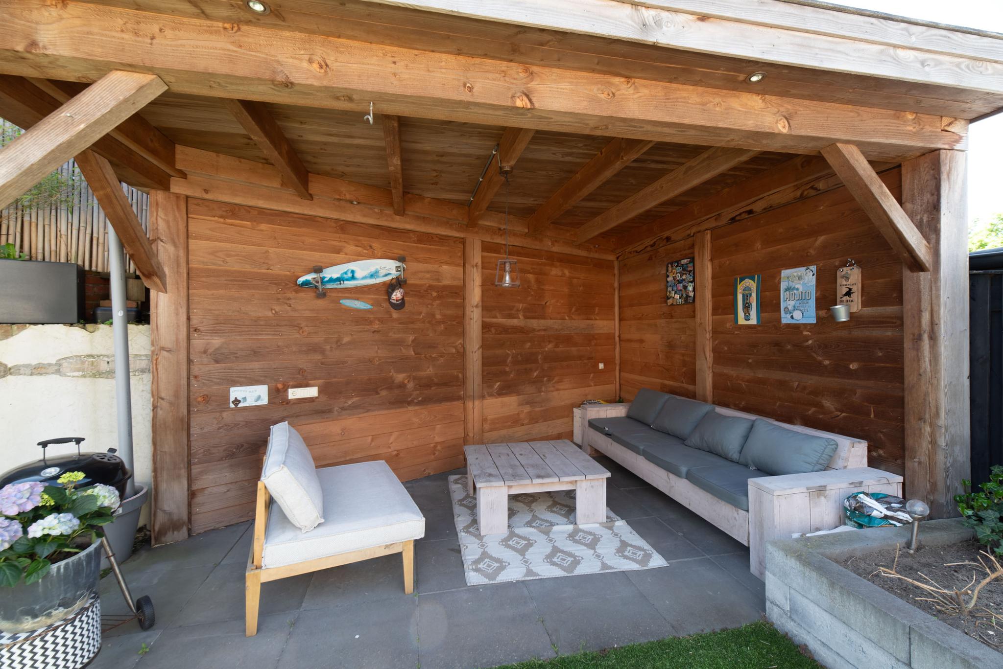 Zonnige en sfeervolle achtertuin op het zuidwesten, met een fraaie overkapping – ideaal om tot in de late uurtjes van buiten te genieten.