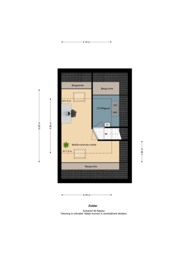De vermelde maatvoeringen en gepubliceerde plattegronden zijn opgesteld binnen de kaders van de Branchebrede Meetinstructie, gebaseerd op NEN2580, met een onderverdeling in verschillende gebruiksoppervlakten. Omdat de publicatie via diverse externe kanalen verloopt, kan Daan Makelaars BV geen aansprakelijkheid aanvaarden voor eventuele onjuiste weergave van informatie.
