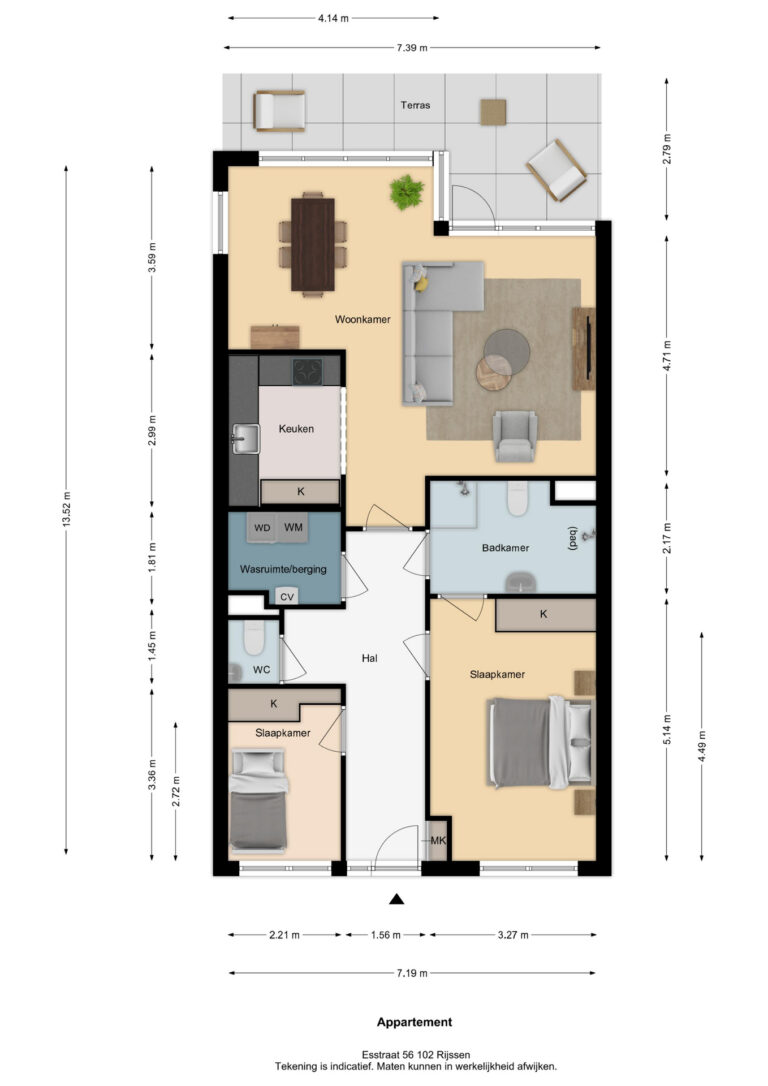 Vermelde maatvoeringen en gepubliceerde plattegronden zijn opgesteld binnen de kaders van de Branche Brede Meetinstructie; gebaseerd op NEN2580, met een onderverdeling in verschillende gebruiksoppervlakten. Omdat de publicatie ingevoerde gegevens via diverse, externe kanalen geschiedt, kan Daan Makelaars BV geen aansprakelijkheid aanvaarden voor onjuiste weergave van informatie