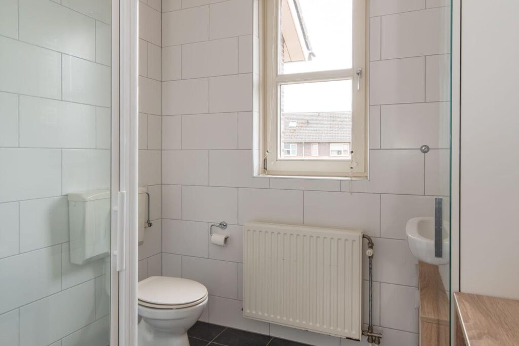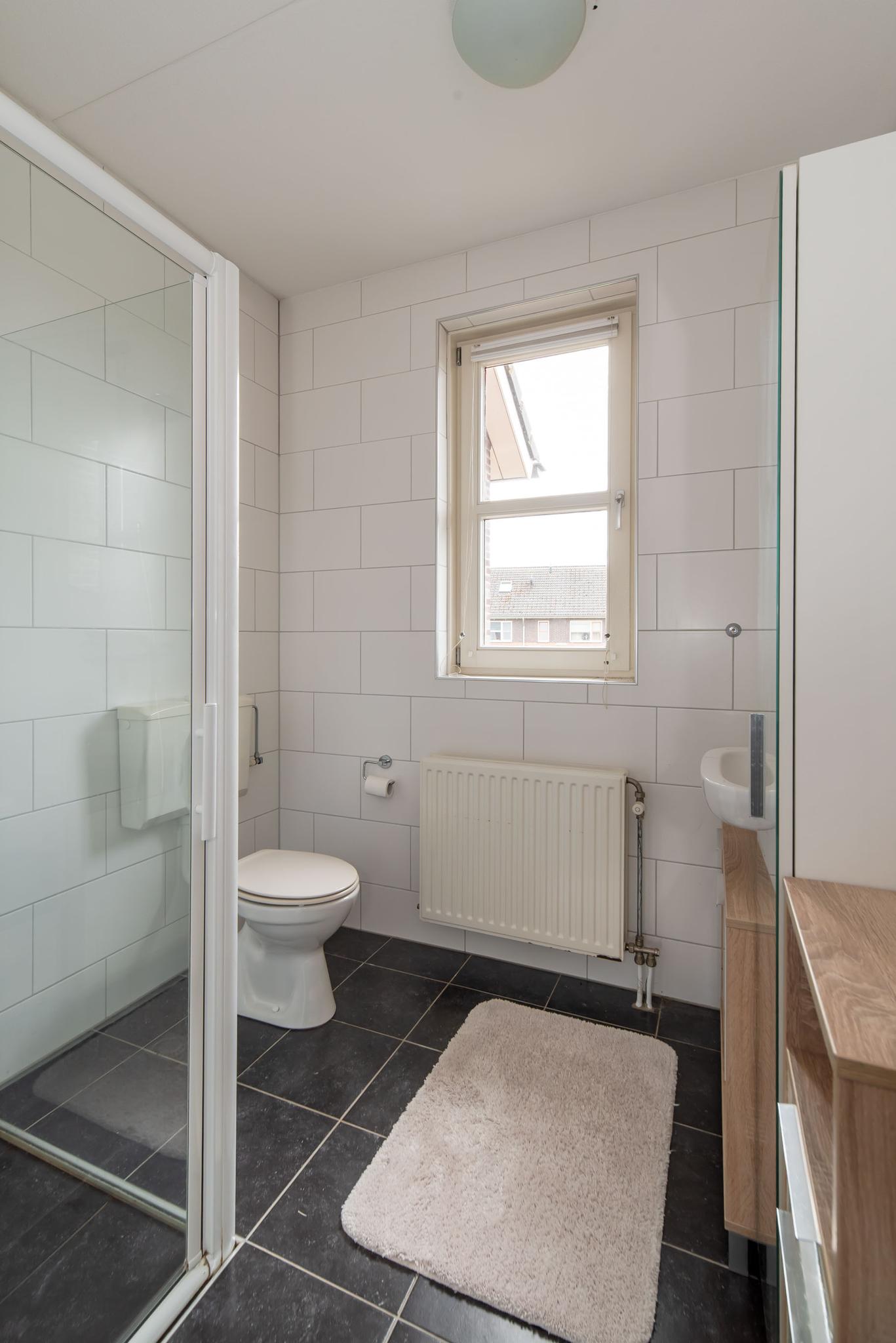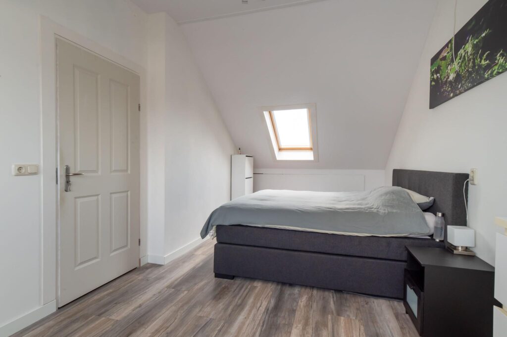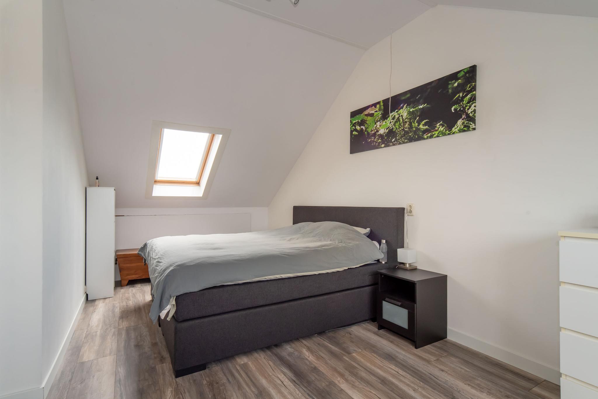 Op de tweede verdieping bevindt zich een ruime slaapkamer met recent geplaatste badkamer. Deze badkamer is voorzien van een vloerverwarming, een inloopdouche, toilet en wastafel. Verder is er op deze verdieping een handige bergruimte met aansluiting voor de wasmachine. In 2018 is op deze verdieping een dakkapel geplaatst en voorzien van elektrische rolluik.