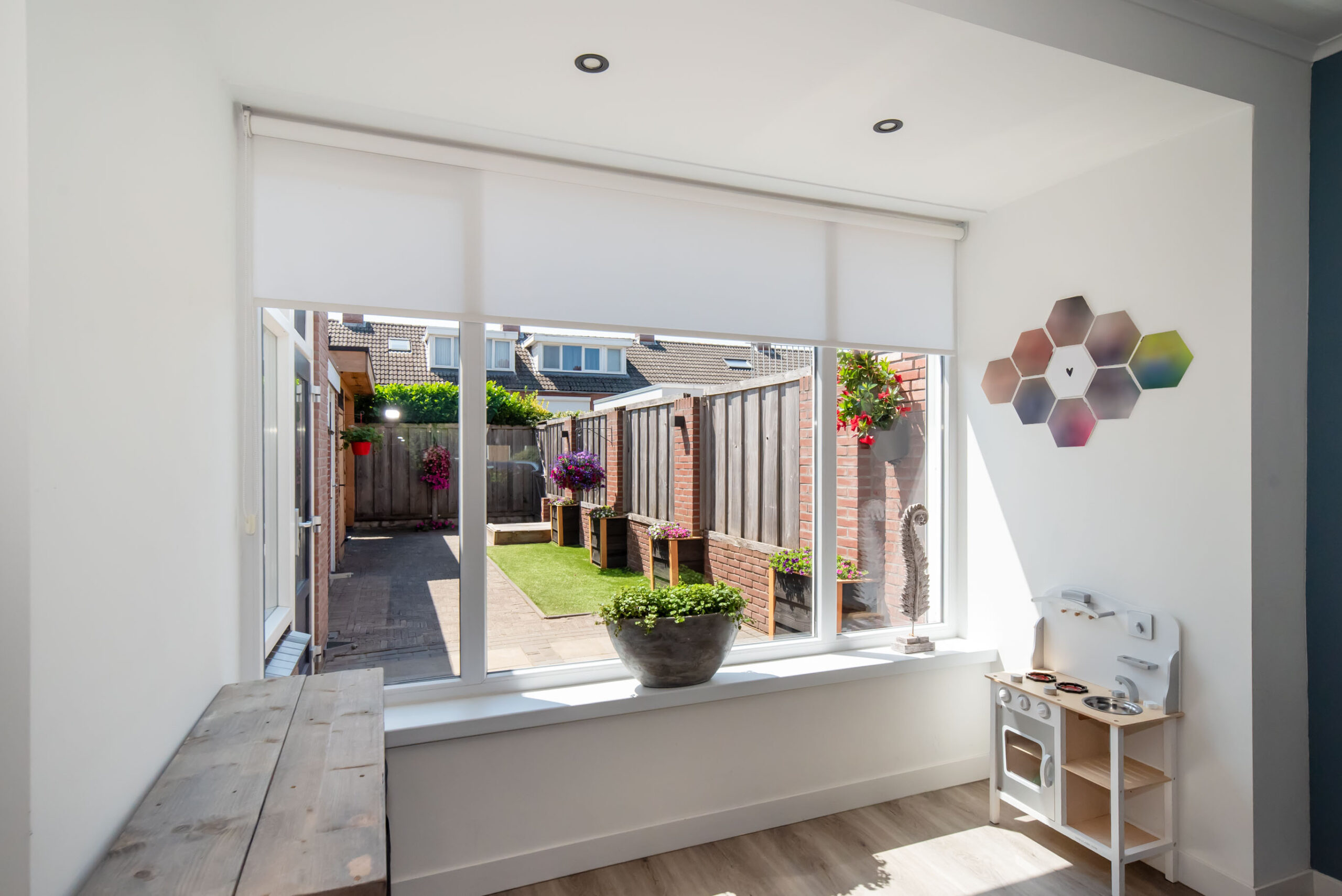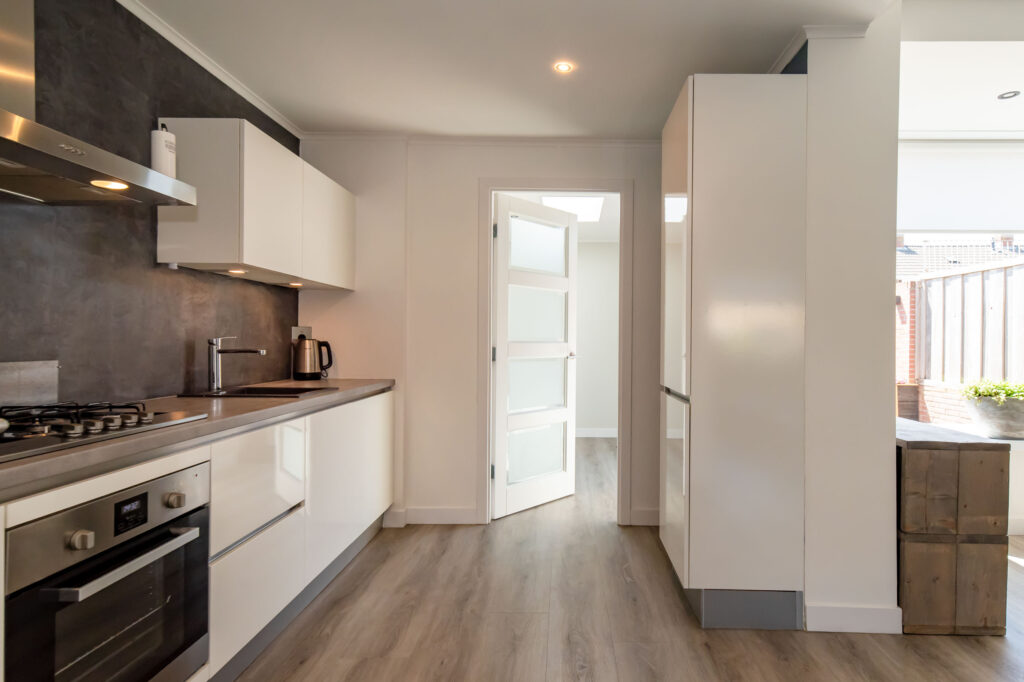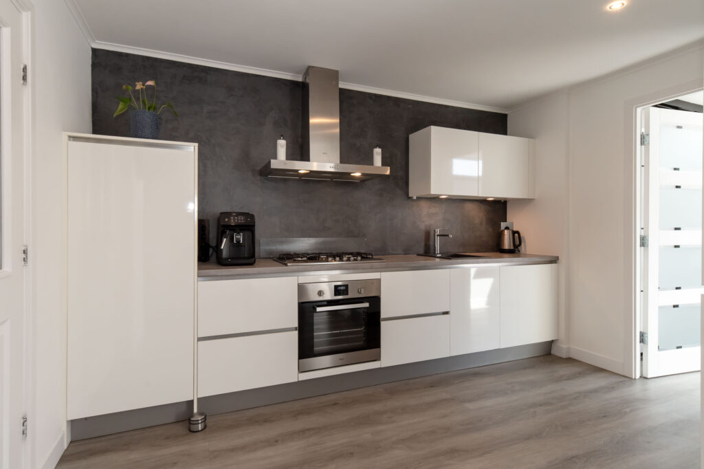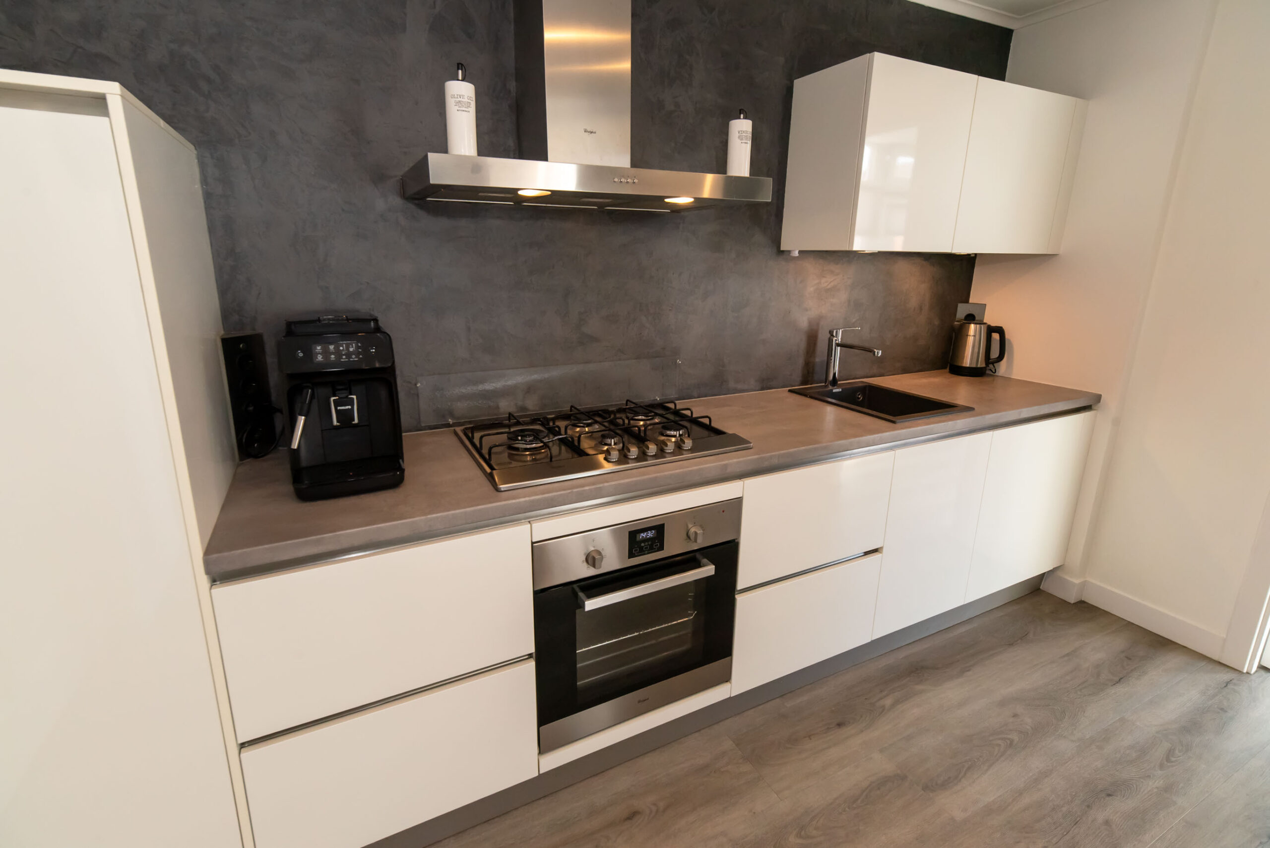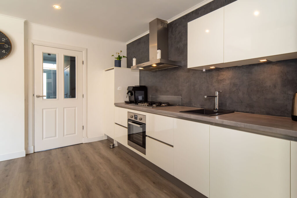 De keuken is in 2017 vernieuwd en voorzien van moderne inbouwapparatuur: vaatwasser, gaskookplaat, koelkast, oven en veel kastruimte. De keuken staat in open verbinding met de lichte, tuingerichte woonkamer met vloerverwarming over de gehele begane grond. Vanuit de keuken heb je toegang tot de praktische bijkeuken met wasmachineaansluiting, een vaste kast en een deur naar de achtertuin.