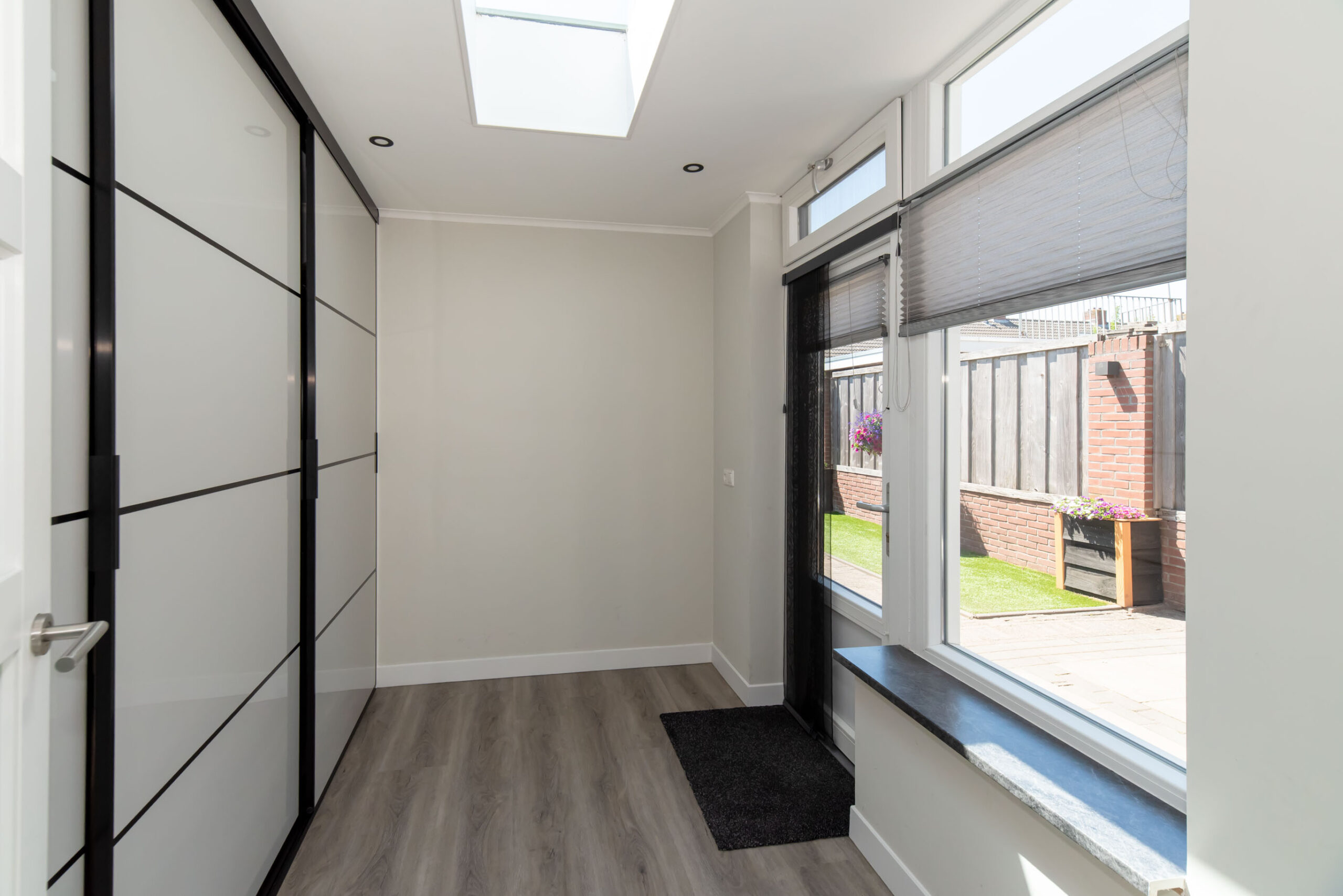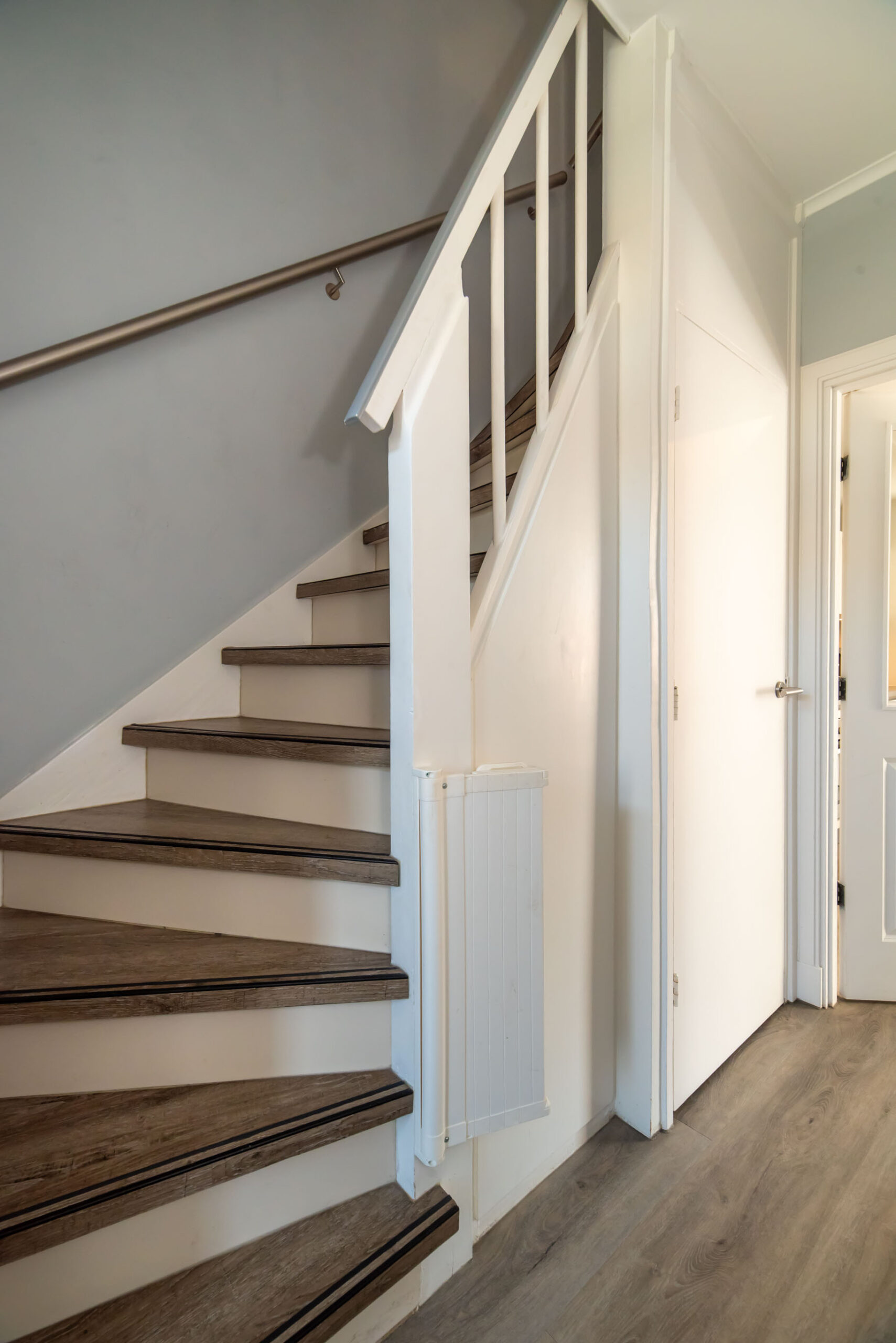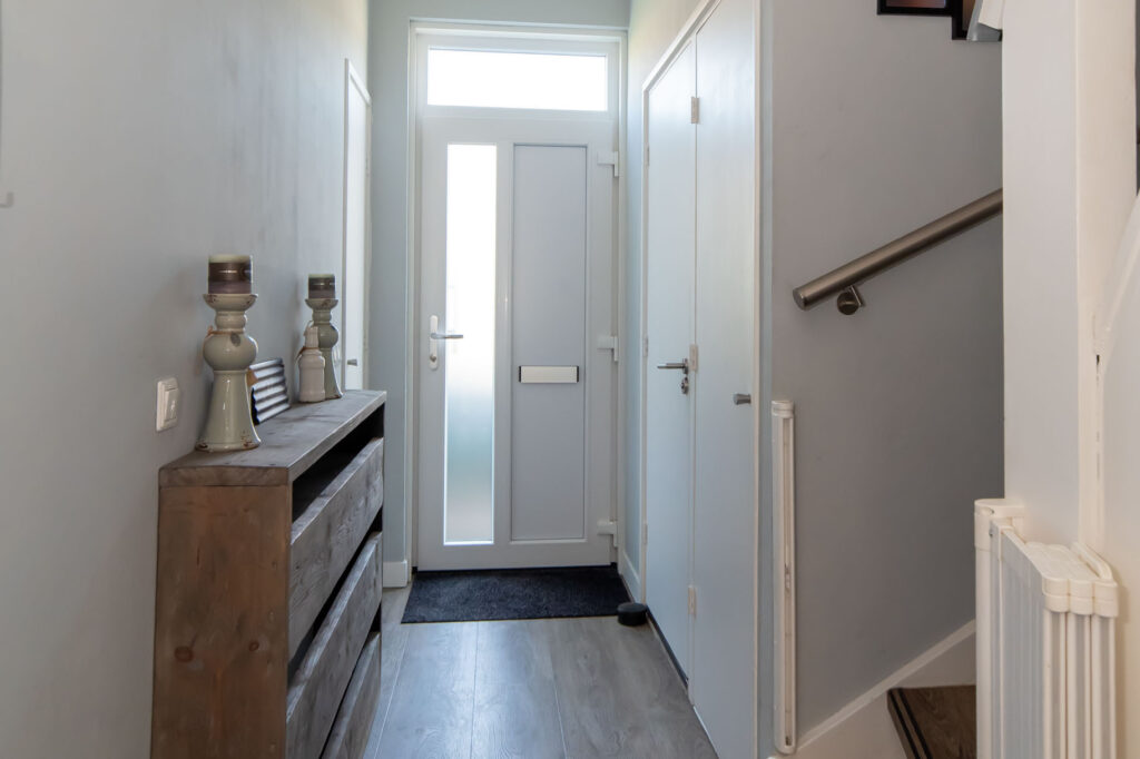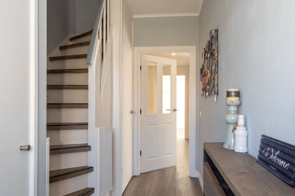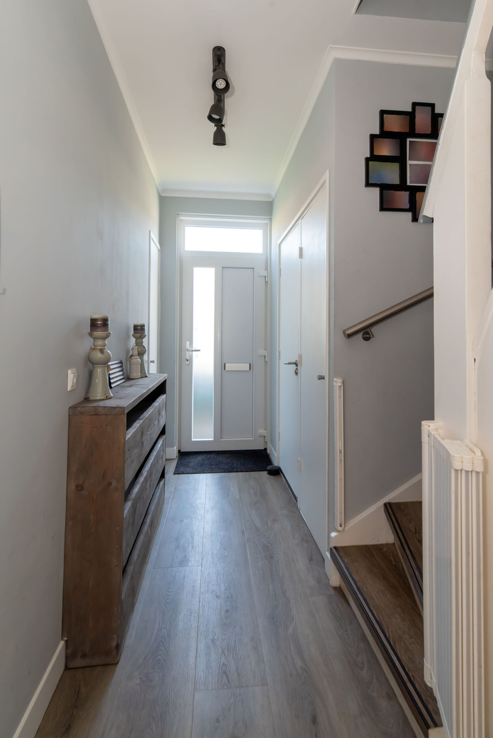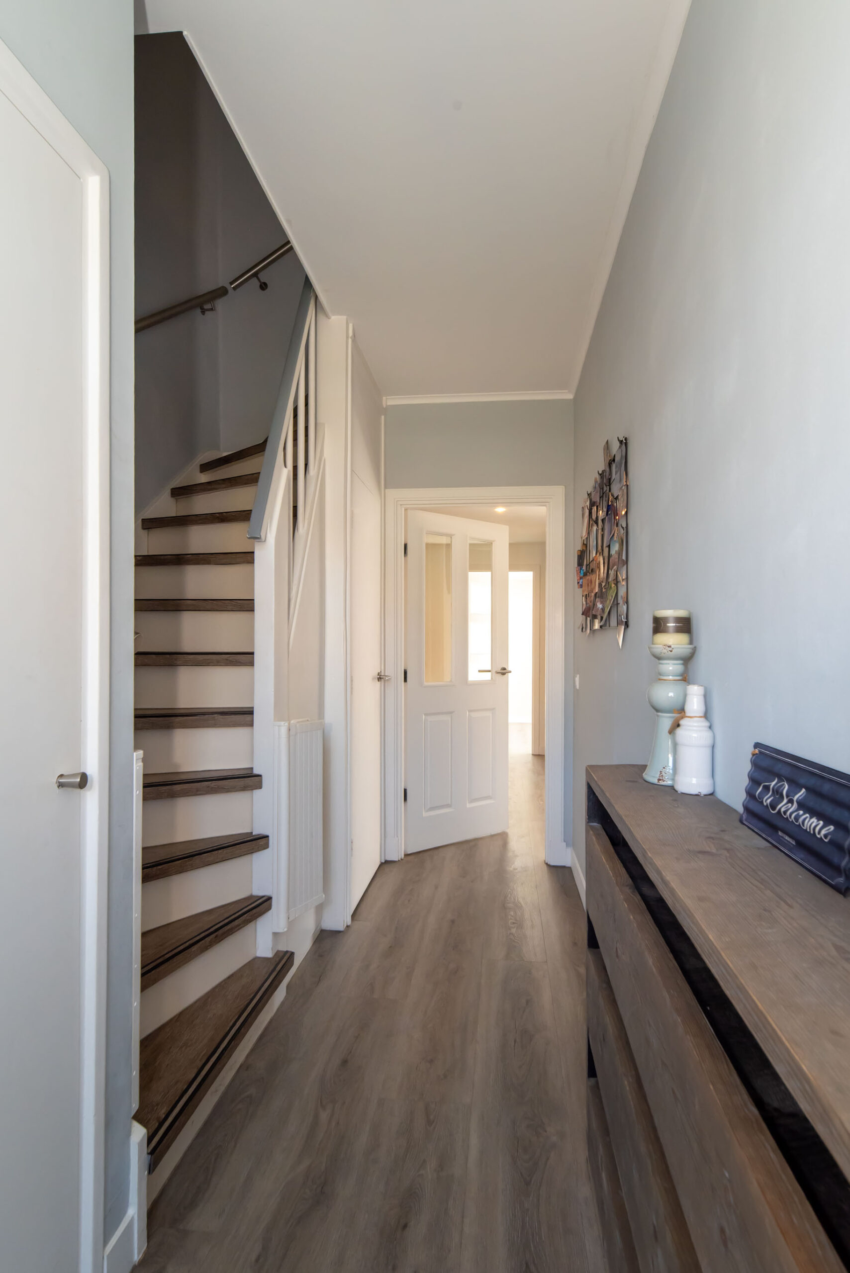 Je komt binnen via de hal met toilet, vaste kast, trapopgang en toegang tot de keuken.