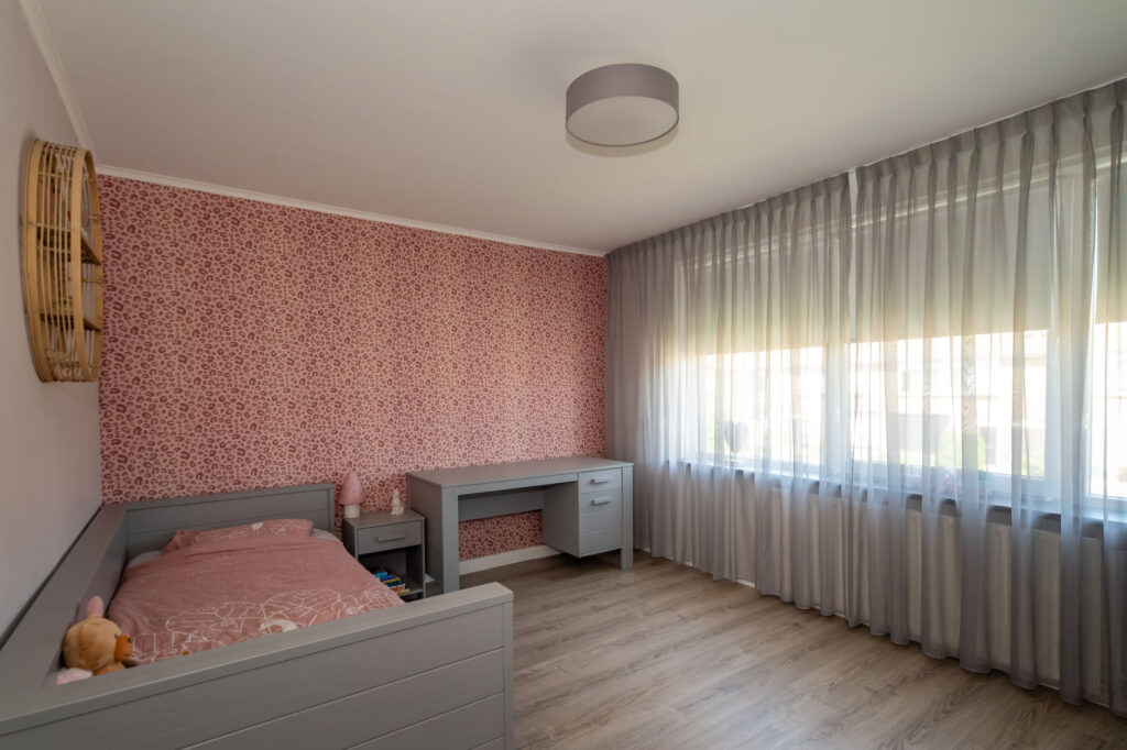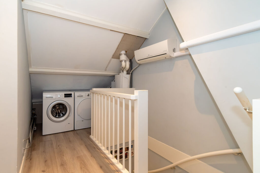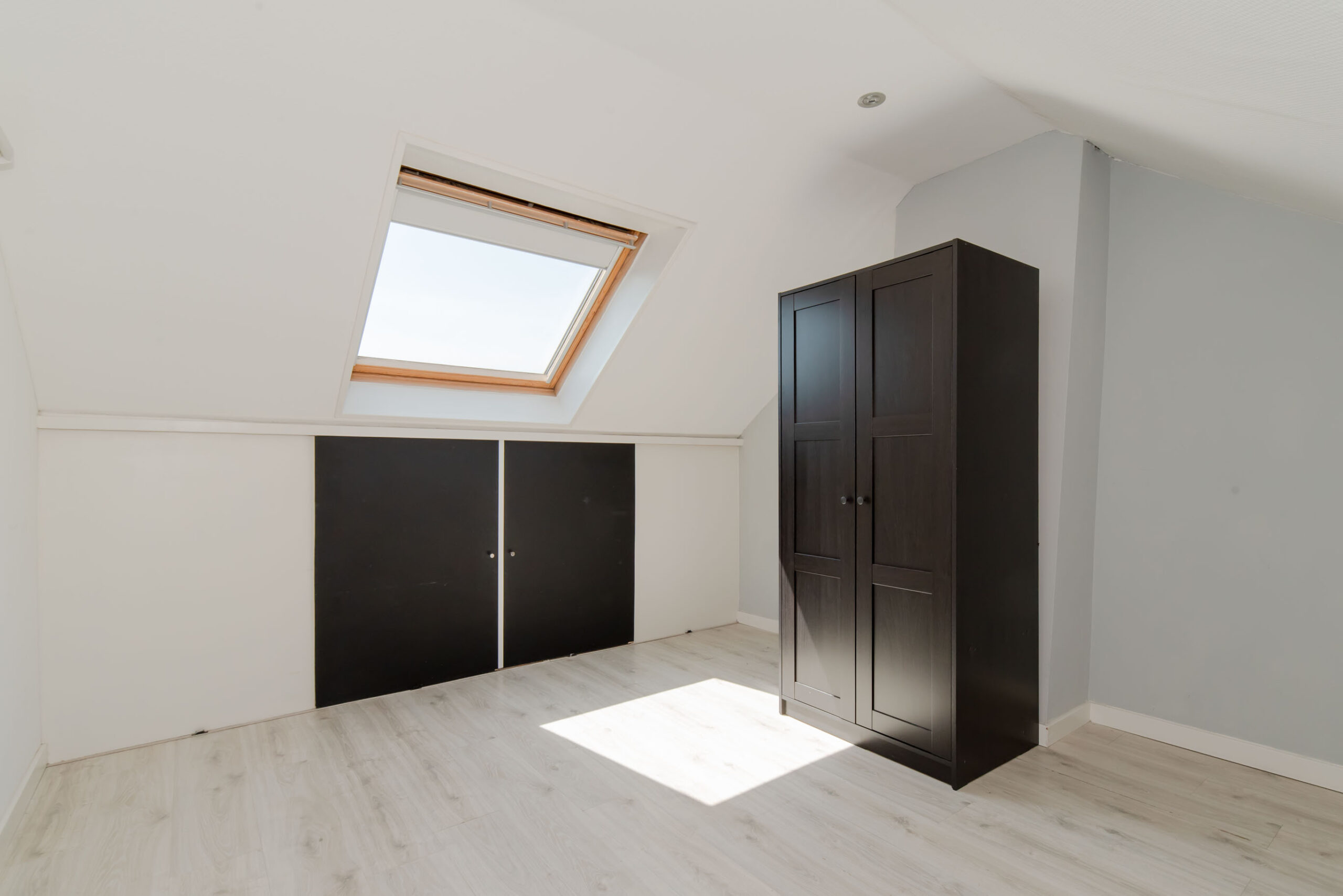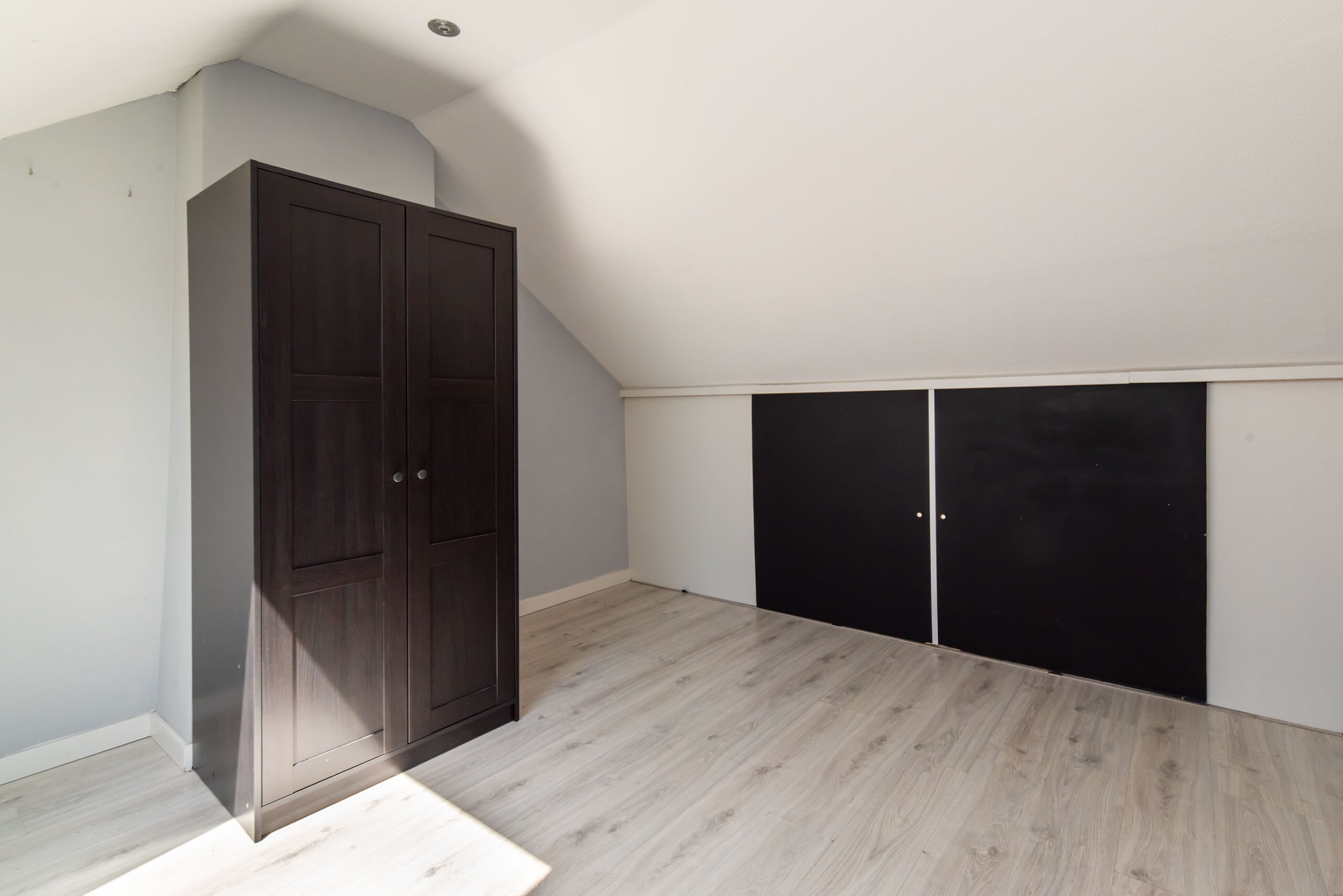 Op deze verdieping vind je een ruime vierde slaapkamer met extra bergruimte achter de knieschotten. Op de overloop bevindt zich de cv-ketel (2022) en extra bergruimte.