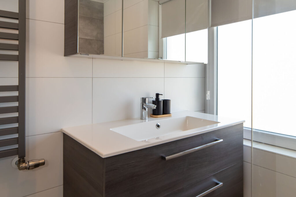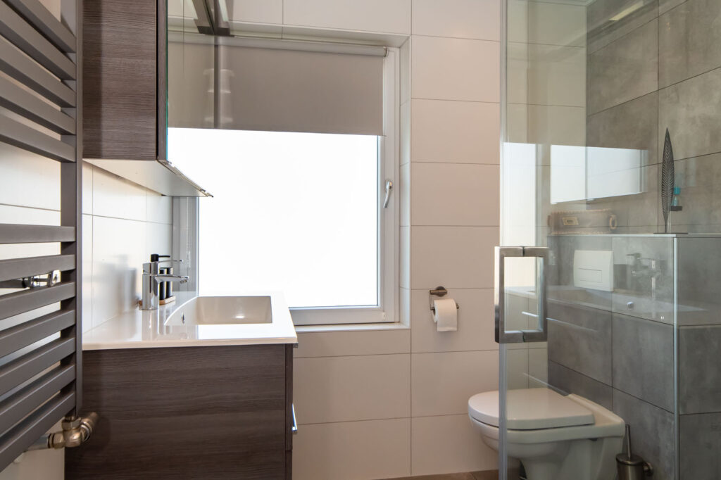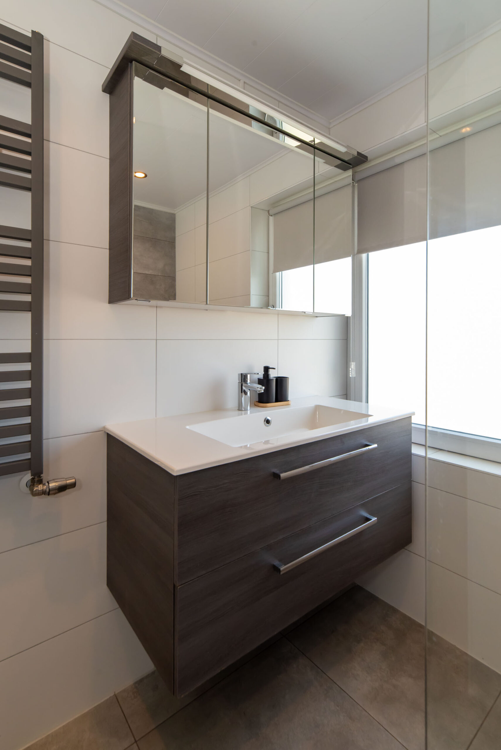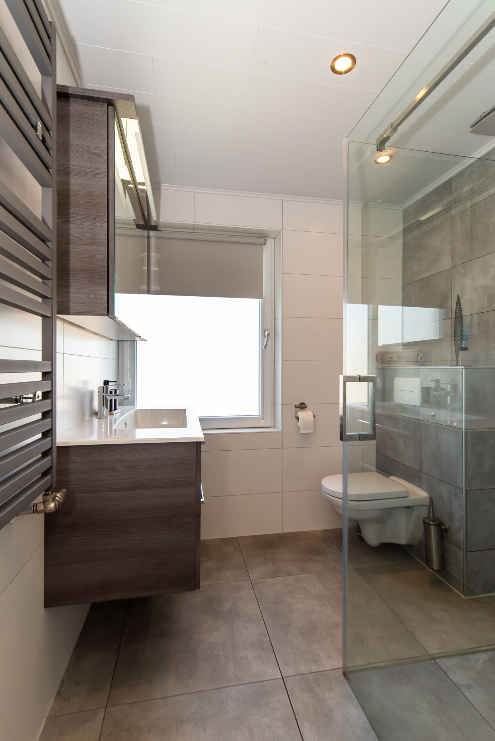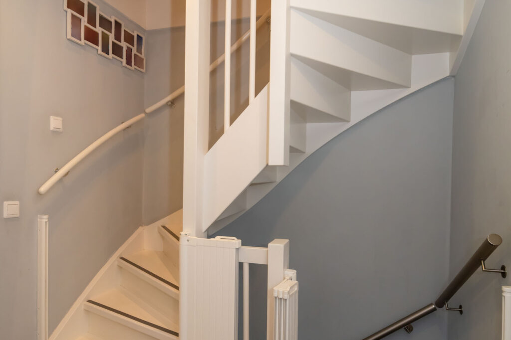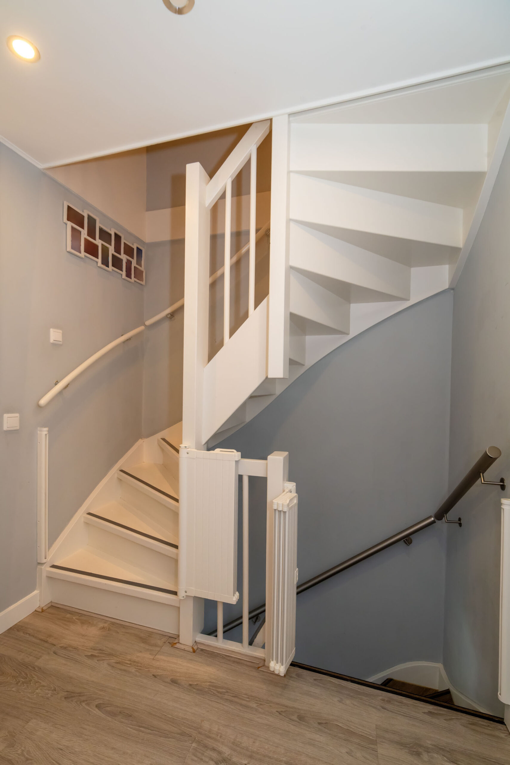 Hier bevinden zich drie slaapkamers, waarvan één met toegang tot een balkon. De badkamer (2017) is modern uitgevoerd en voorzien van een inloopdouche, wastafel en toilet. Vanaf de overloop leidt een vaste trap naar de tweede verdieping.