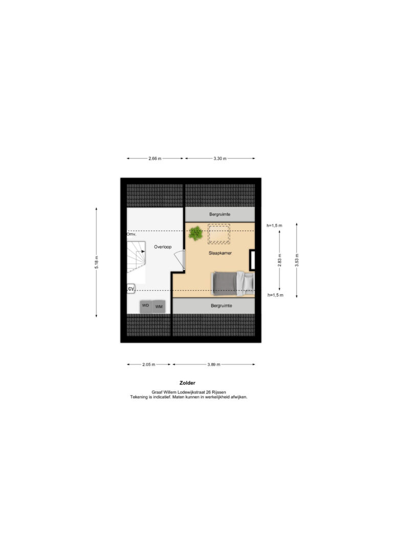 Let op: De vermelde afmetingen en gepubliceerde plattegronden zijn opgesteld volgens de Branche Brede Meetinstructie, gebaseerd op NEN2580, met onderverdeling in verschillende gebruiksoppervlakten. Omdat de publicatie van informatie via diverse externe kanalen verloopt, kan Daan Makelaars BV geen aansprakelijkheid aanvaarden voor onjuiste weergave van informatie.
