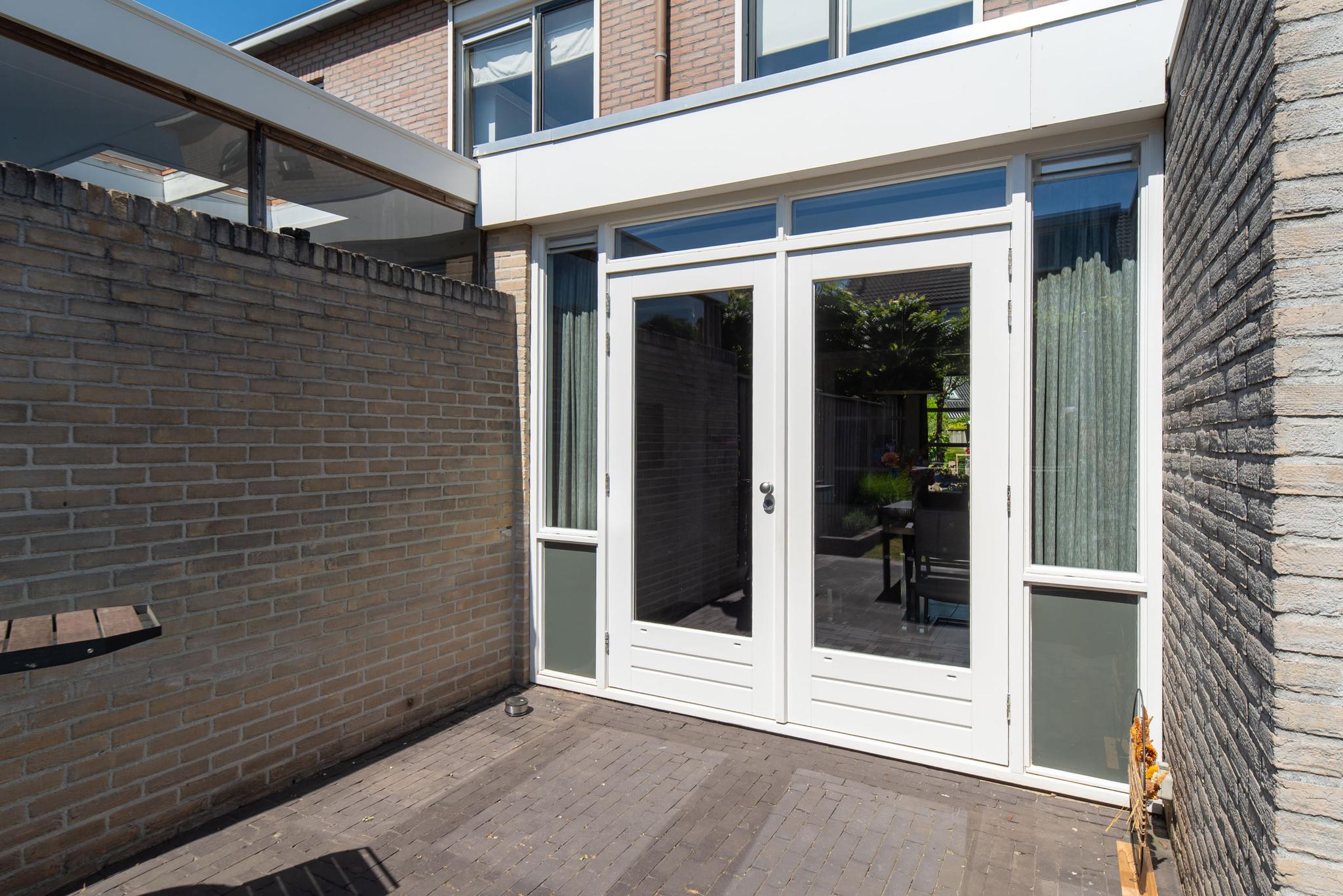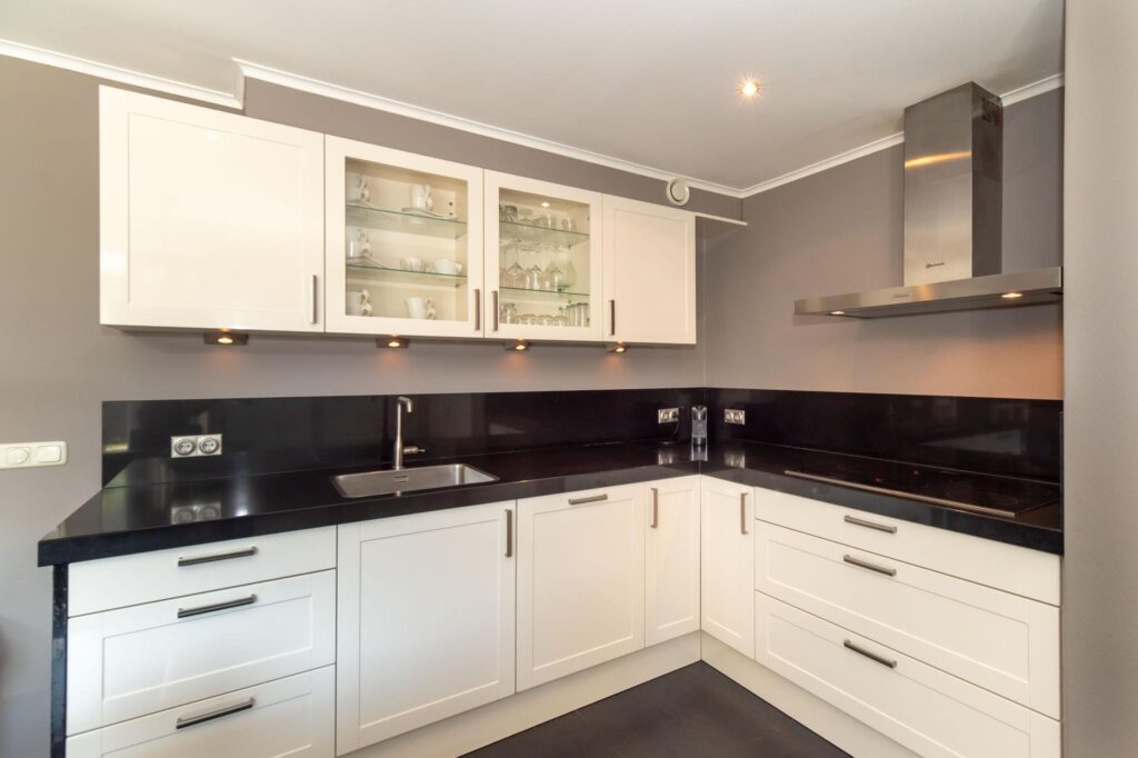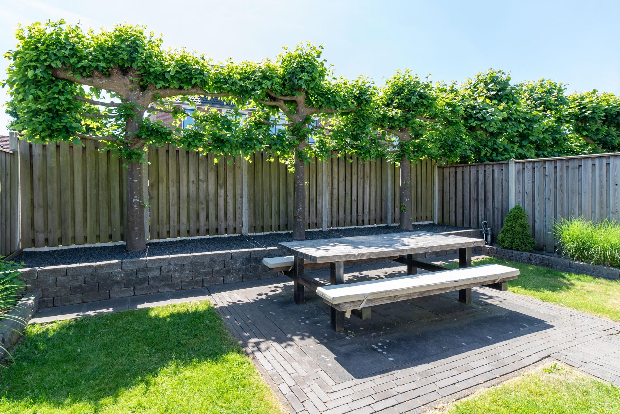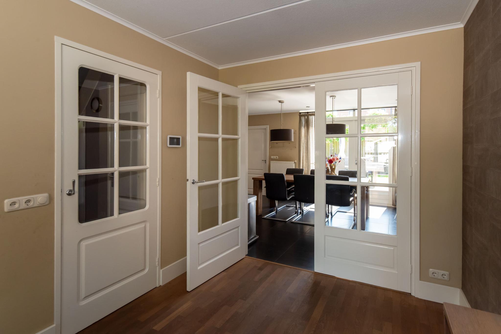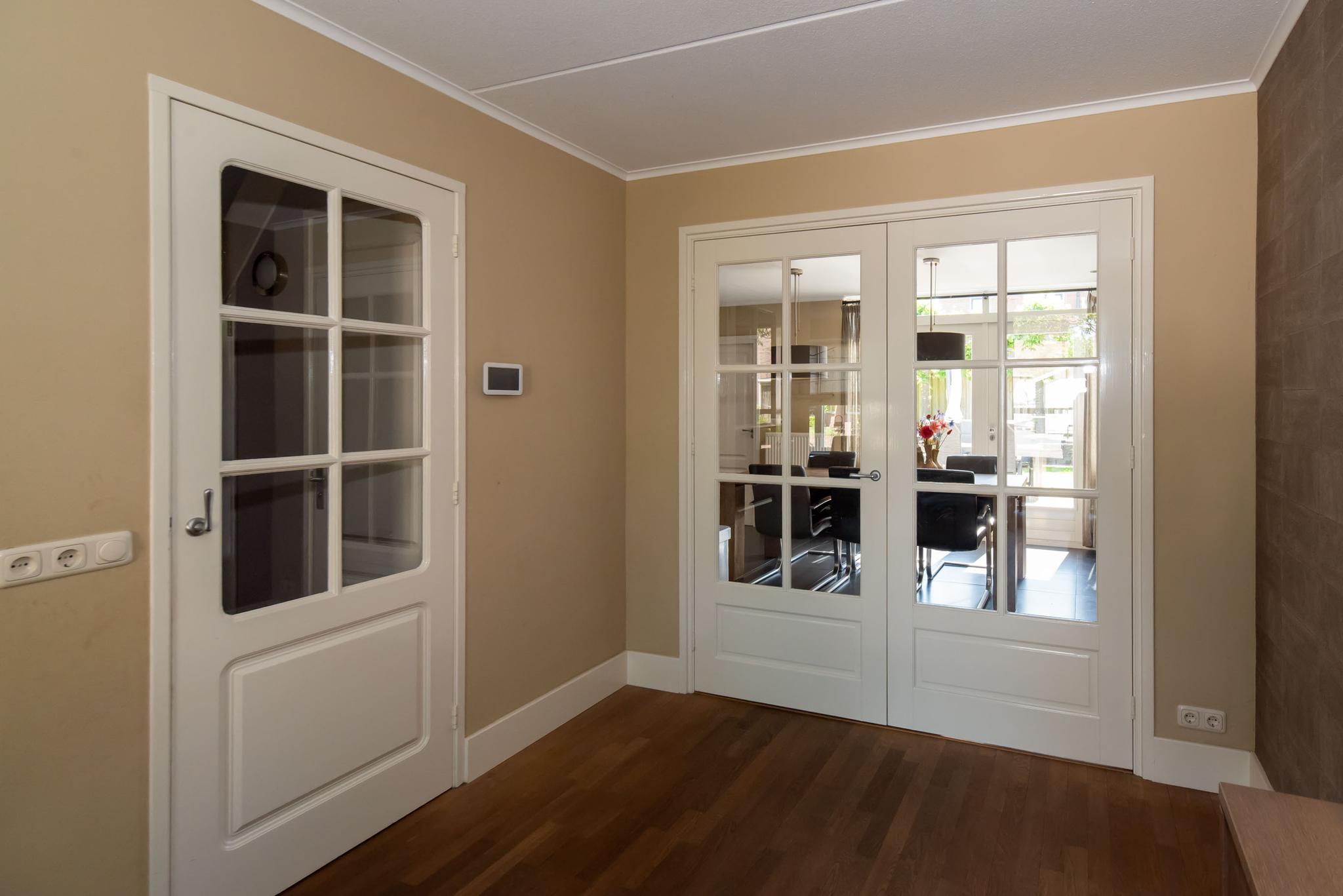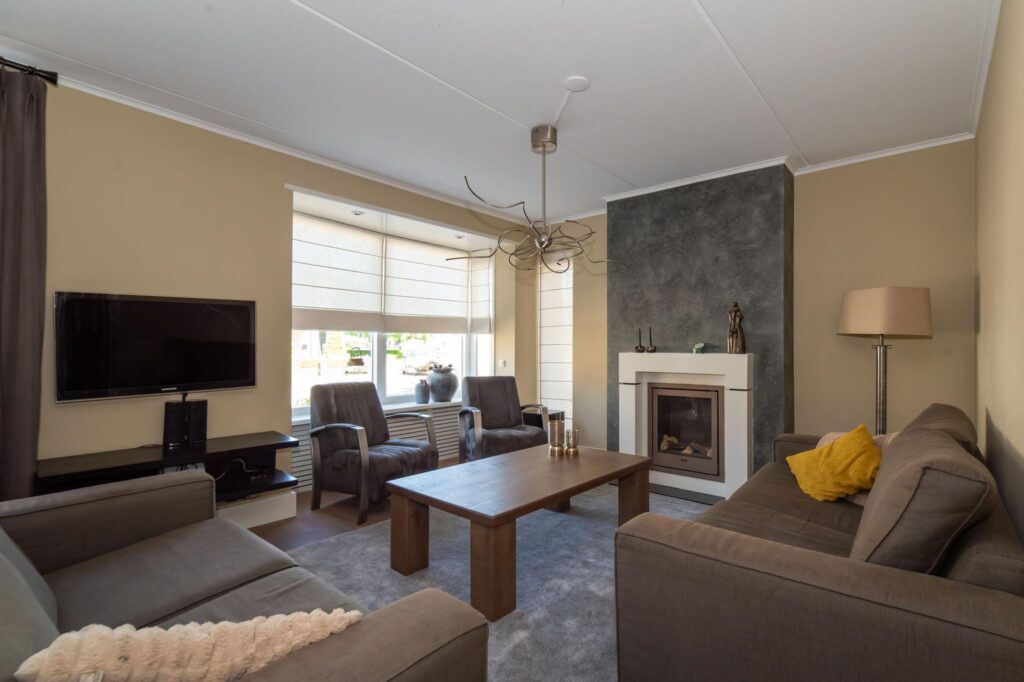De ruime woonkamer beschikt over een sfeervolle gashaard en een erker aan de voorzijde. Via dubbele deuren bereik je de woonkeuken. Hier is voldoende ruimte voor een royale eethoek en dankzij de openslaande tuindeuren stap je zo de tuin in. De keuken is recent voorzien van nieuwe inbouwapparatuur. Daarnaast is er een praktische bijkeuken aanwezig, die tevens toegang geeft tot de ruime garage.