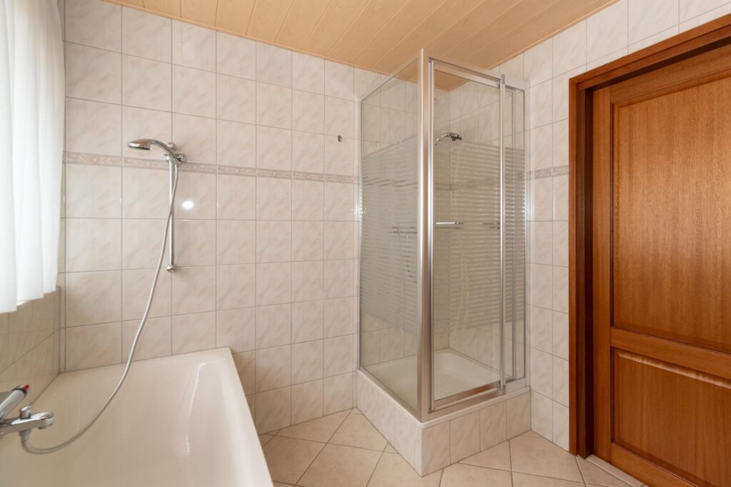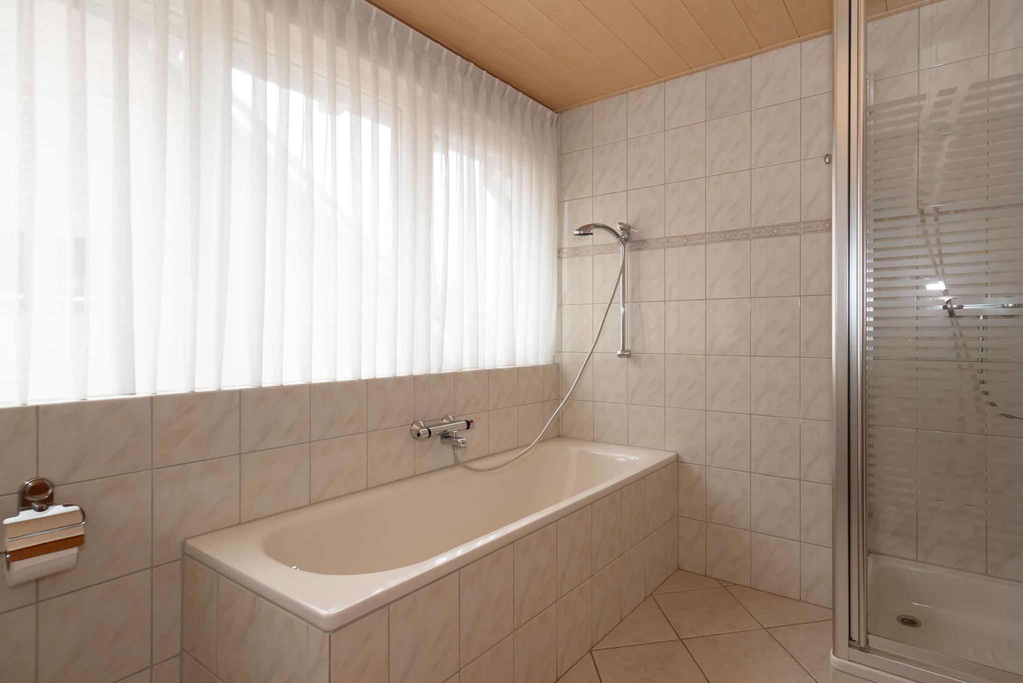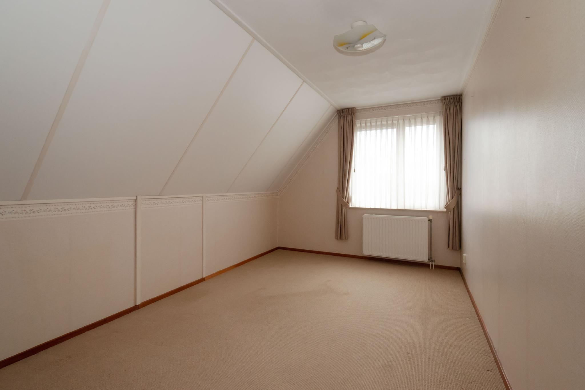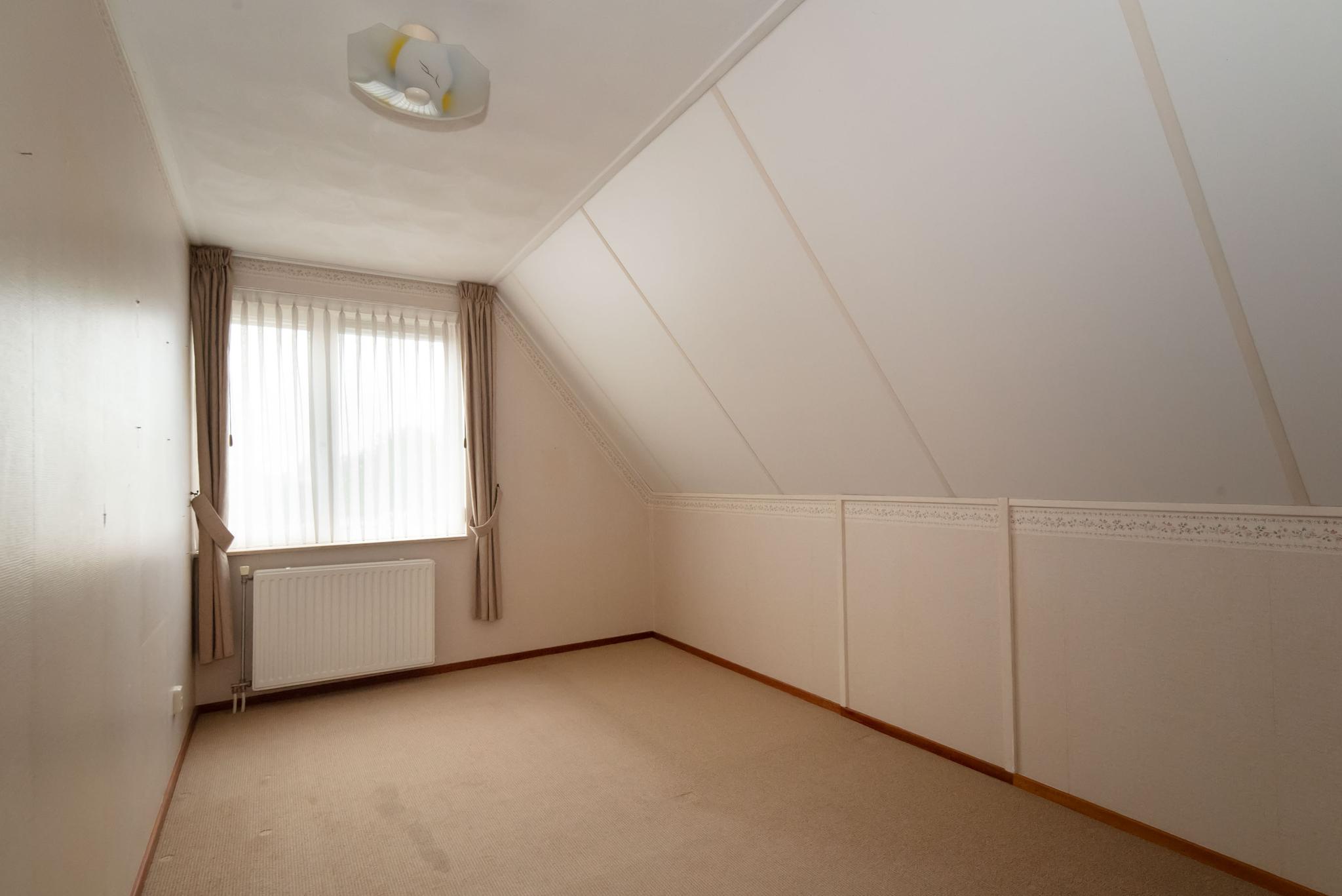 Op de eerste verdieping vind je de tweede badkamer en drie fijne slaapkamers, allemaal met handige bergruimte. Twee van de kamers hebben extra opslagruimte onder de knieschotten, terwijl de derde slaapkamer een ruime kastenwand heeft. Via een vlizotrap bereik je de bergzolder.