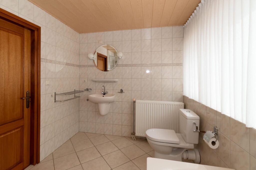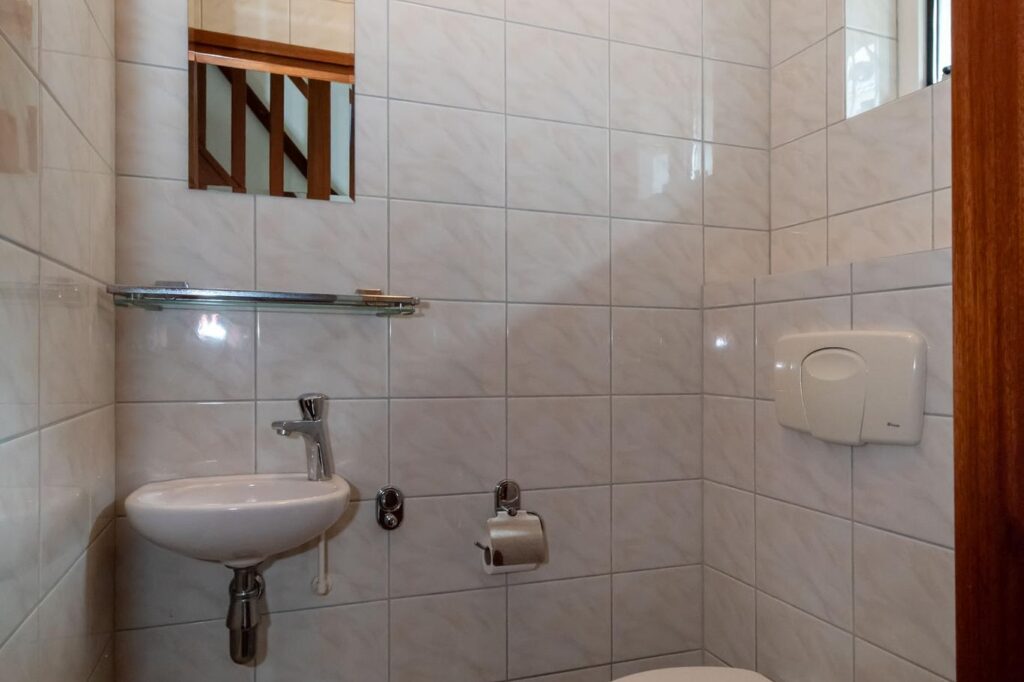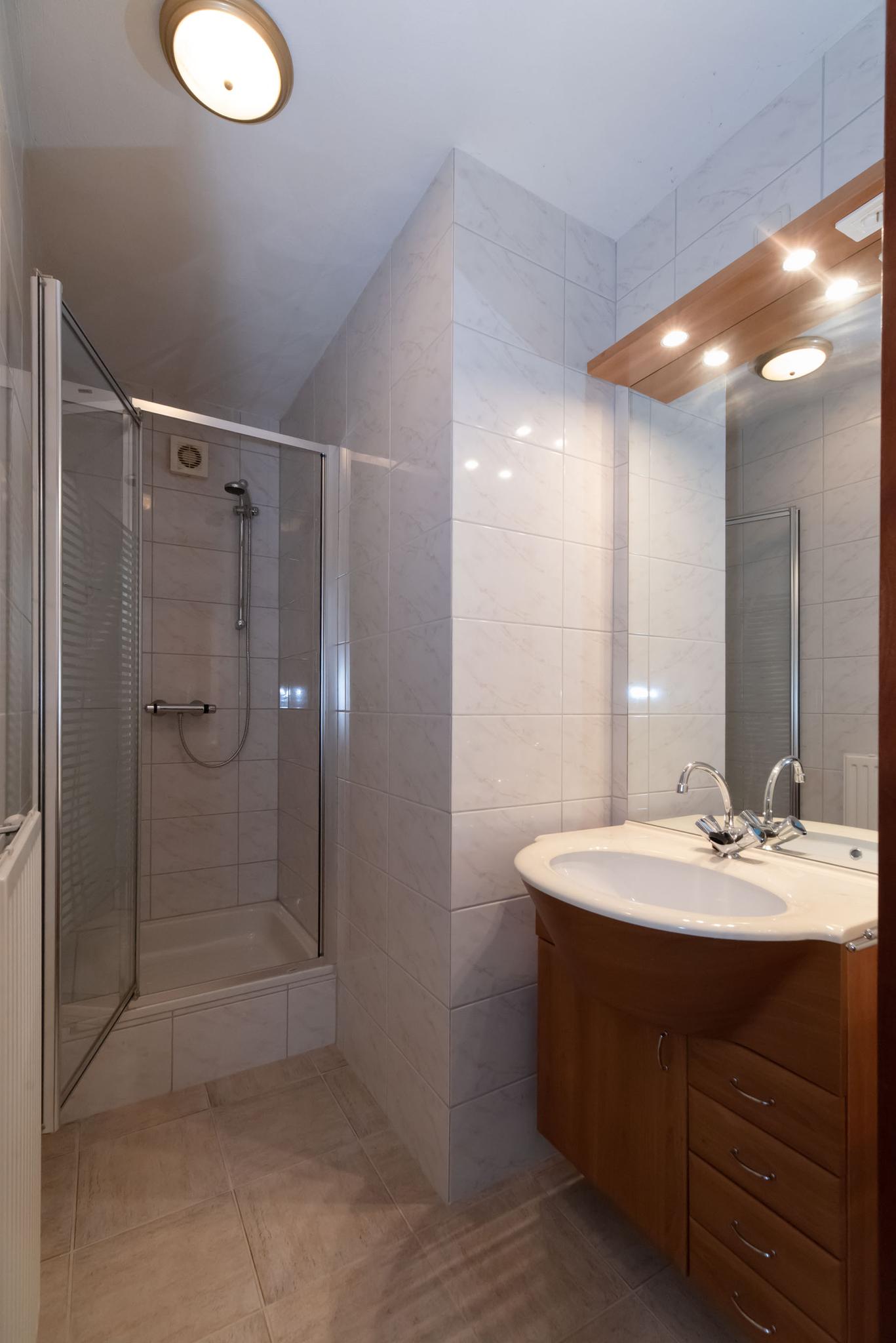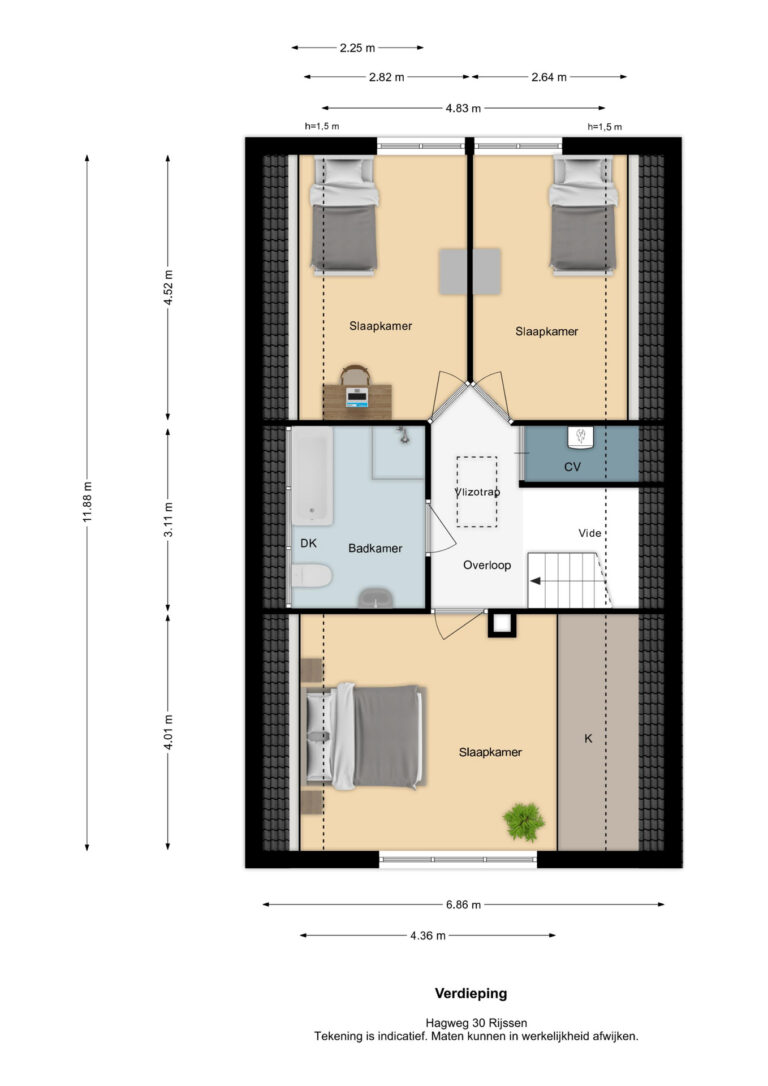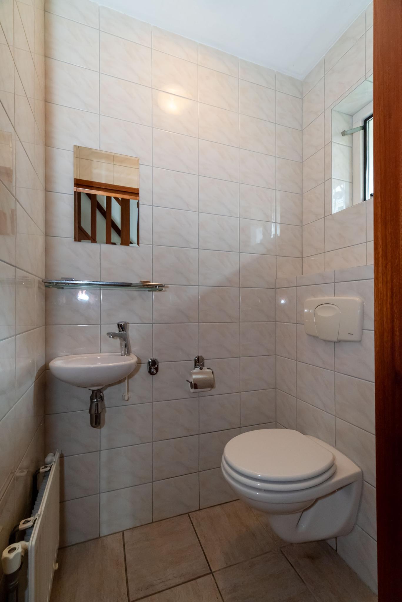Op de eerste verdieping vind je de tweede badkamer en drie fijne slaapkamers, allemaal met handige bergruimte. Twee van de kamers hebben extra opslagruimte onder de knieschotten, terwijl de derde slaapkamer een ruime kastenwand heeft. Via een vlizotrap bereik je de bergzolder.