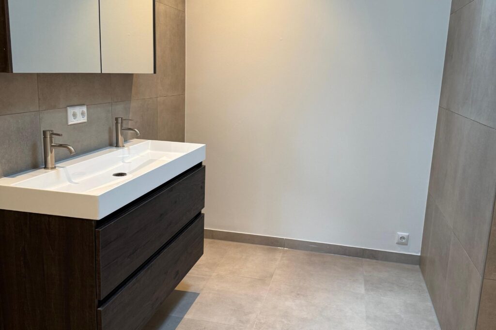 Deze gloednieuwe, nog niet bewoonde woning is in 2025 opgeleverd en biedt alles wat je van modern wooncomfort mag verwachten. Met een hoogwaardig afwerkingsniveau, duurzame installaties en een ideale ligging is dit de perfecte plek om zorgeloos te wonen. Bij binnenkomst valt direct de lichte en eigentijdse uitstraling op. De gehele woning is voorzien van een stijlvolle PVC-vloer met vloerverwarming en strak afgewerkt scanbehang op de wanden. De moderne keuken is een echte eyecatcher: uitgevoerd met luxe inbouwapparatuur en een ruim kookeiland, ideaal voor kookliefhebbers. Via de royale gang loop je langs de groene patio en bereik je de slaapkamer, aparte wasruimte en inpandige berging. De luxe badkamer is compleet met inloopdouche, wastafelmeubel en modern sanitair.