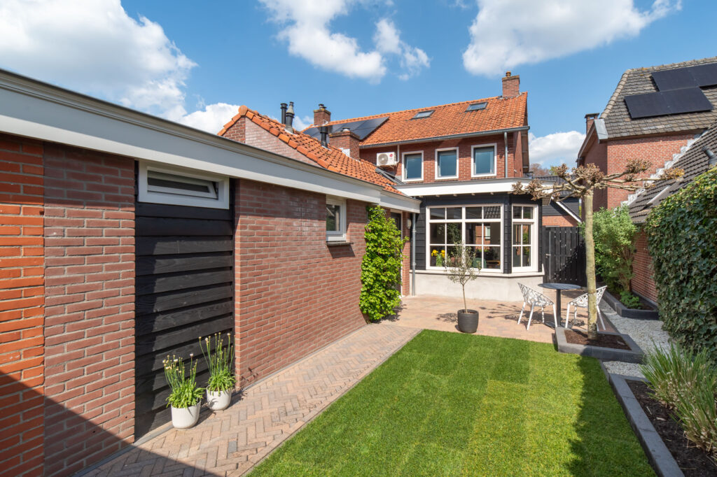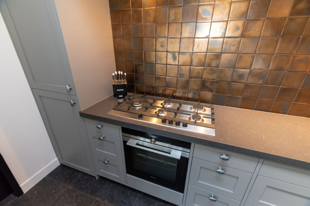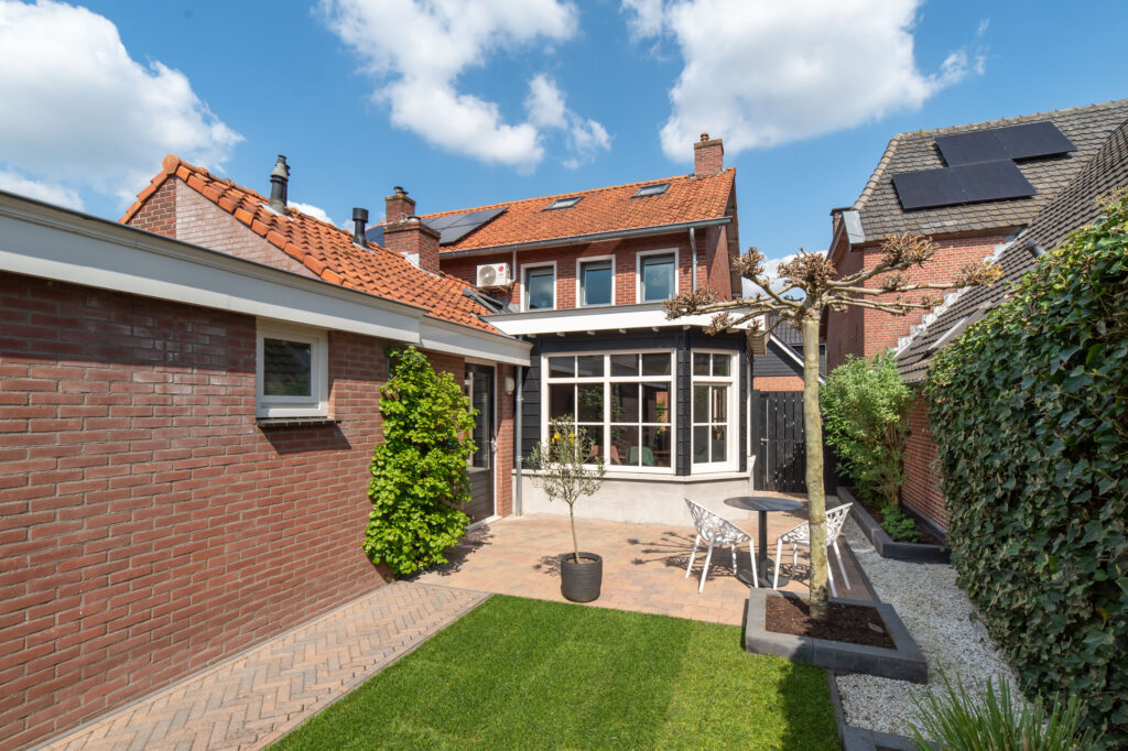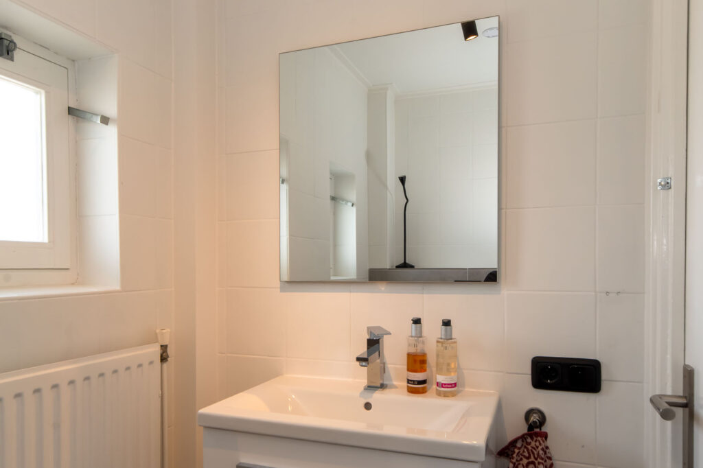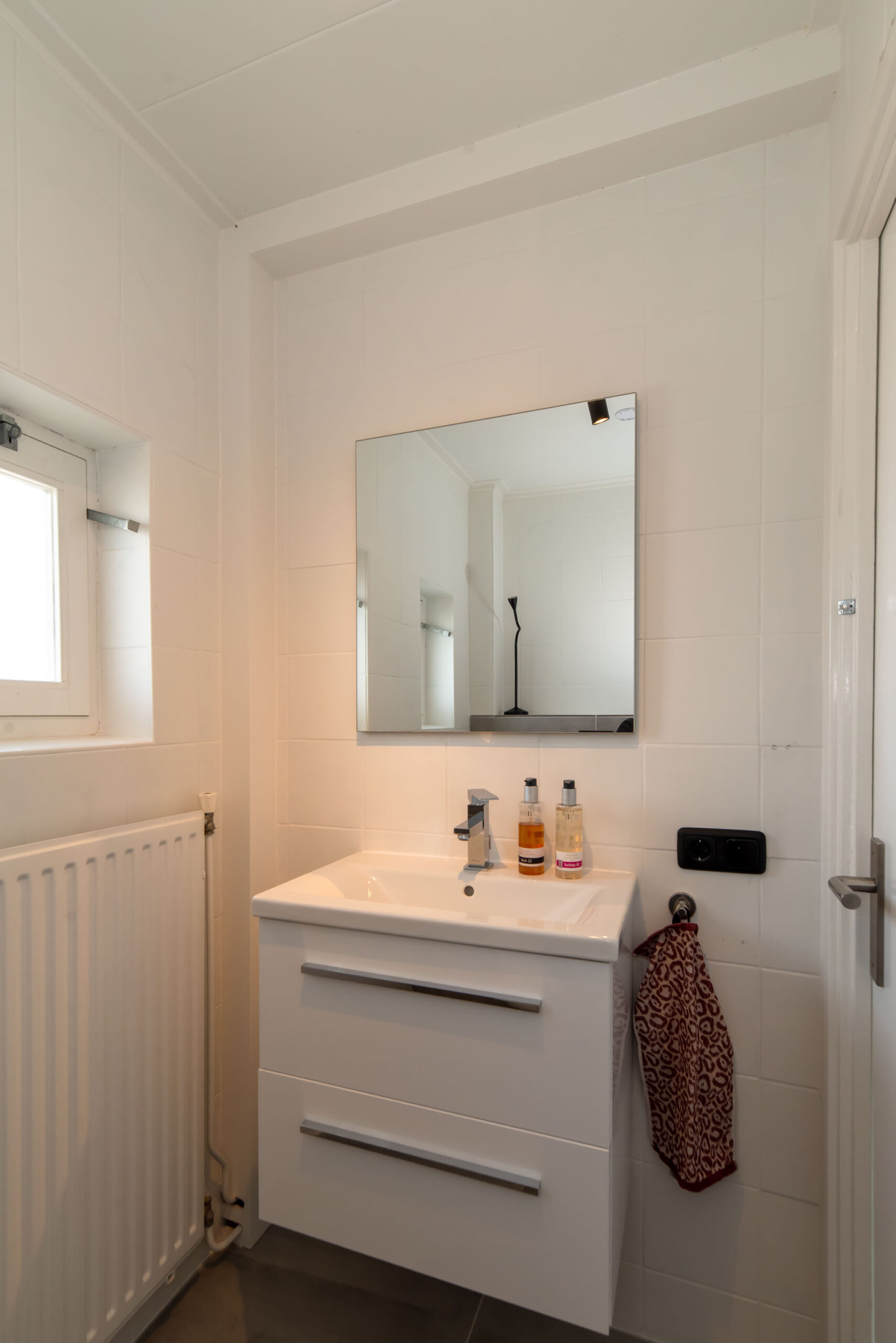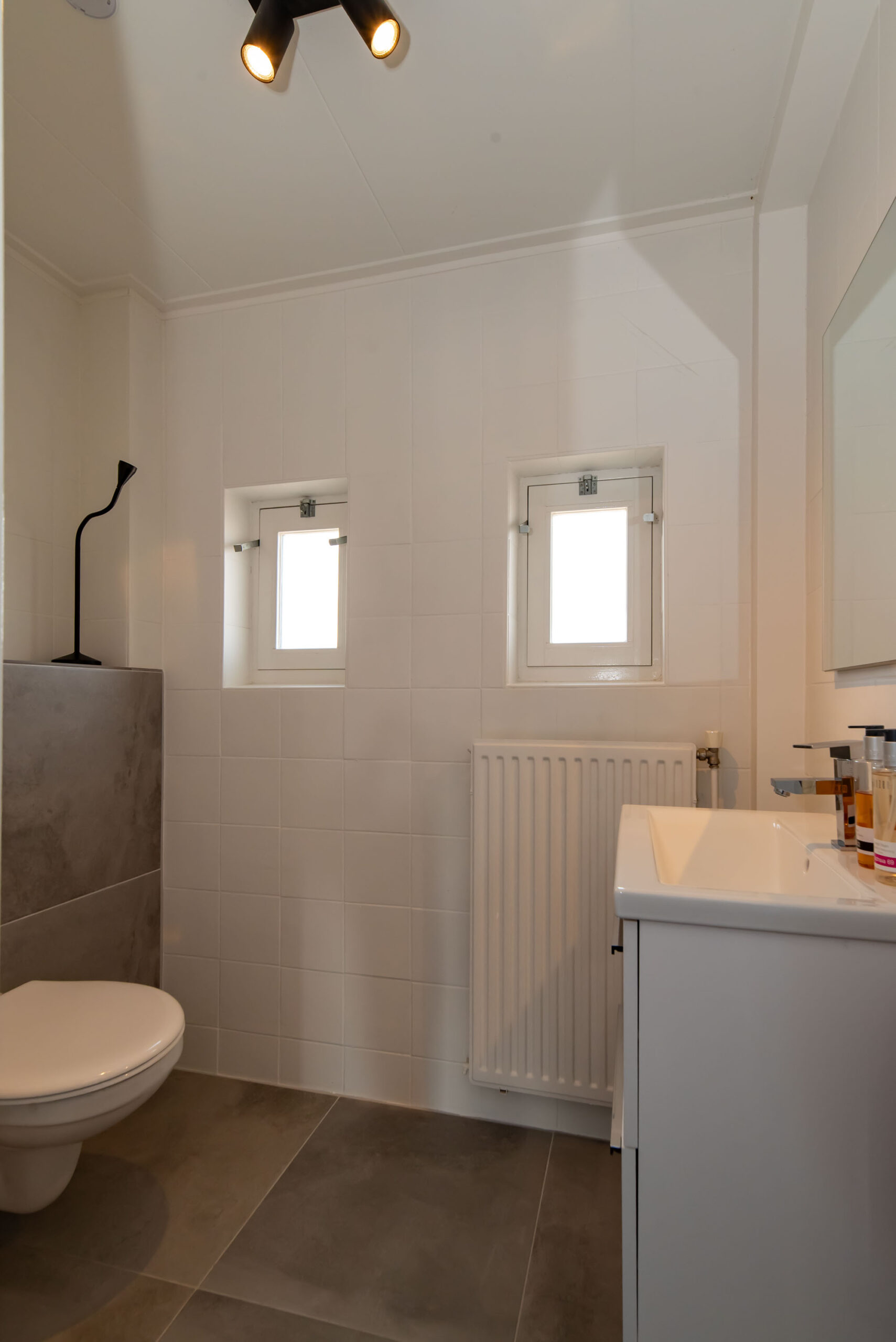 Aan de achterzijde bevindt zich de royaal uitgebouwde woonkeuken. Deze moderne keuken is voorzien van diverse inbouwapparatuur, waaronder een stoomoven, koel-vriescombinatie, vaatwasser en 5-pits gaskookplaat. Vanuit de keuken is de praktische bijkeuken / achterentree bereikbaar. Hier bevinden zich vaste kastenwanden en de witgoedaansluitingen op comfortabele hoogte. De badkamer is eveneens aan de achterzijde gelegen en is in december 2020 volledig vernieuwd. De moderne badkamer is instapklaar en stijlvol afgewerkt.