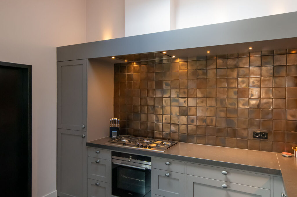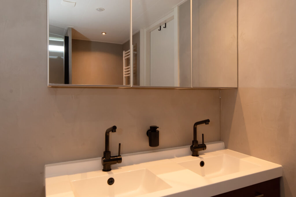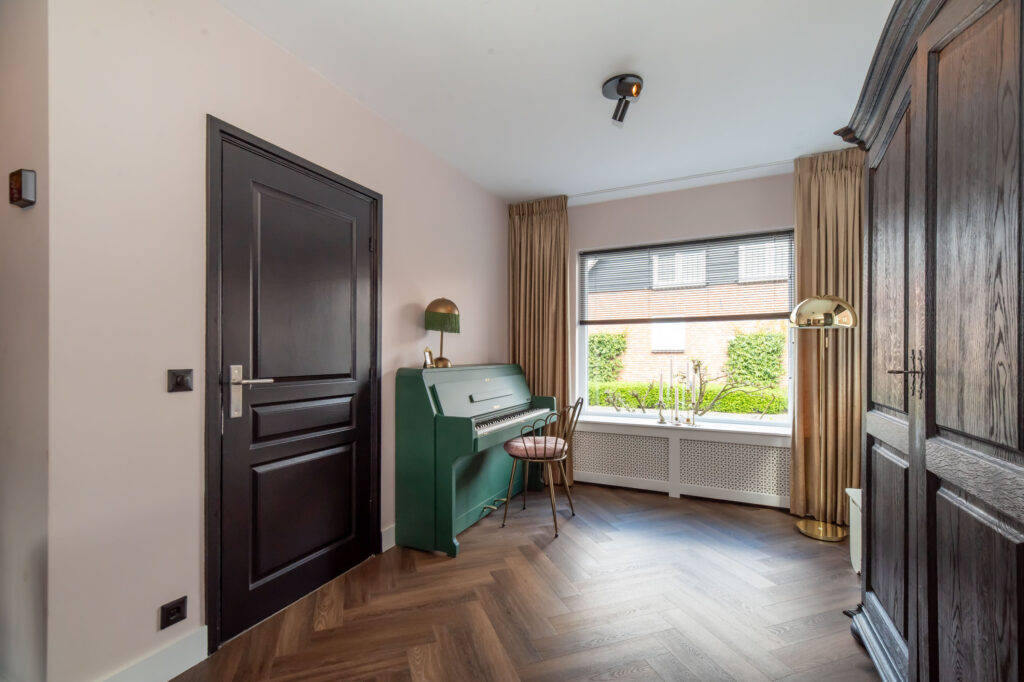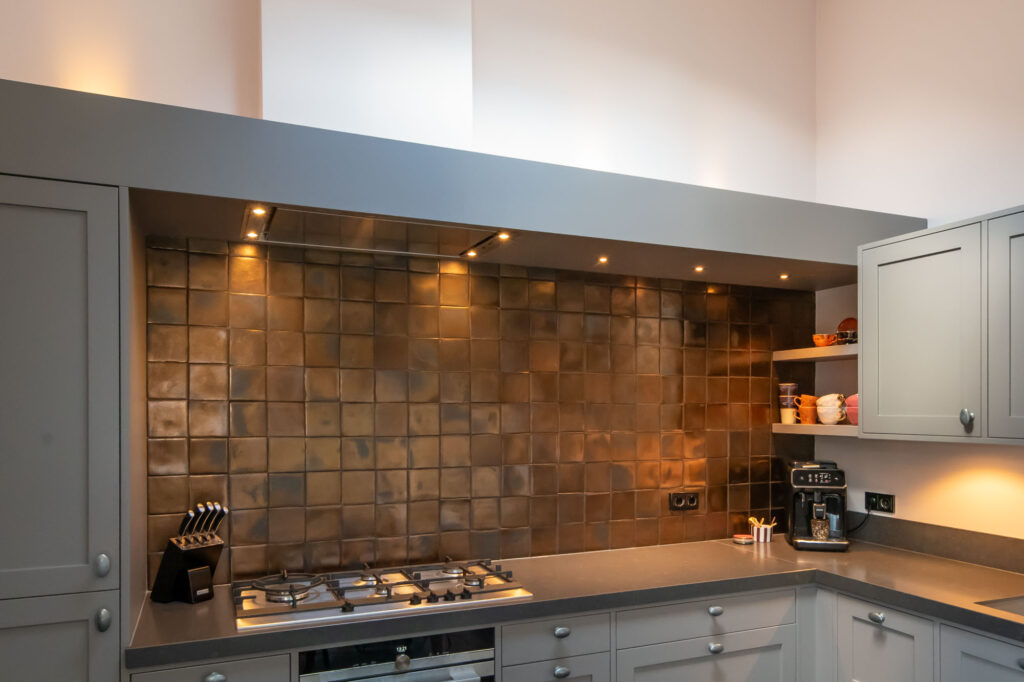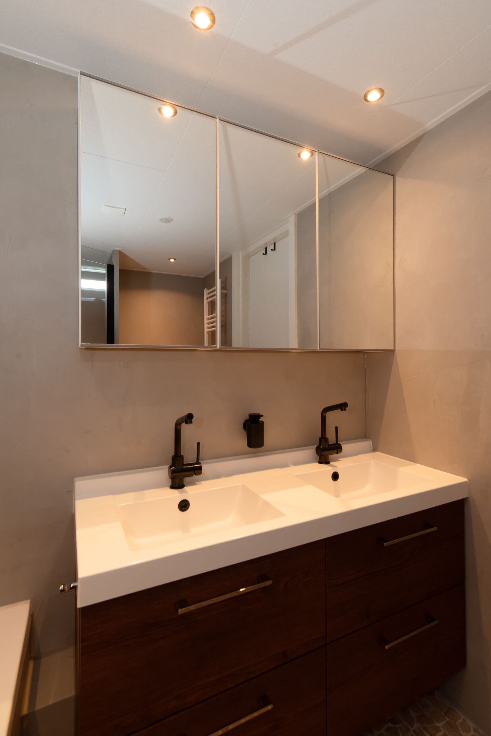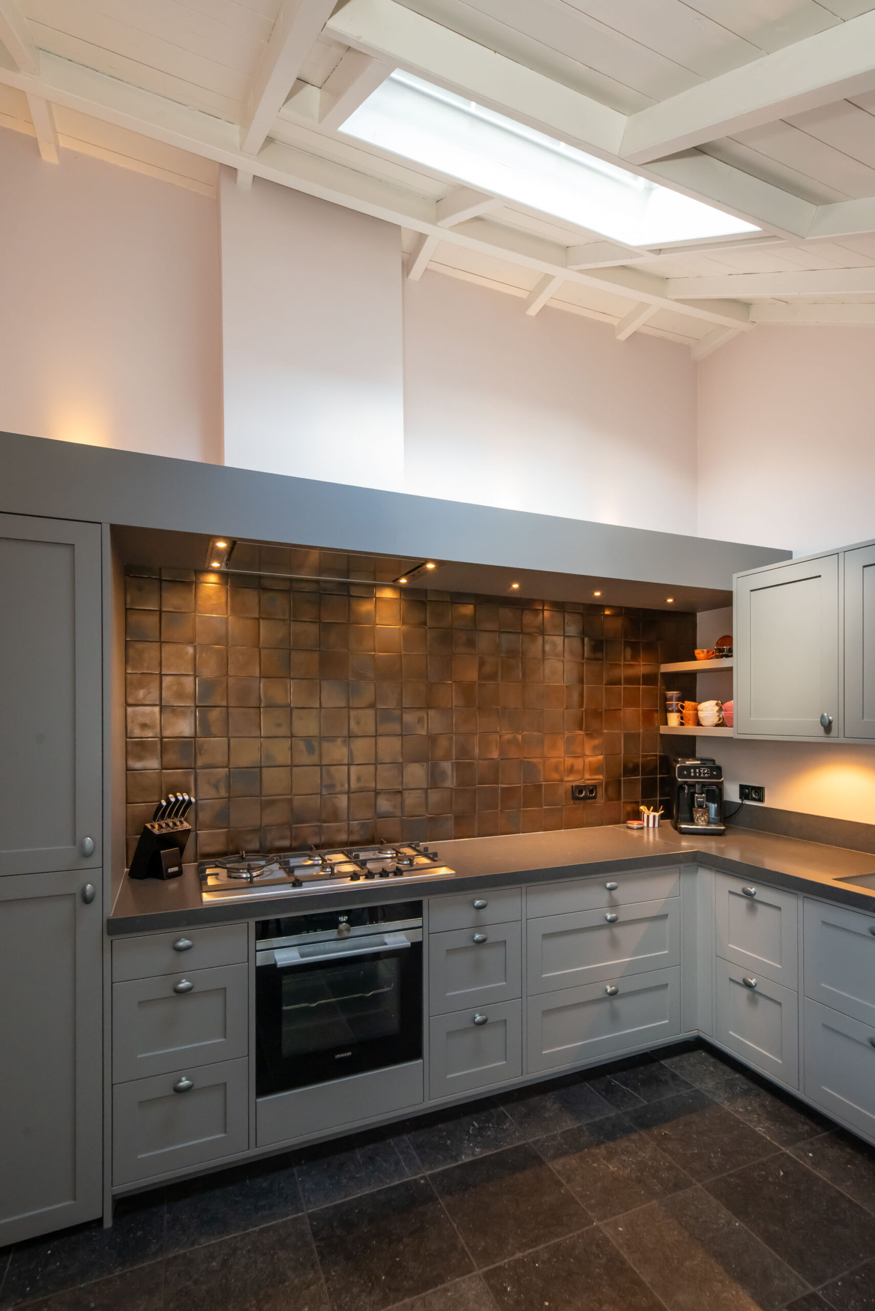 Aan de achterzijde bevindt zich de royaal uitgebouwde woonkeuken. Deze moderne keuken is voorzien van diverse inbouwapparatuur, waaronder een stoomoven, koel-vriescombinatie, vaatwasser en 5-pits gaskookplaat. Vanuit de keuken is de praktische bijkeuken / achterentree bereikbaar. Hier bevinden zich vaste kastenwanden en de witgoedaansluitingen op comfortabele hoogte. De badkamer is eveneens aan de achterzijde gelegen en is in december 2020 volledig vernieuwd. De moderne badkamer is instapklaar en stijlvol afgewerkt.