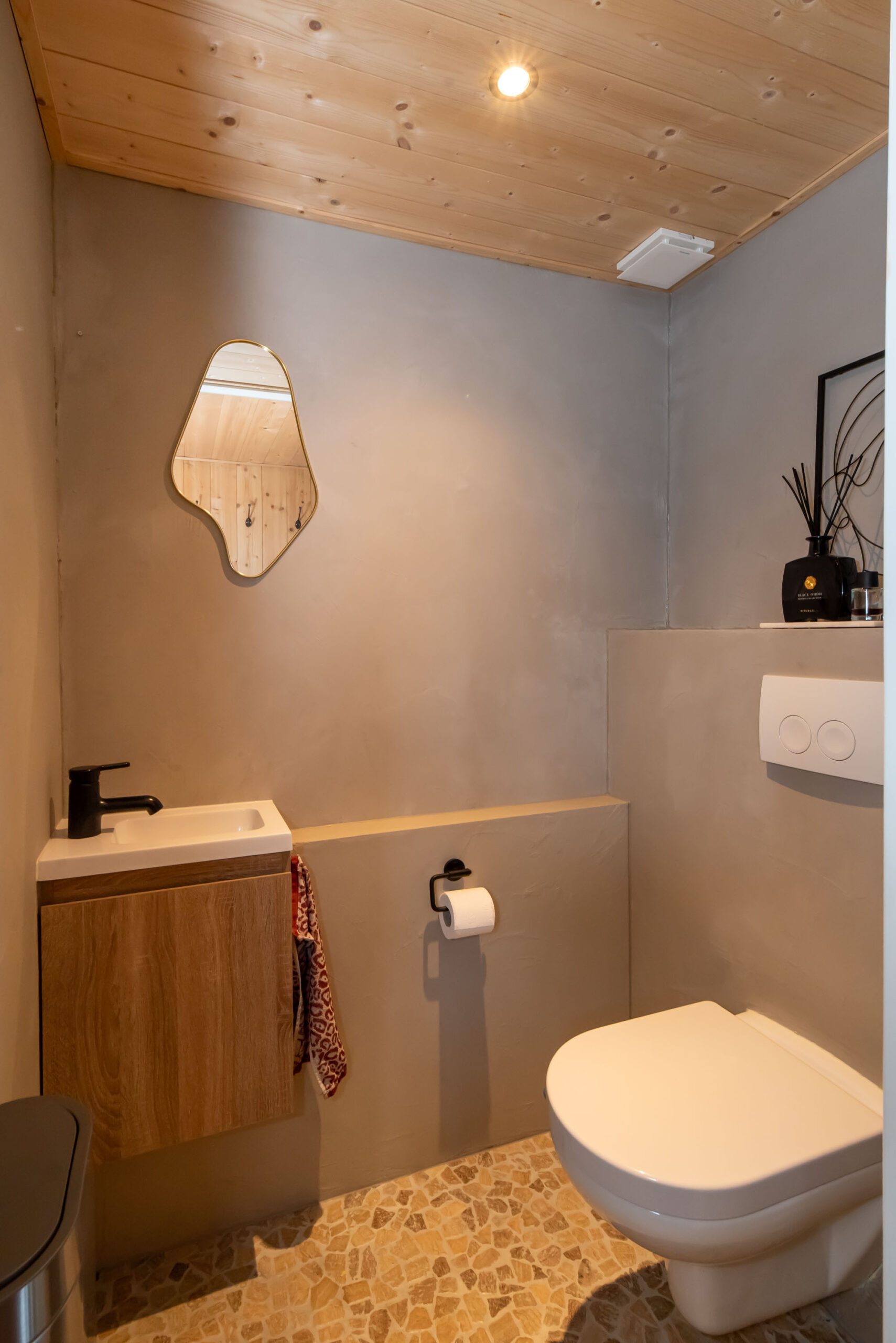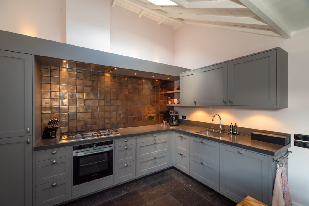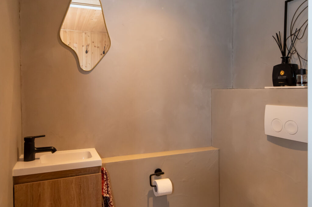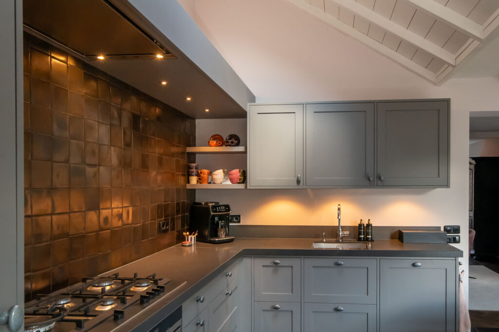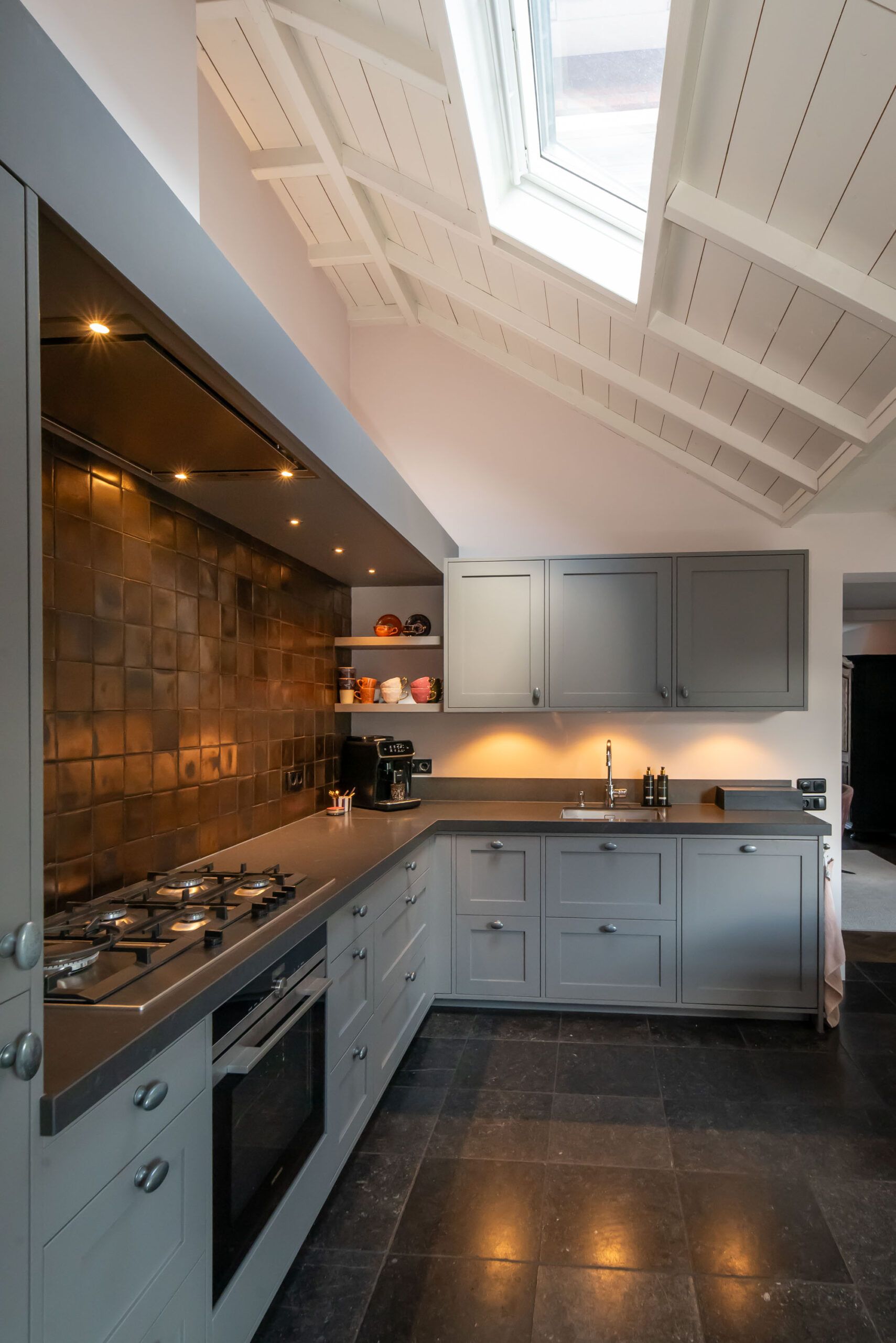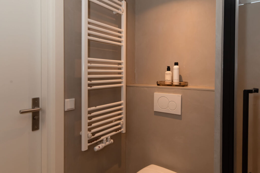 Aan de achterzijde bevindt zich de royaal uitgebouwde woonkeuken. Deze moderne keuken is voorzien van diverse inbouwapparatuur, waaronder een stoomoven, koel-vriescombinatie, vaatwasser en 5-pits gaskookplaat. Vanuit de keuken is de praktische bijkeuken / achterentree bereikbaar. Hier bevinden zich vaste kastenwanden en de witgoedaansluitingen op comfortabele hoogte. De badkamer is eveneens aan de achterzijde gelegen en is in december 2020 volledig vernieuwd. De moderne badkamer is instapklaar en stijlvol afgewerkt.