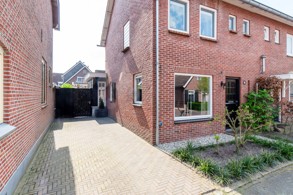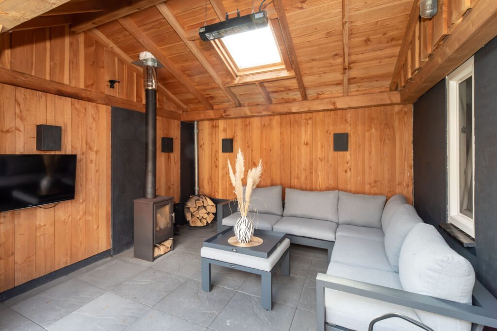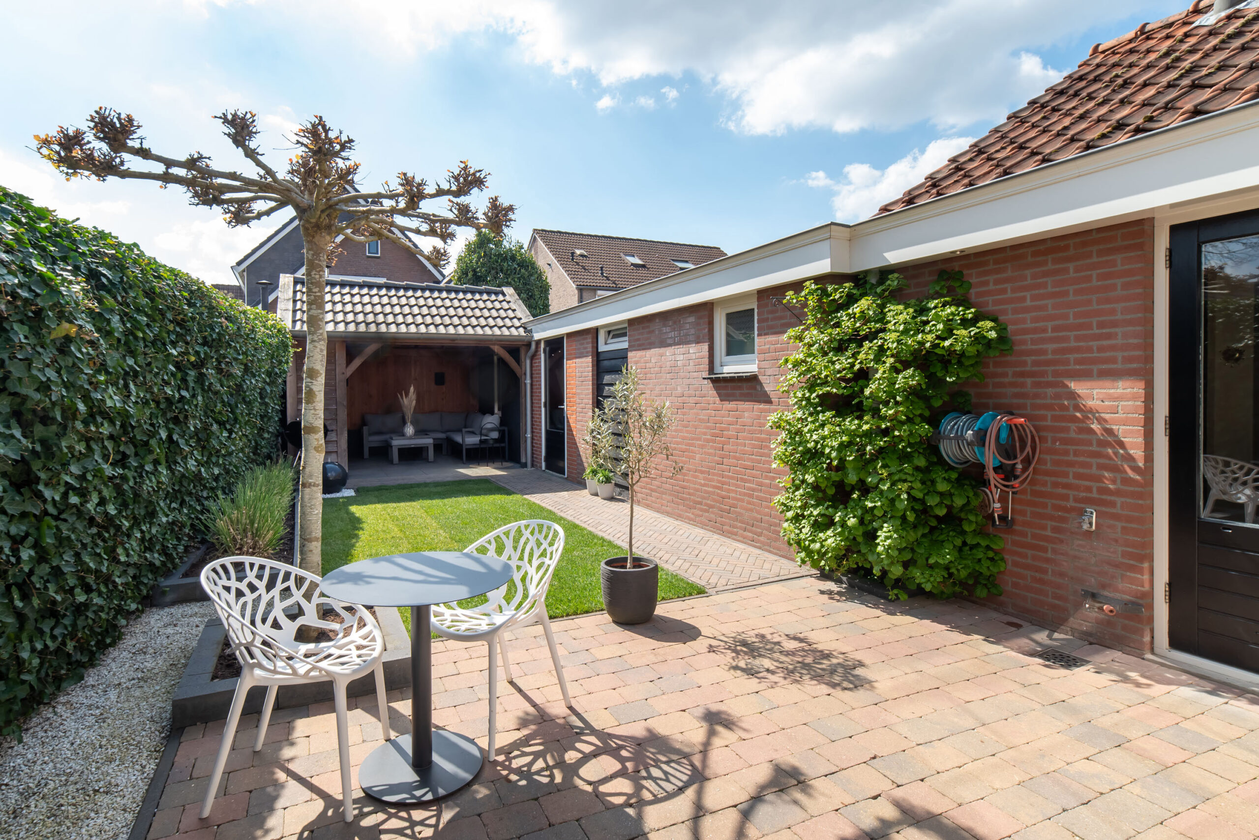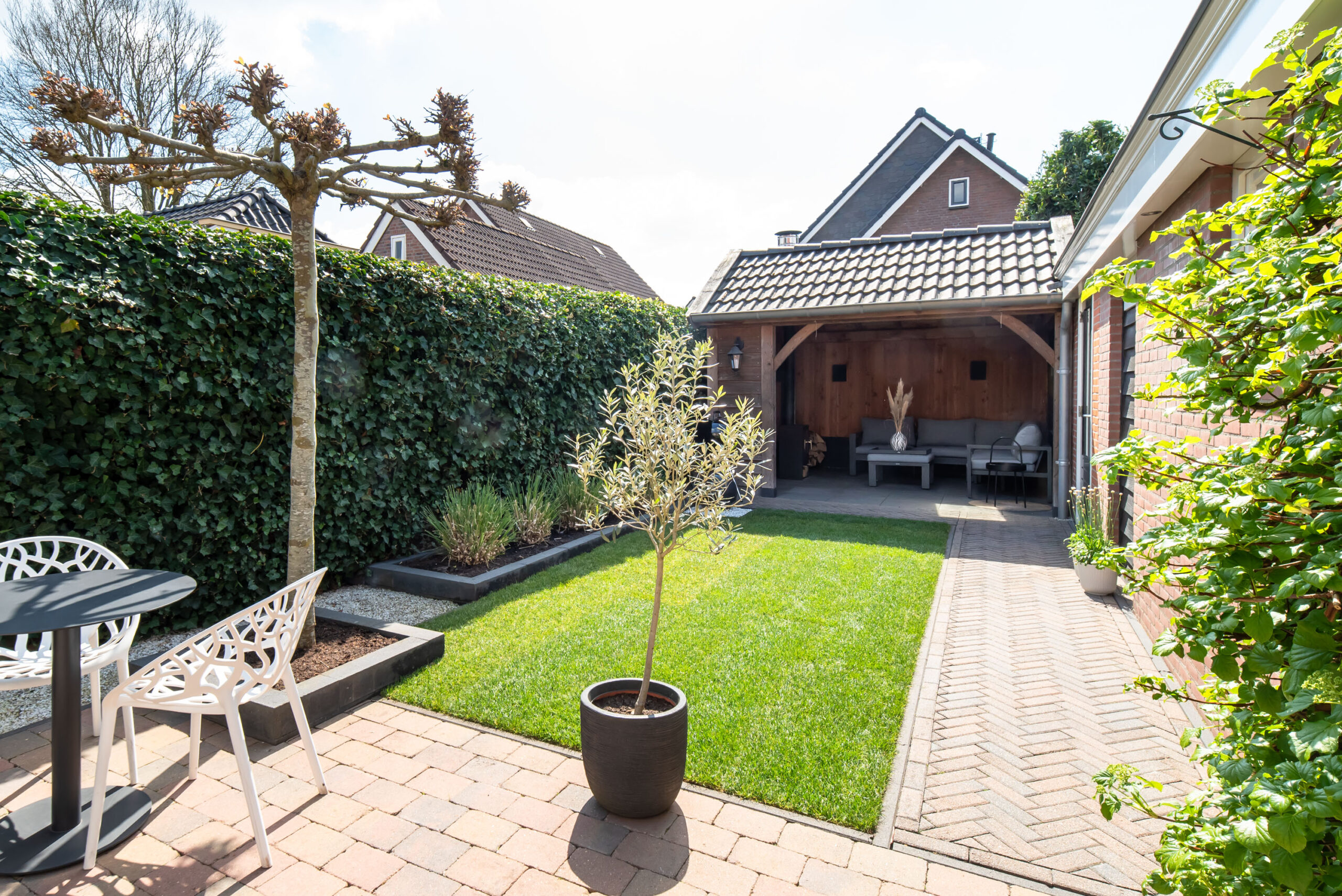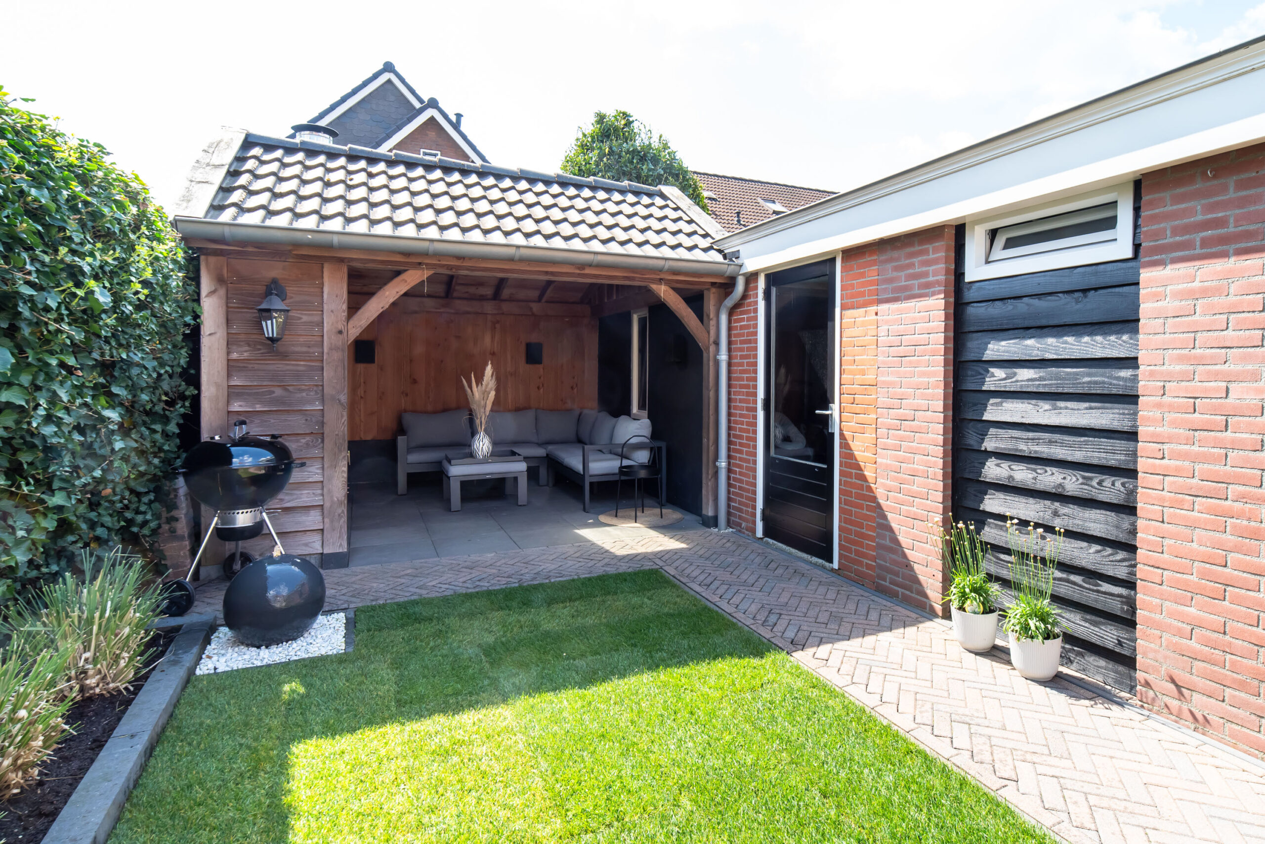 Ook buiten is het genieten. De woning beschikt over een eigen oprit en een gezellige overkapping waar je heerlijk beschut kunt zitten.