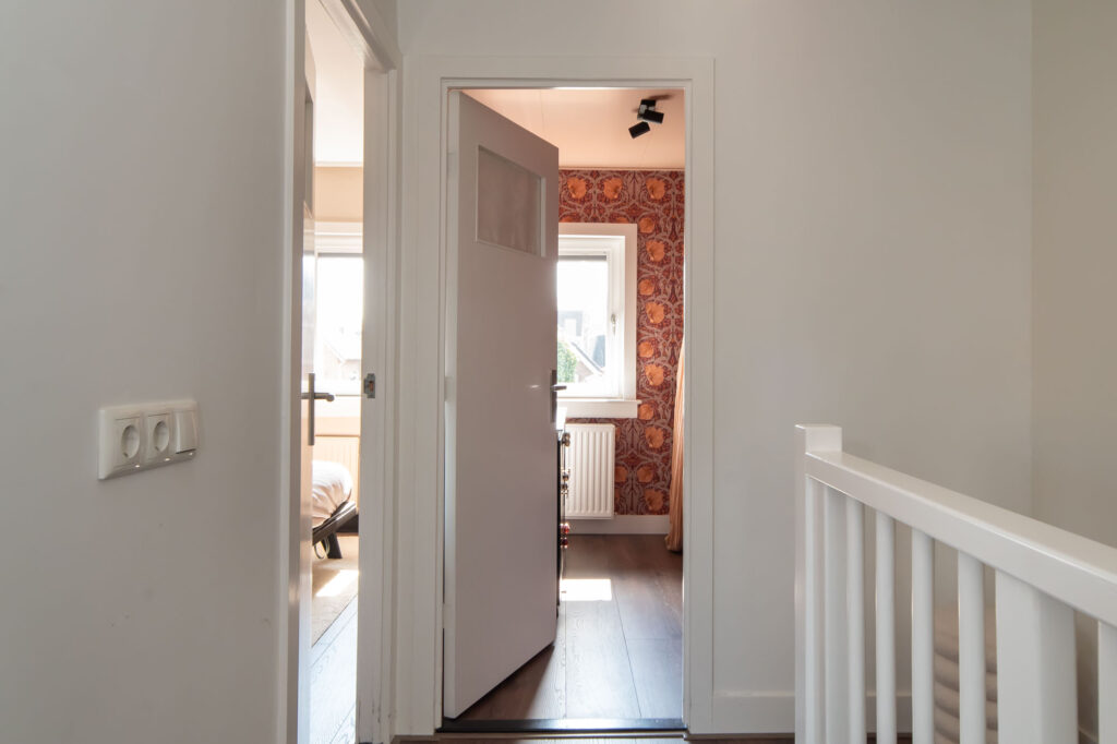 Op de eerste verdieping bevinden zich drie slaapkamers en een separate toiletruimte. Twee van de slaapkamers beschikken over een vaste kastwand.