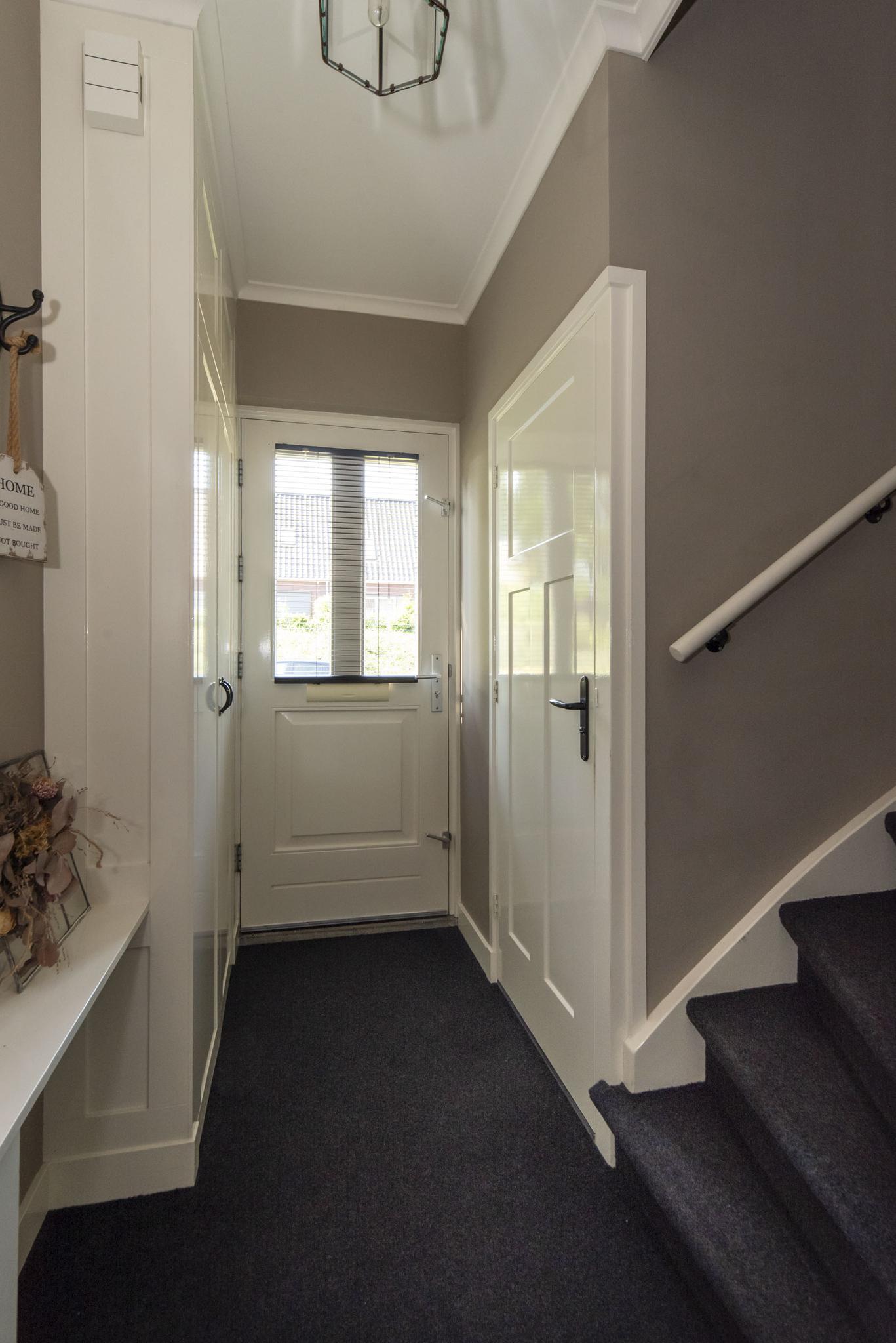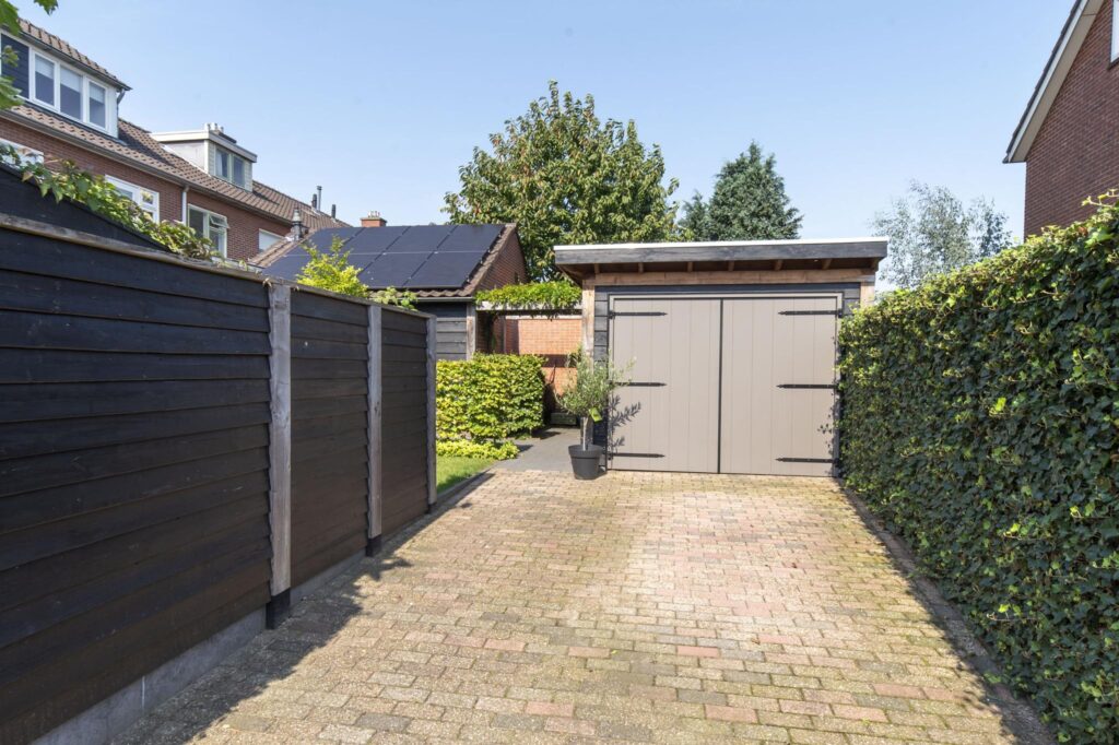 Je kan de auto parkeren op je eigen terrein of in de garage. Via de voordeur kom je in de hal terecht, hier vind je het toilet, de vaste trap naar de eerste verdieping en de deur naar de woonkamer. De woonkamer is gelegen aan de voorzijde van de woning en door de erker is deze voorzien van veel daglicht! De aangebouwde woonkeuken is middels een schuifdeur afgesloten van de woonkamer. De woonkeuken is in 2021 voorzien van een nieuwe inbouwkeuken met apparatuur zoals een vaatwasser, koelkast, combi-oven, inductiekookplaat en voldoende kastruimte. In de woonkeuken kan je middels de schuifpui de zonnige tuin betreden. Ook de bijkeuken is via de woonkeuken te bereiken. In de bijkeuken vind je de wasmachineaansluiting, CV ketel, deur naar de berging met vaste kast en een deur naar de tuin. De tuin is verzorgd aangelegd met een betegeld terras, grasmat en beplanting.