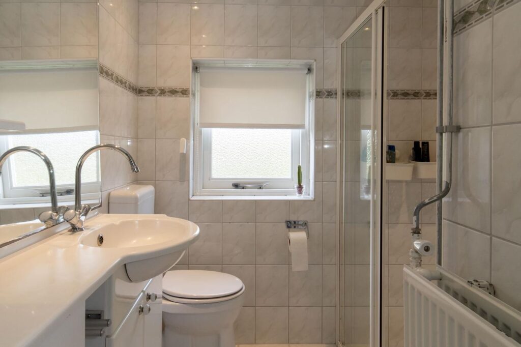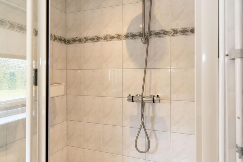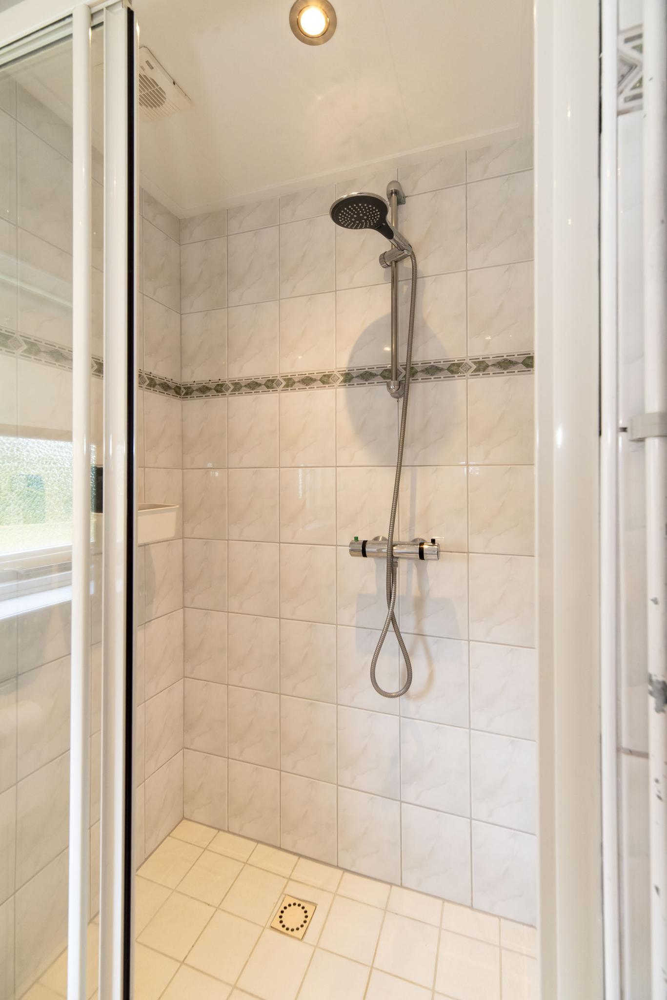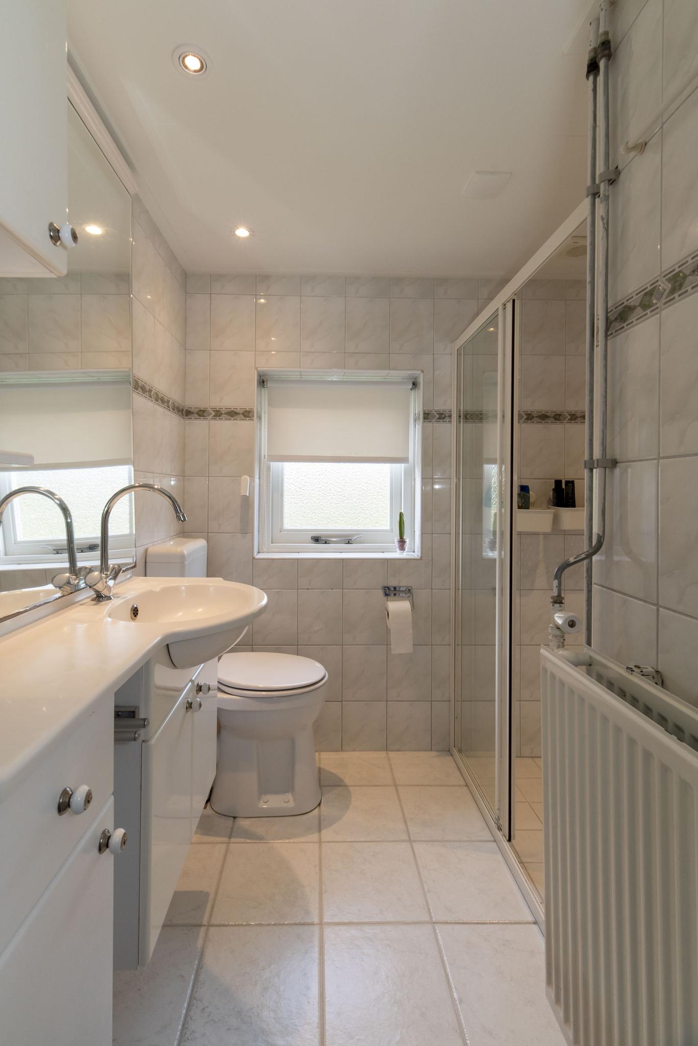 Op de eerste verdieping vind je drie slaapkamers, waarvan twee met vaste kasten. Op de overloop is de linnenkast, vaste trap naar de tweede verdieping en de badkamer te bereiken. De badkamer is voorzien van een douche, toilet en een wastafel.