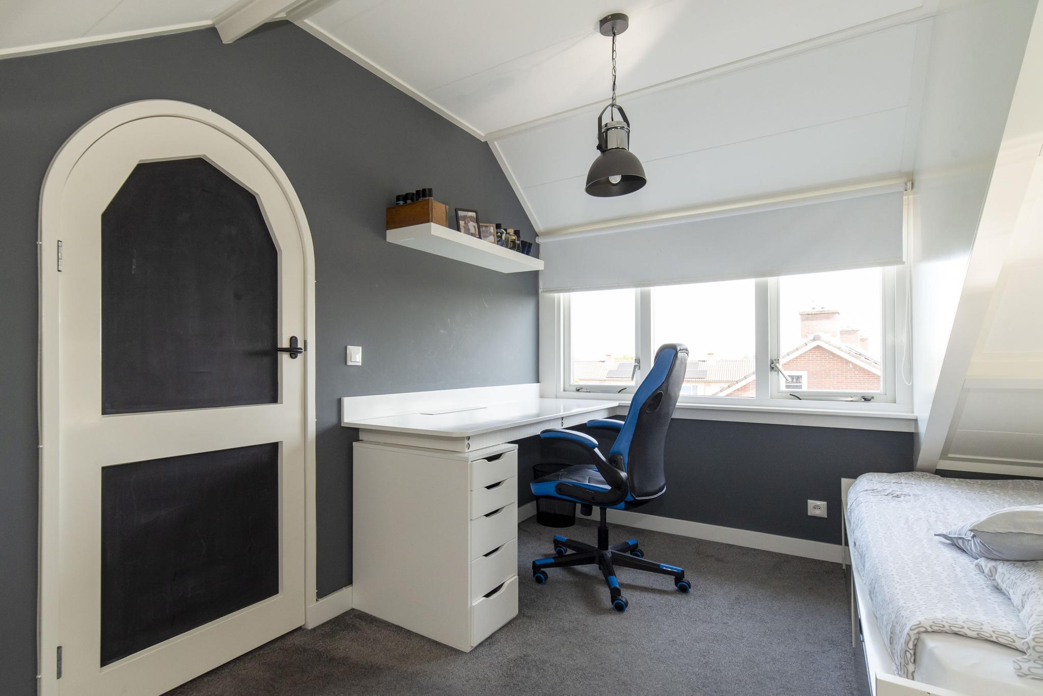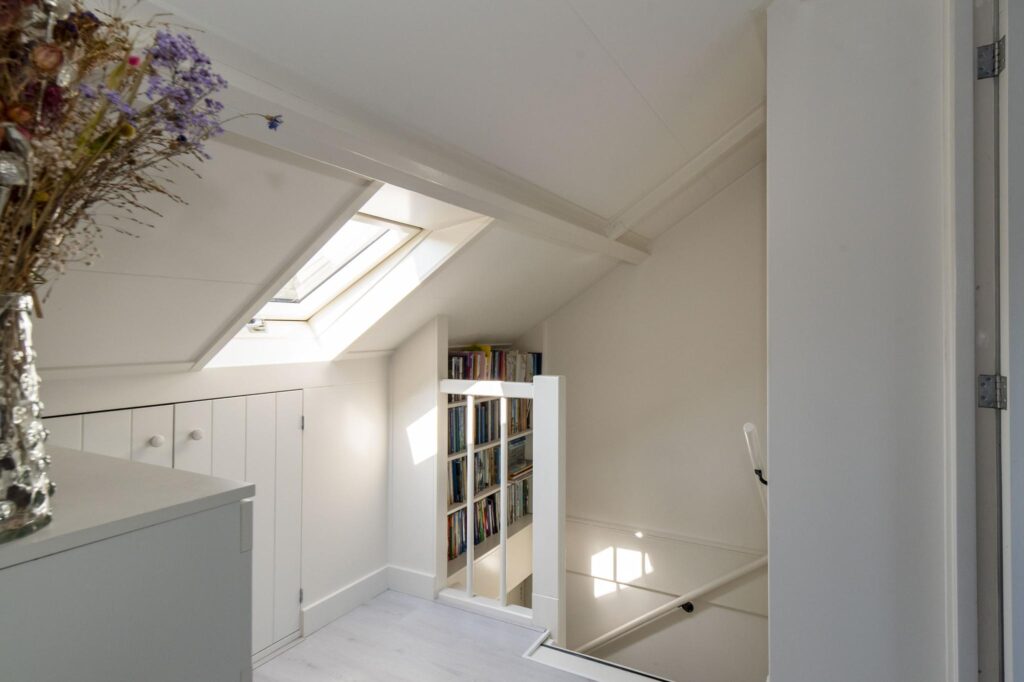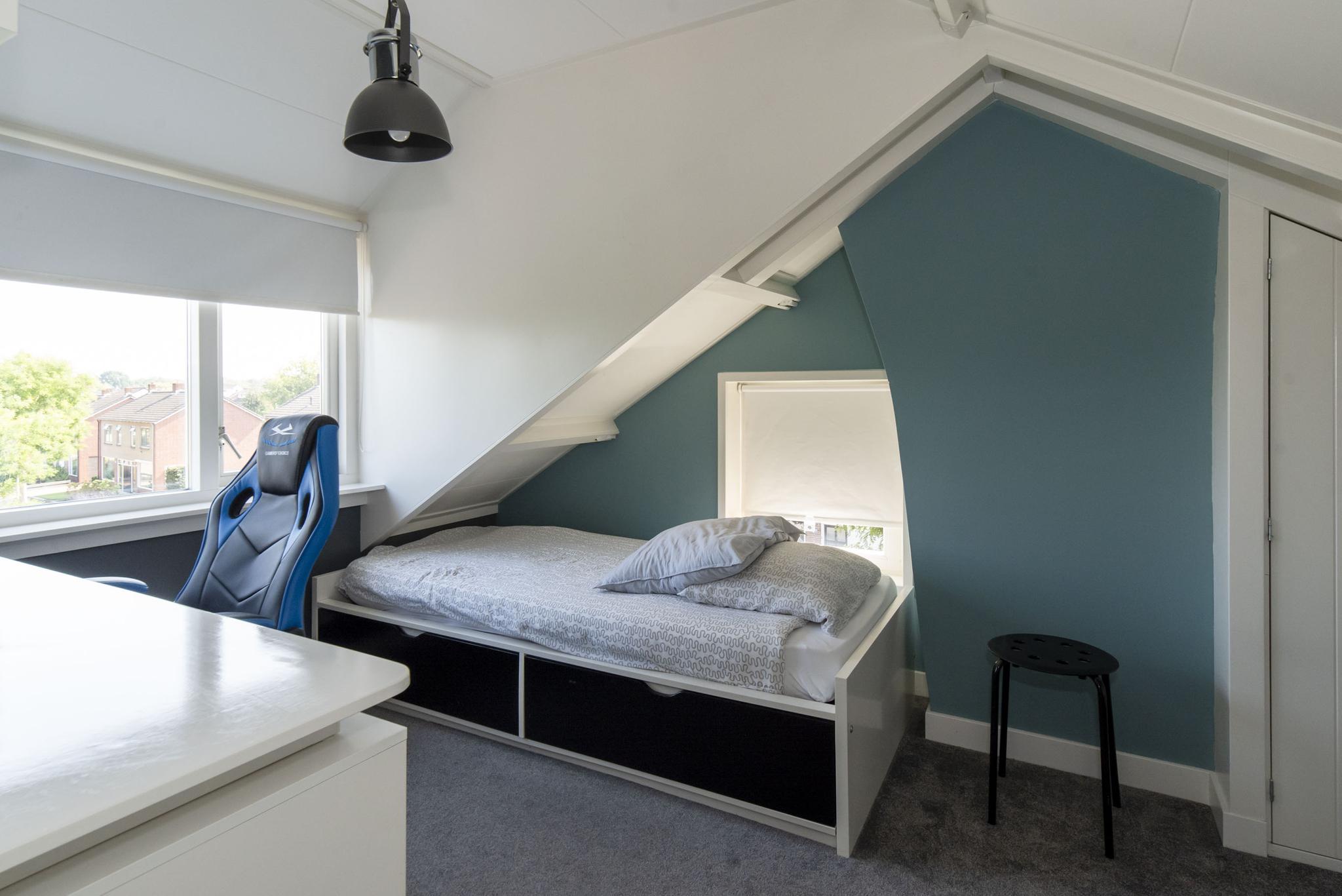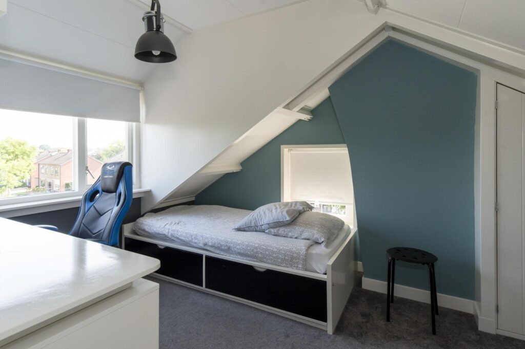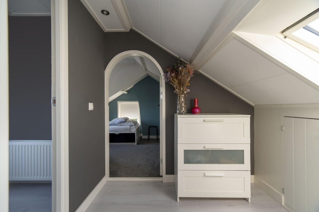Op de tweede verdieping zijn er maar liefst twee extra slaapkamers te vinden voorzien van een dakkapel. De ruimte achter de knieschotten zijn ideaal te gebruiken als berging.