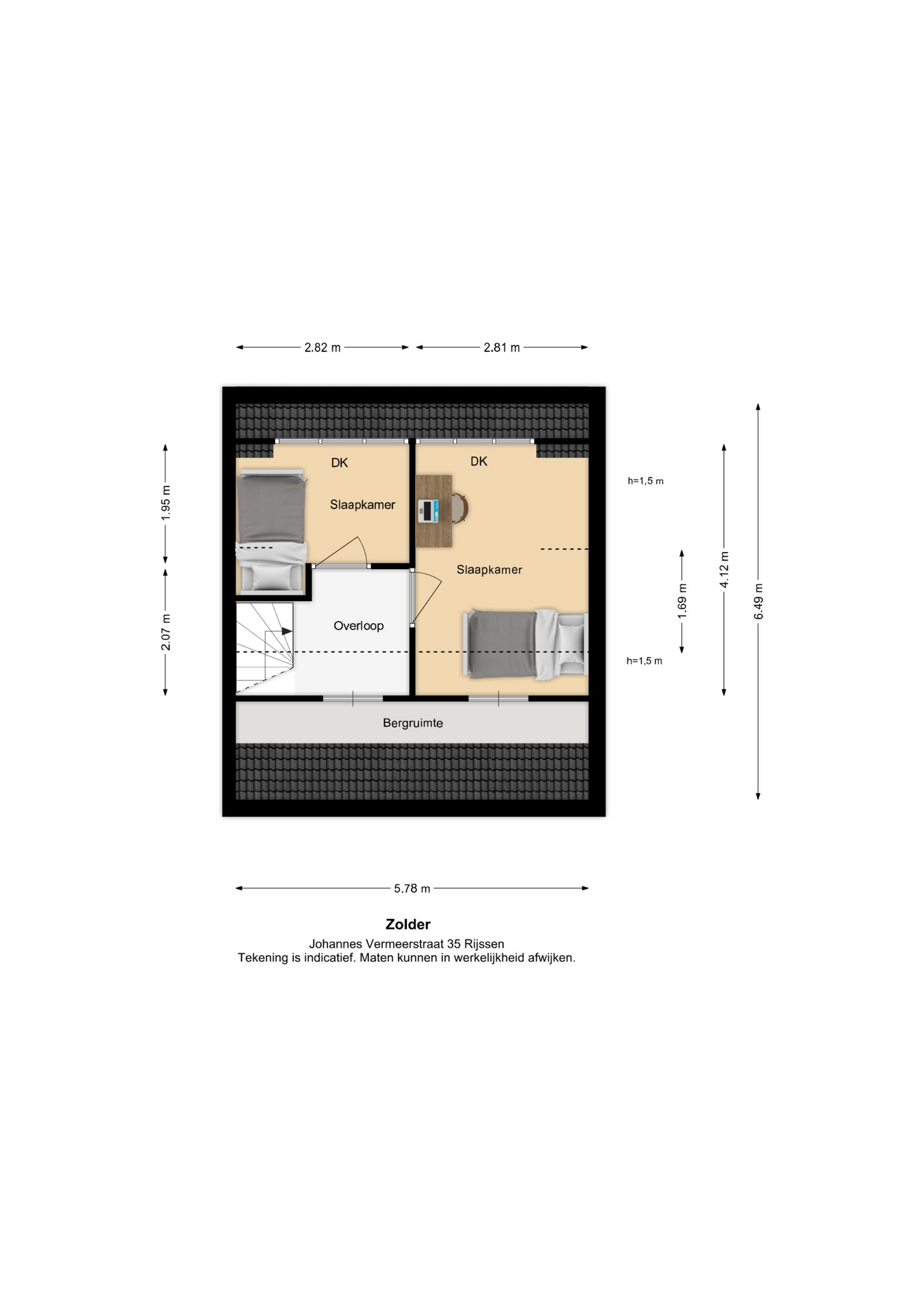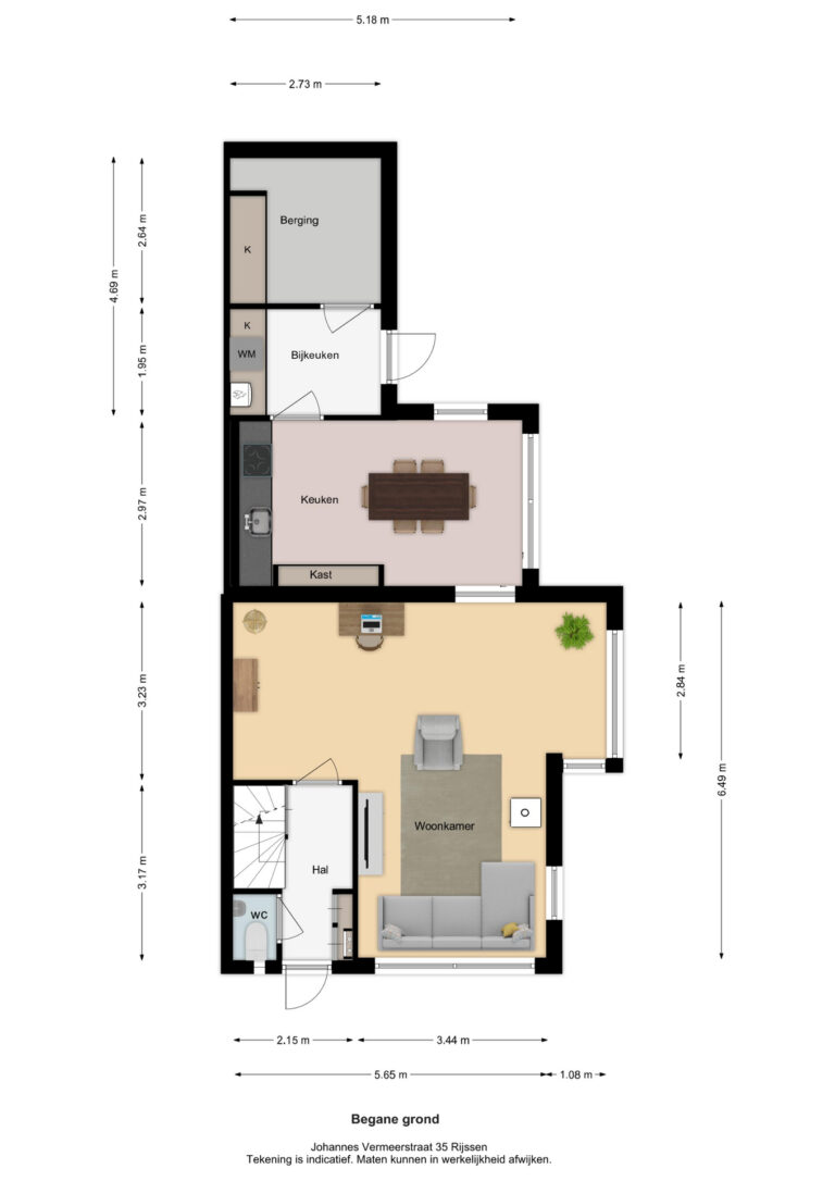 Vermelde maatvoeringen en gepubliceerde plattegronden zijn opgesteld binnen de kaders van de Branche Brede Meetinstructie; gebaseerd op NEN2580, met een onderverdeling in verschillende gebruiksoppervlakten. Omdat de publicatie ingevoerde gegevens via diverse, externe kanalen geschiedt, kan Daan Makelaars BV geen aansprakelijkheid aanvaarden voor onjuiste weergave van informatie.