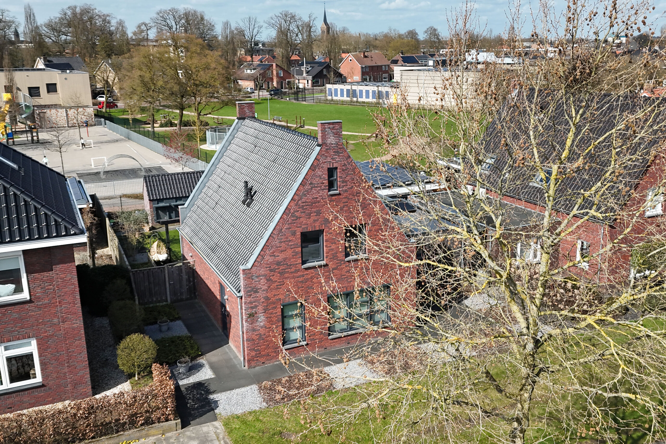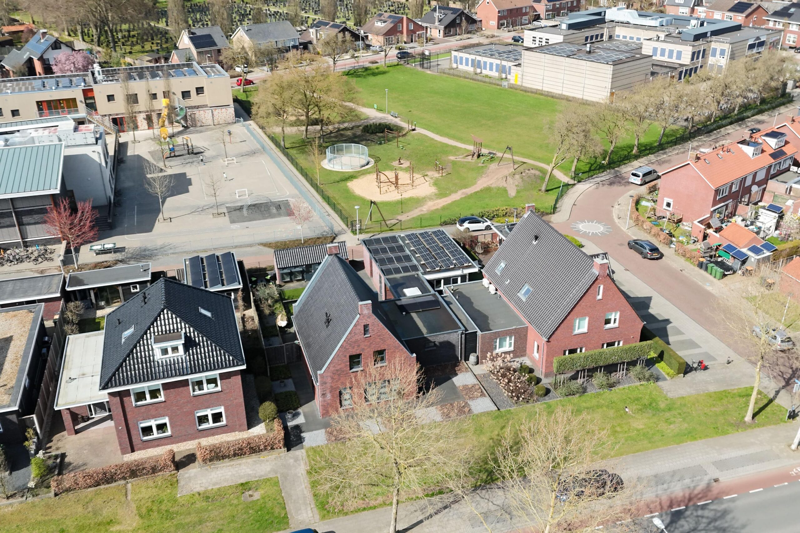 Op de eerste verdieping zijn nog twee slaapkamers te vinden en een extra badkamer. Ook aan duurzaamheid is gedacht: de woning is in 2015 gebouwd, volledig geïsoleerd en voorzien van 18 zonnepanelen en triple beglazing.