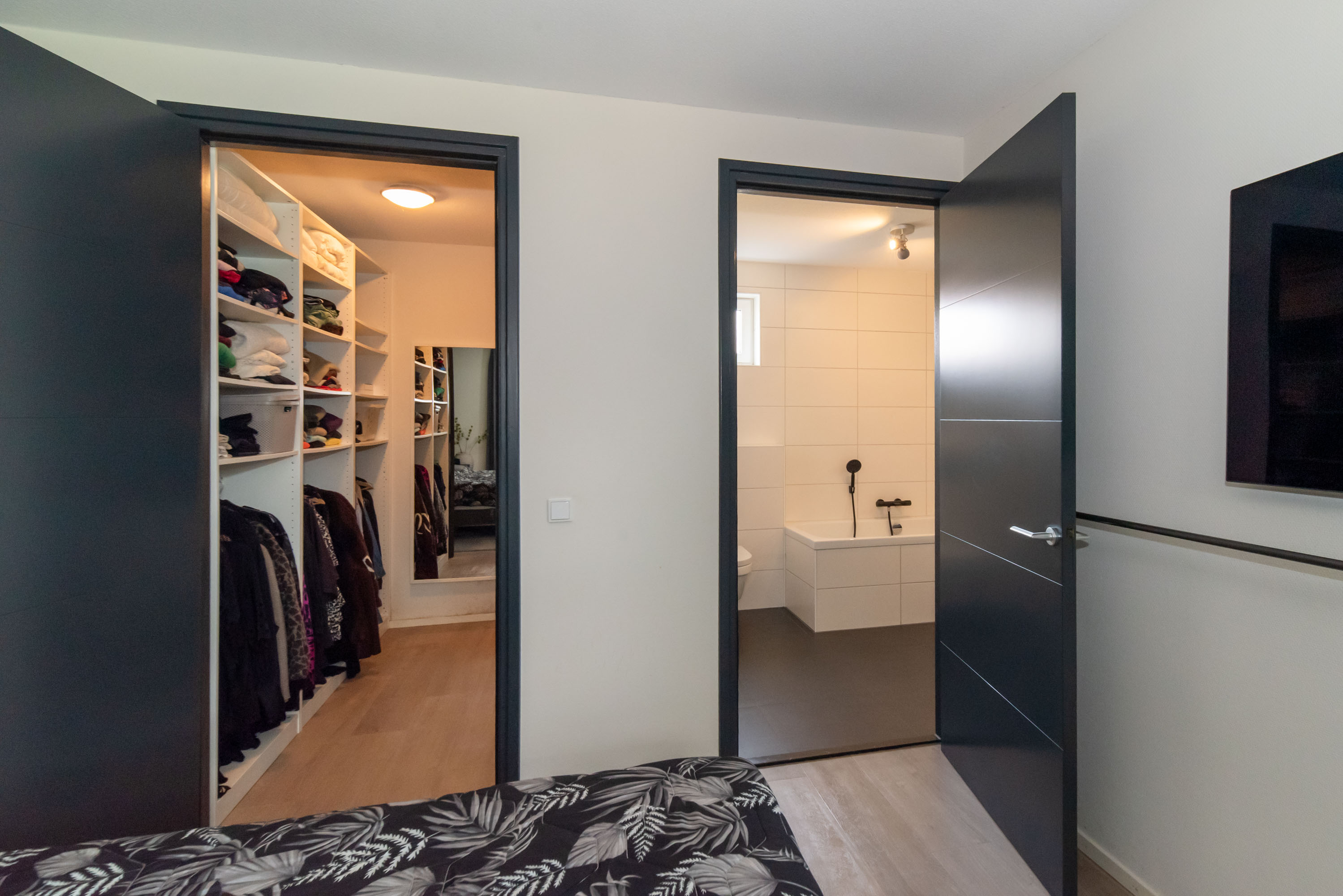 Aan de Karel Doormanstraat staat een woning die je van buiten al nieuwsgierig maakt, maar van binnen pas echt indruk maakt. Alles klopt hier: de afwerking, de ruimte, de sfeer en de slimme indeling. De woning is levensloopbestendig gebouwd, met op de begane grond als het ware een eigen hotelkamer. Vanuit deze slaapkamer heb je toegang tot de inloopkast en een royale badkamer.